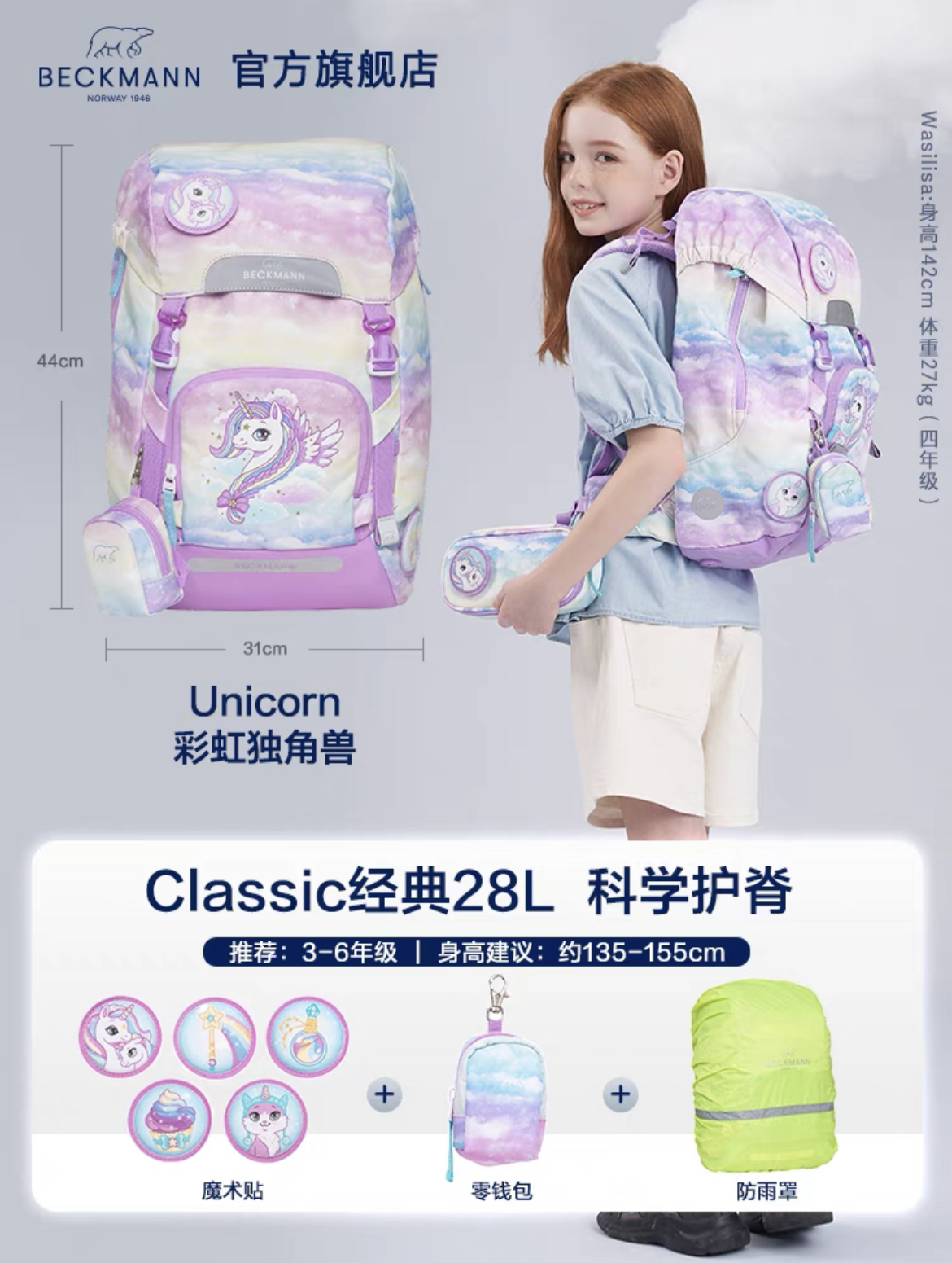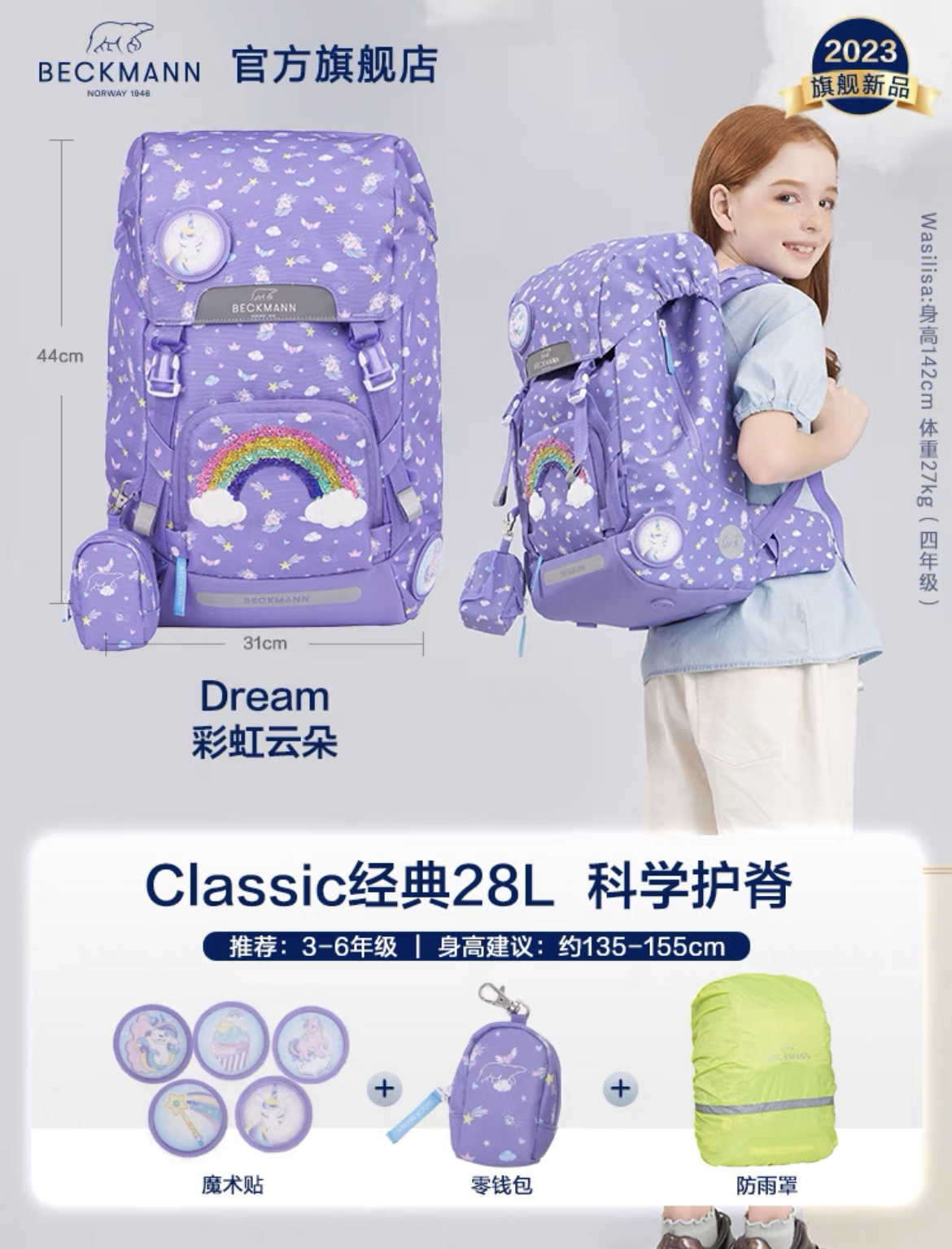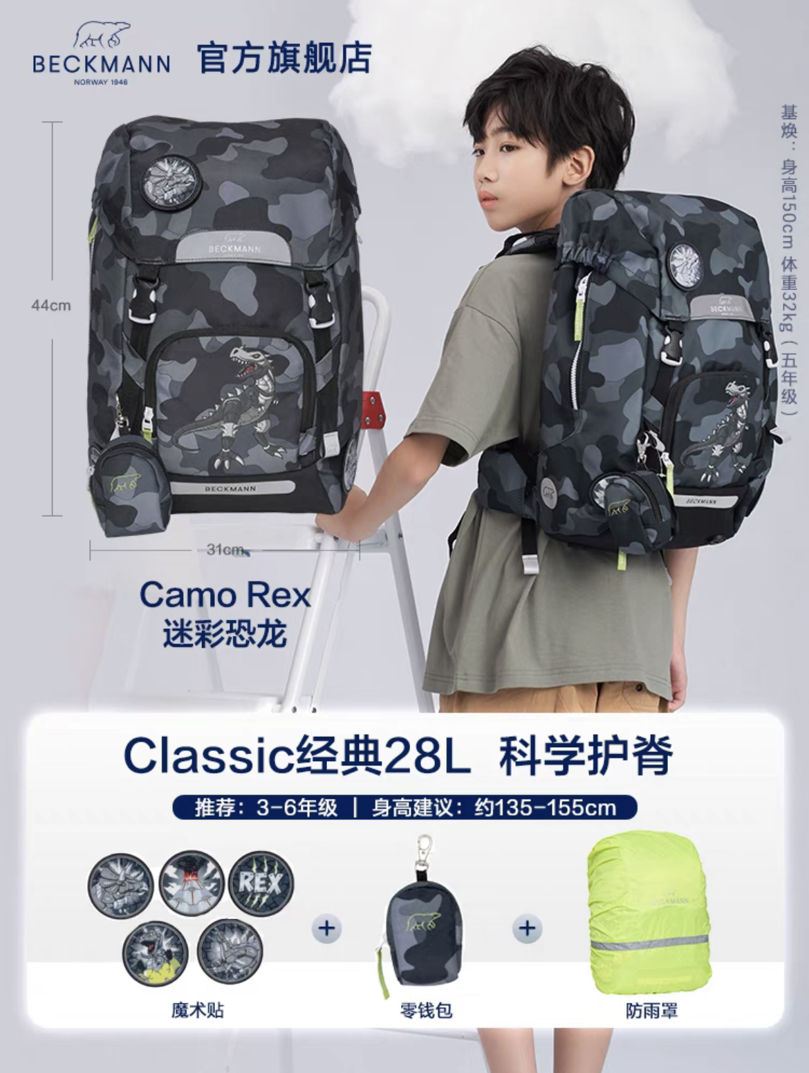 9楼大将作 贝克曼28L大容量小学生书包护脊减压3-6年级男女款