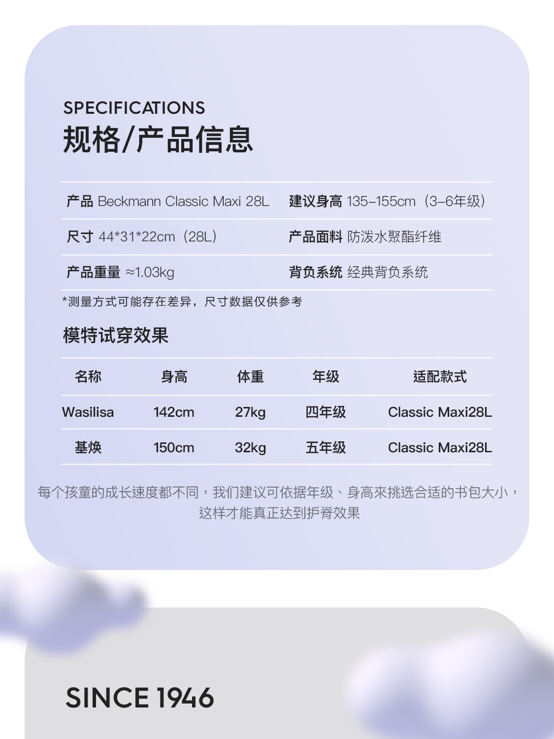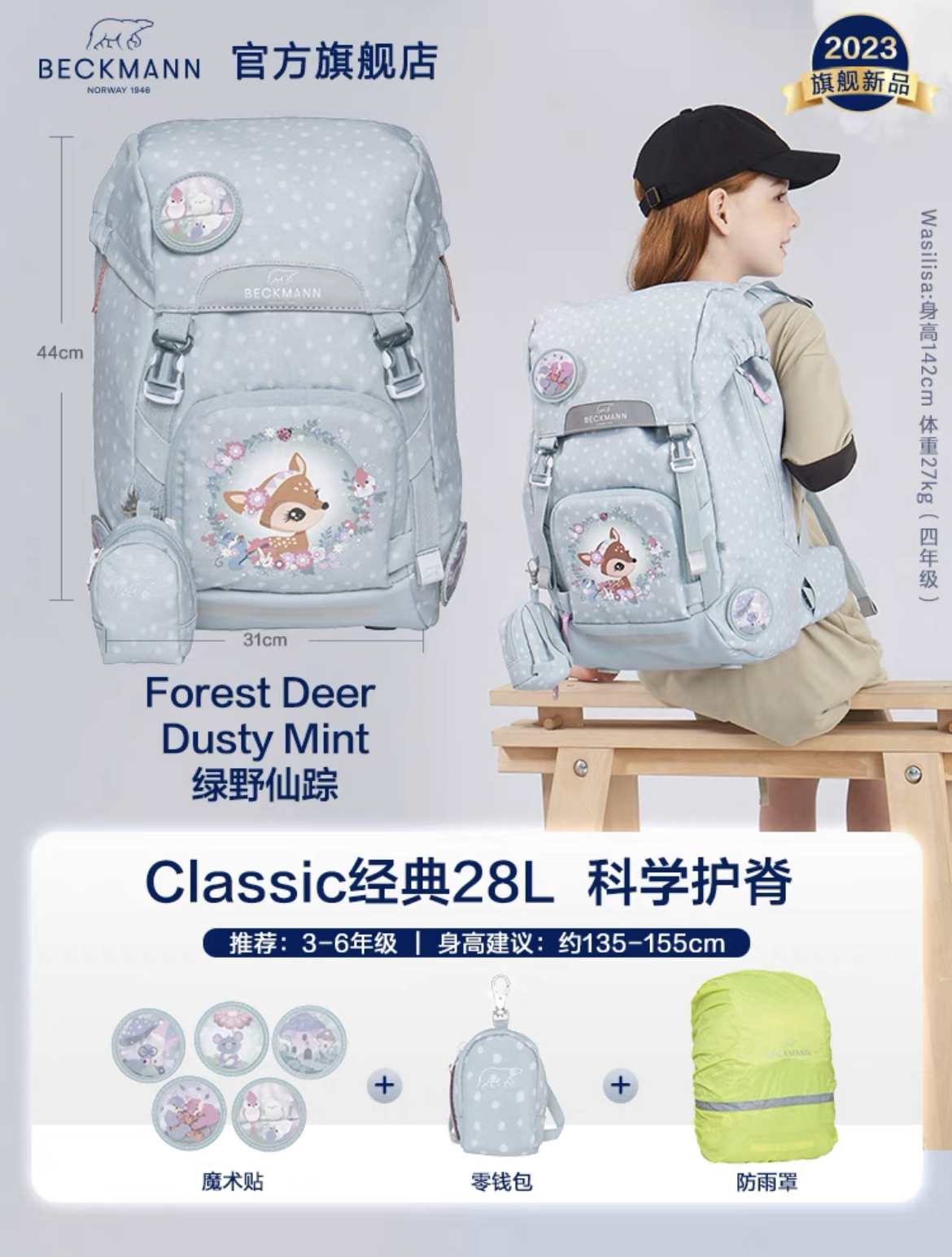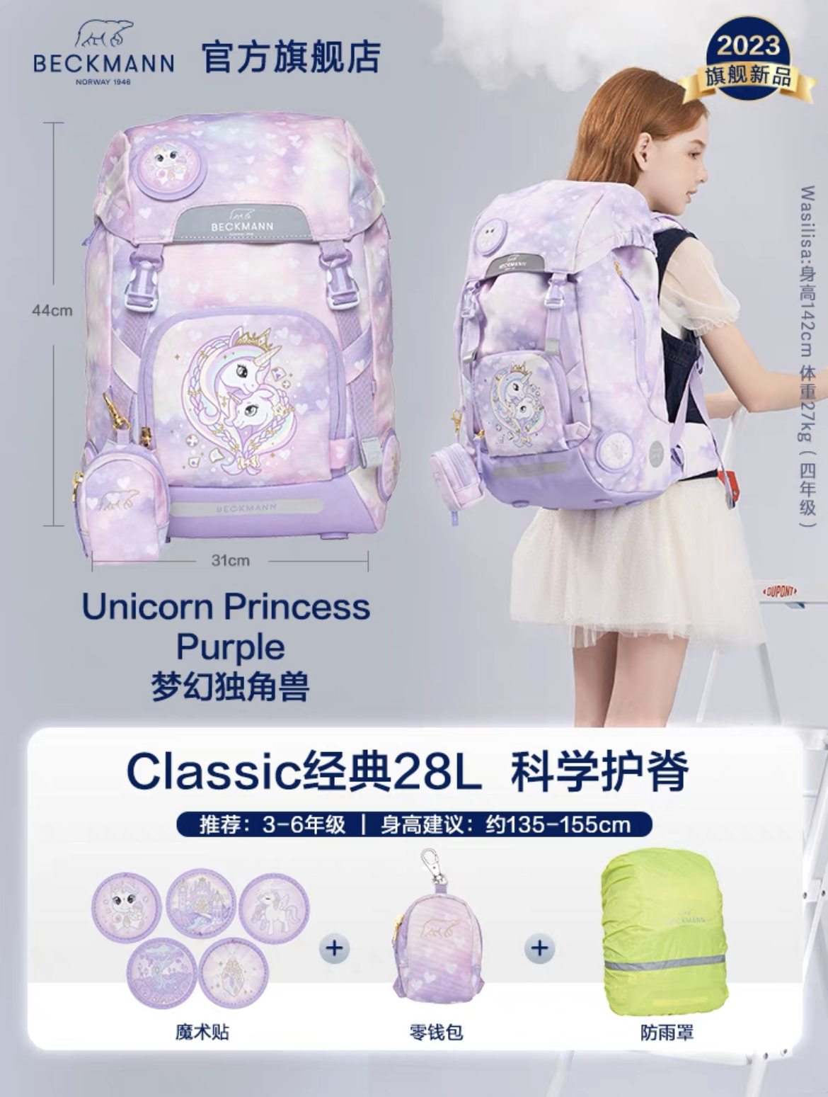 9楼大将作 贝克曼28L大容量小学生书包护脊减压3-6年级男女款