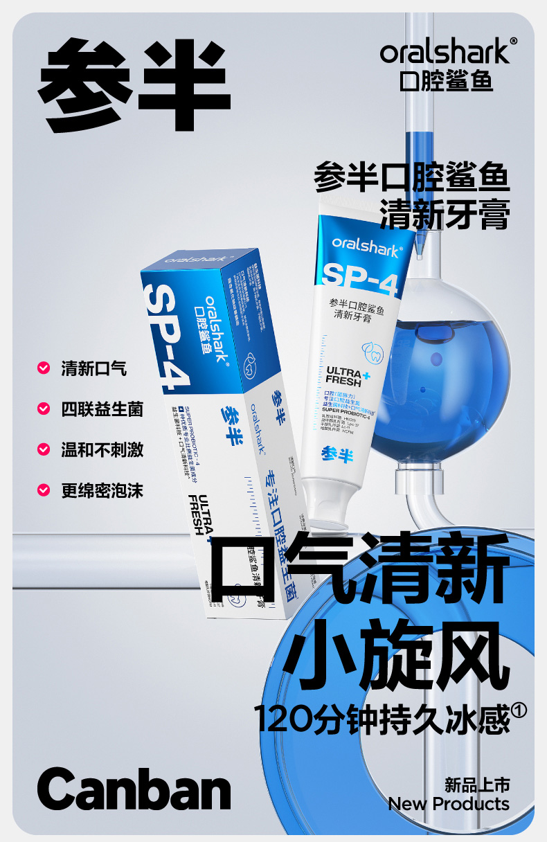 【先领券后下单】参半Oralshark SP-4美白/清新牙膏100g