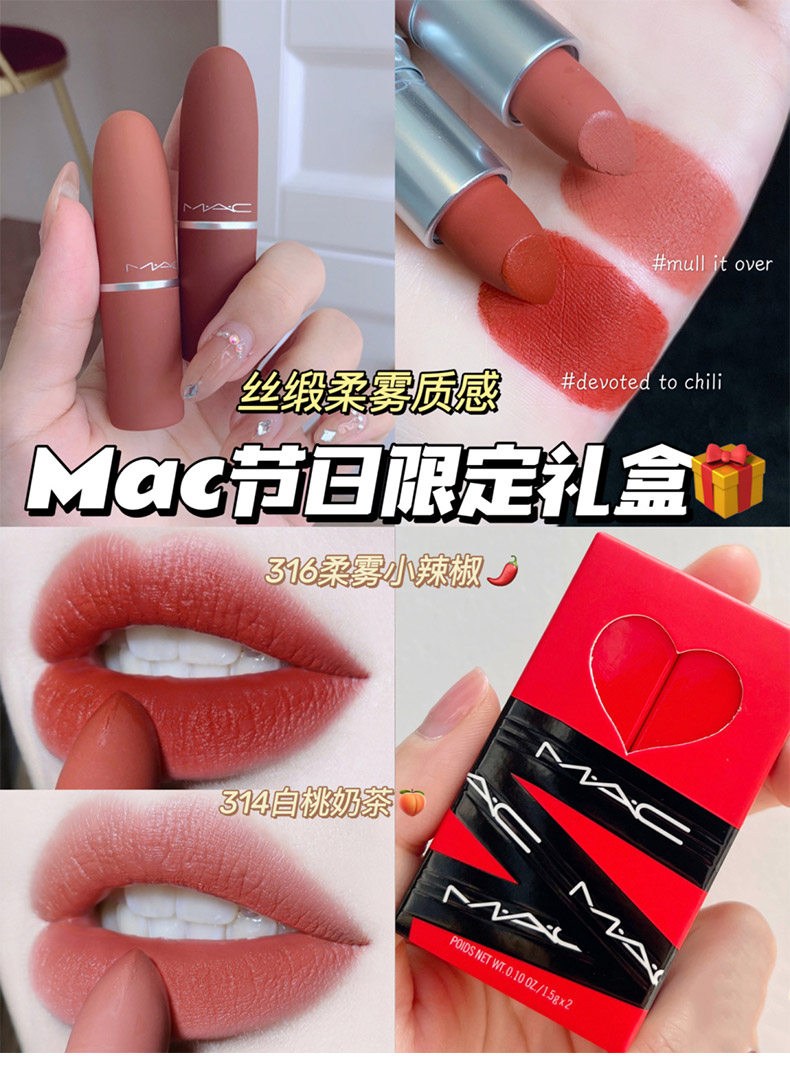 【春日限定 限时特惠】MAC口红两件套丝绒#314#316 1.5g*2支