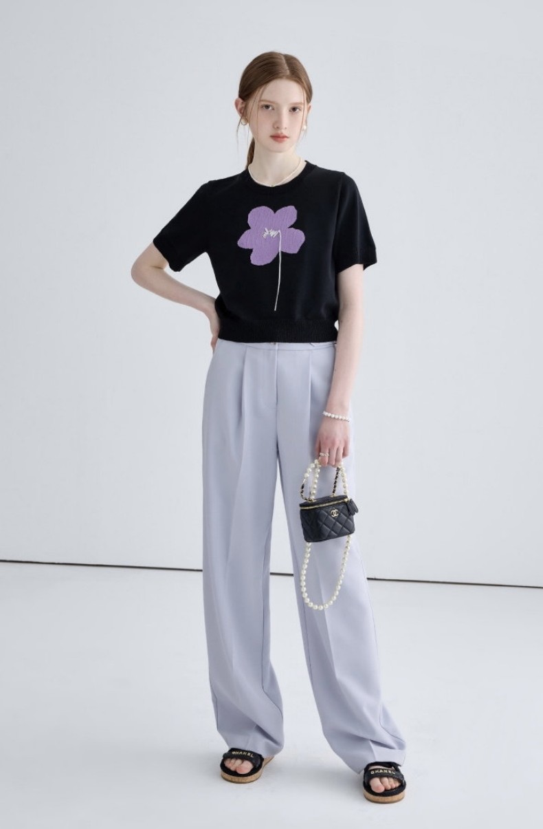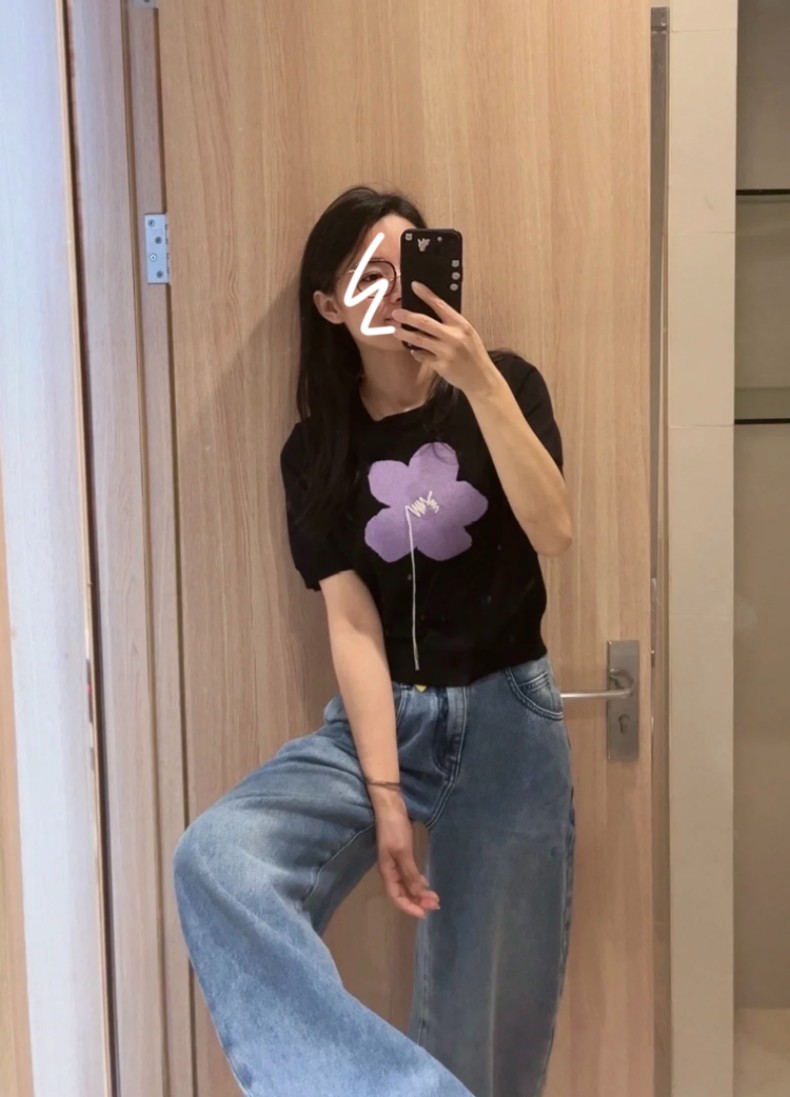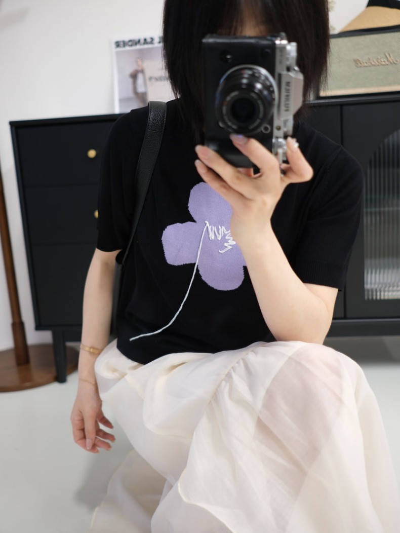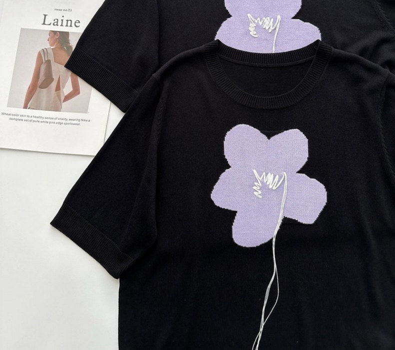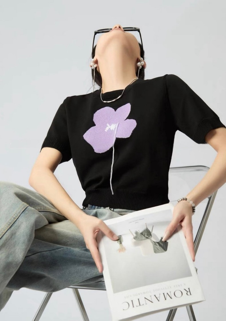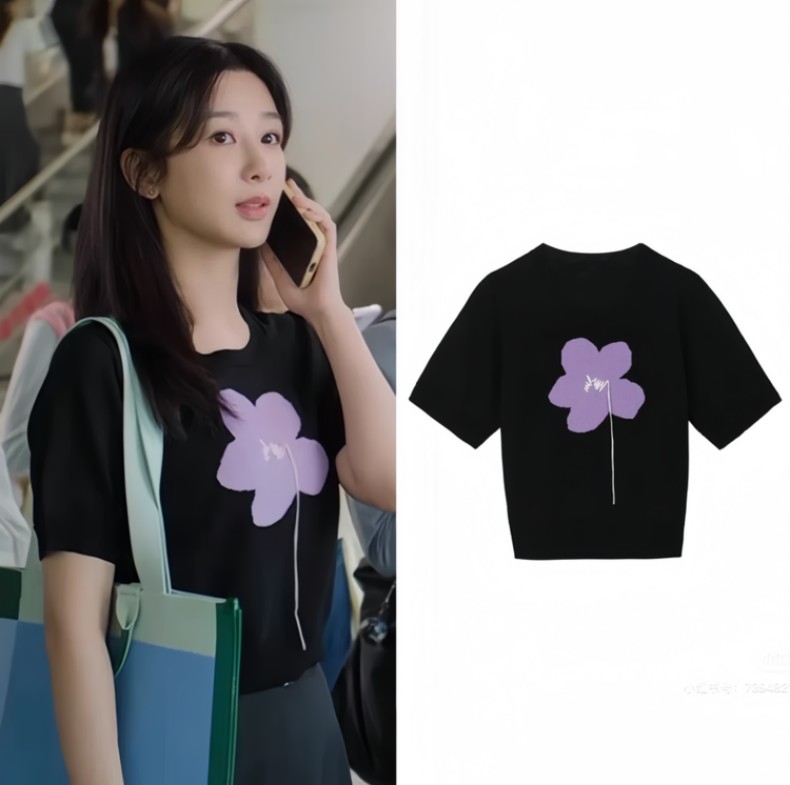 【品名】:杨紫明星同款紫色提花圆领T恤HJZXA68