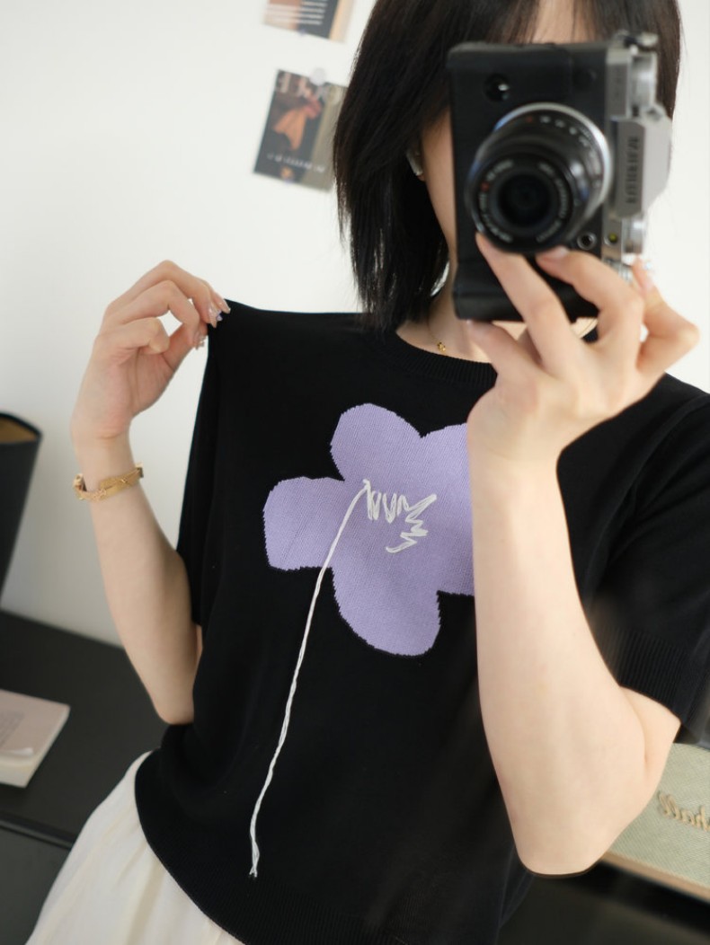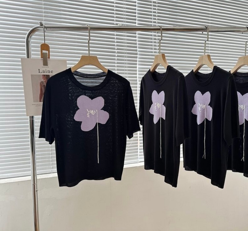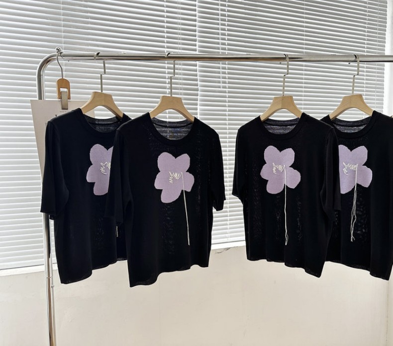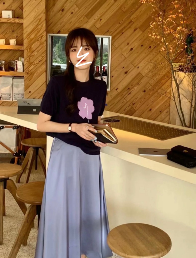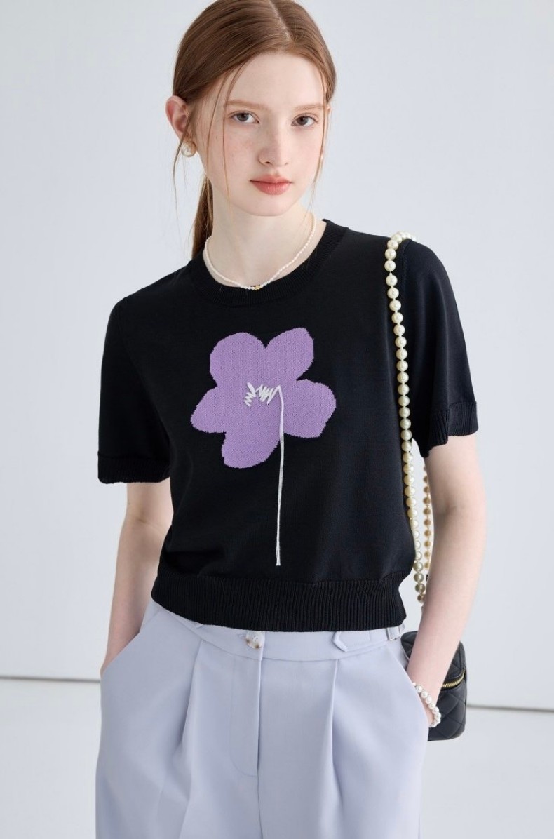 【品名】:杨紫明星同款紫色提花圆领T恤HJZXA68