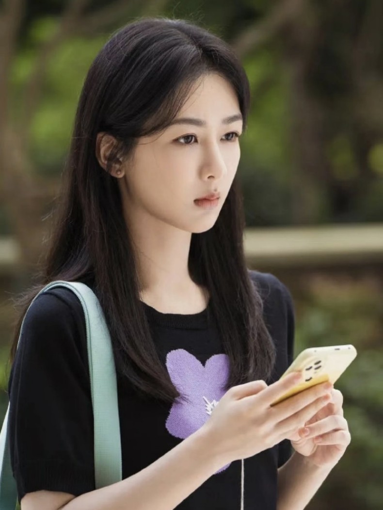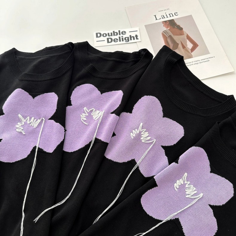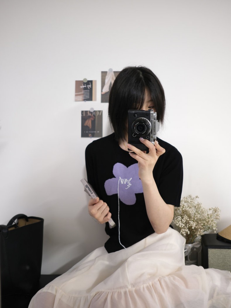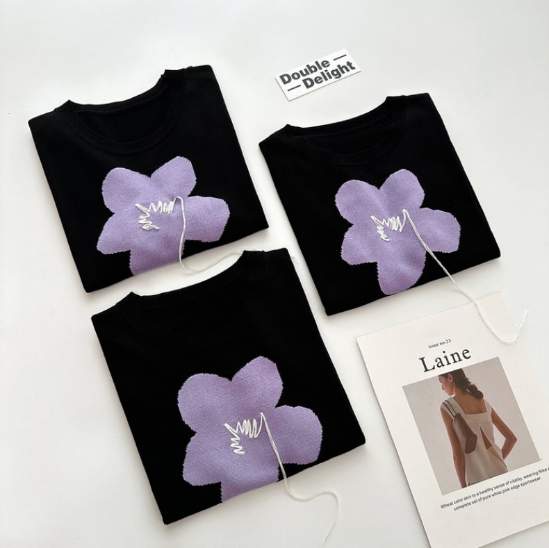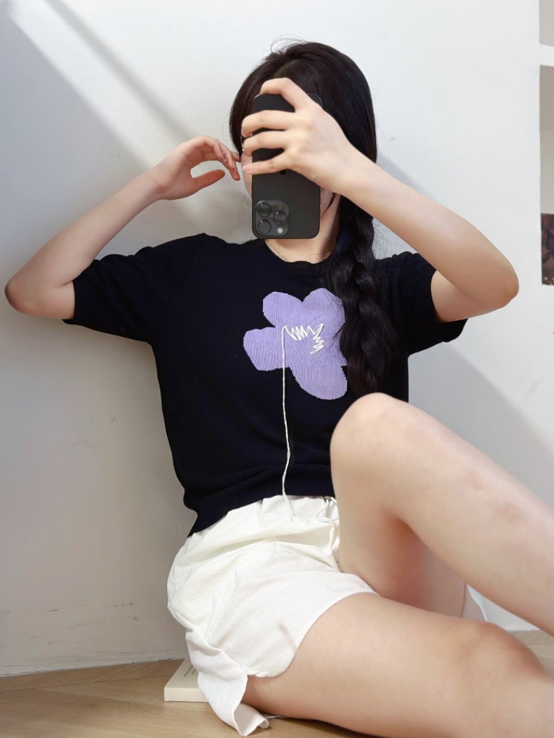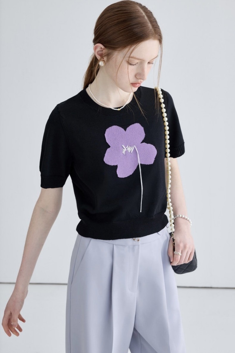 【品名】:杨紫明星同款紫色提花圆领T恤HJZXA68