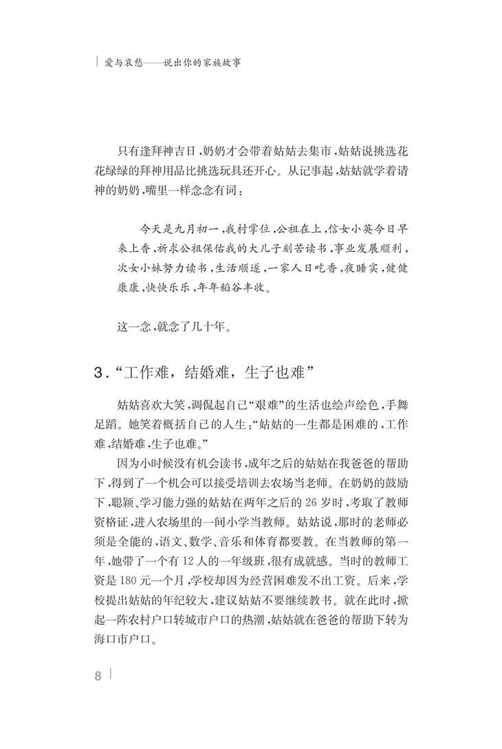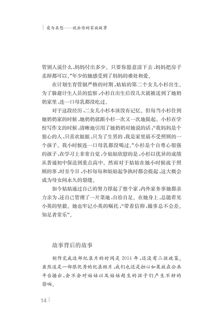 这本书,就是学生们在他们的采访后记的基础上,重新撰写的家庭故事。学生们都已经毕业,他们还是非常配合地根据纪录片的内容撰写文字作品,并认真地加入了更多的细节。我最后从中选出了30多篇文章,但还是有若干篇文章因为内容敏感或者其他原因最终不能入选,最后只有29个故事得以成书。