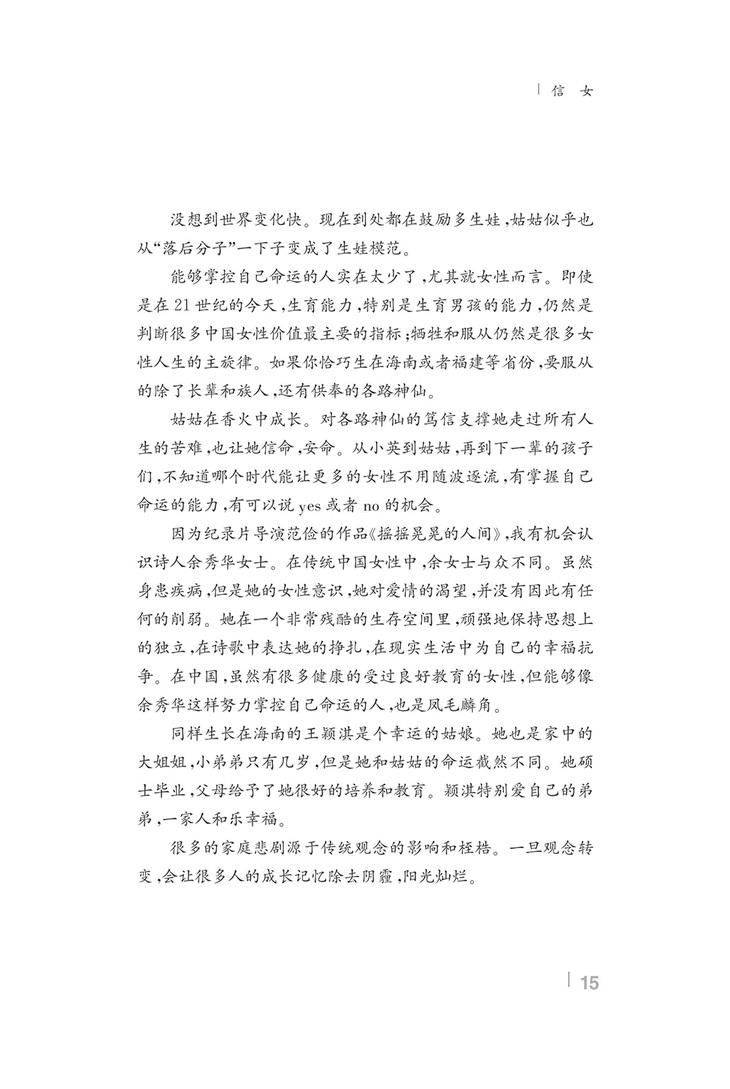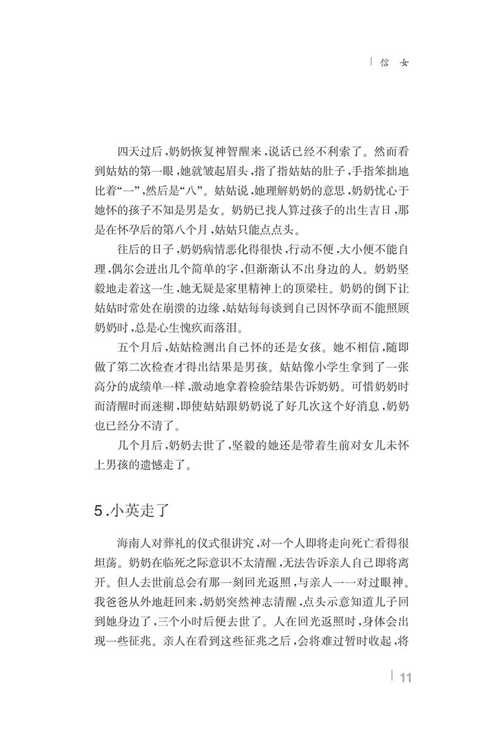 生于1924年的奶奶,历经了军阀割据、抗日战争、国共内战、土地改革、人民公社、十年动乱、改革开放。生过九个孩子,养大七个。从大小姐变为小贩,60岁后找到信仰。(周凤婷,《东堰桥头》)
