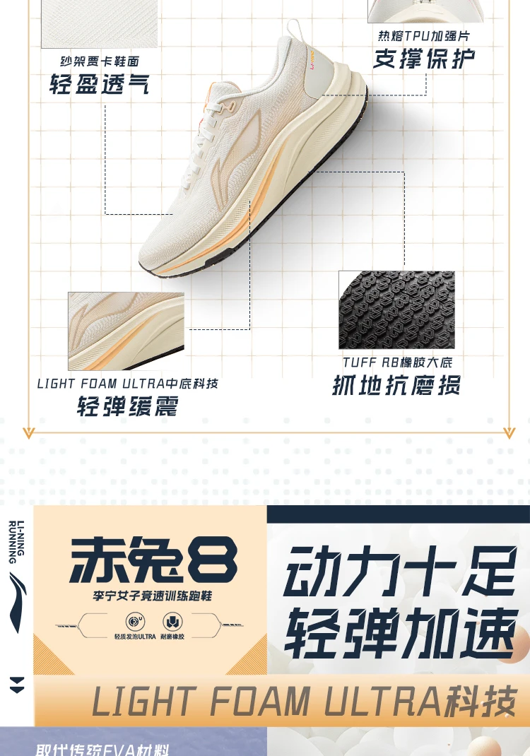 李宁赤兔8女子反光轻量竞速训练跑鞋ARPV014