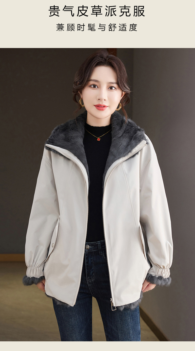 OSL 2562真兔毛两面穿派克服外套皮毛獭兔一体冬季皮草 商品图4