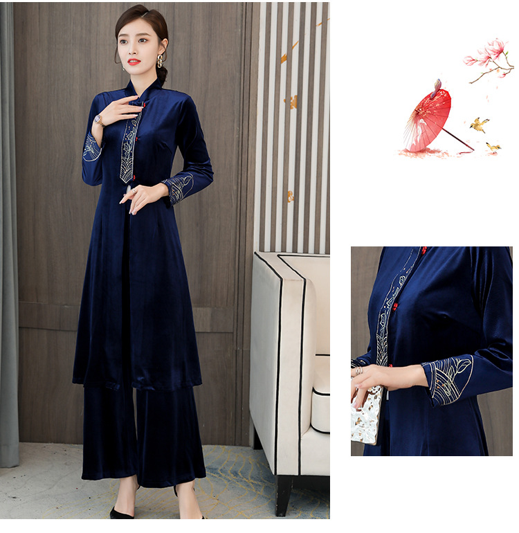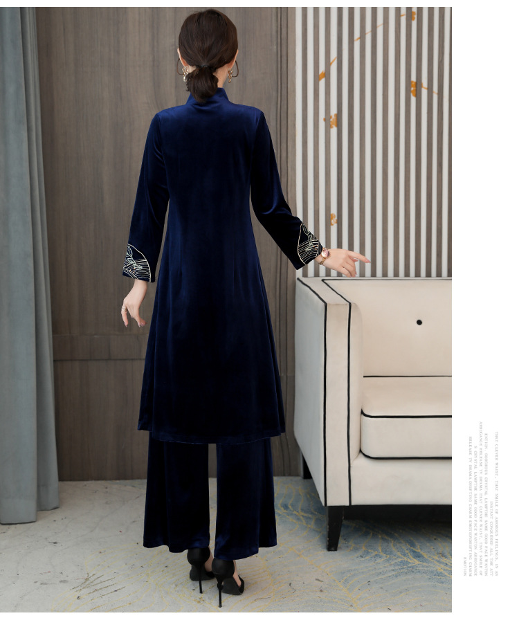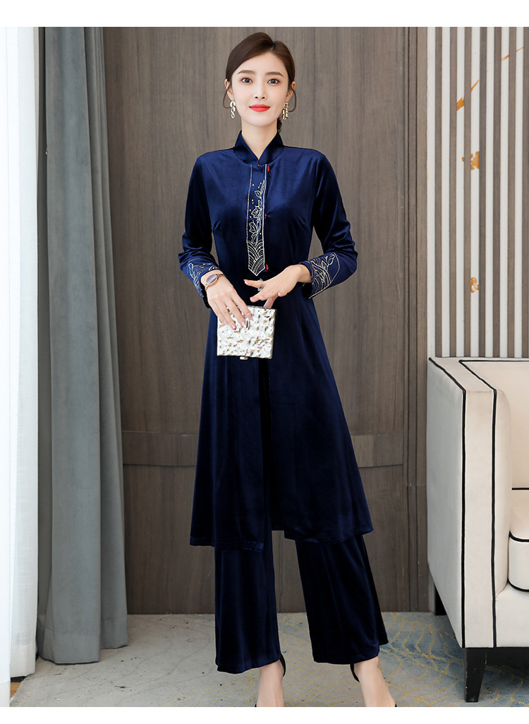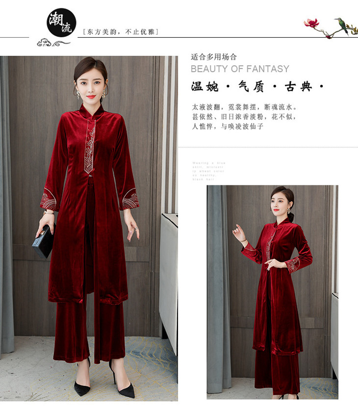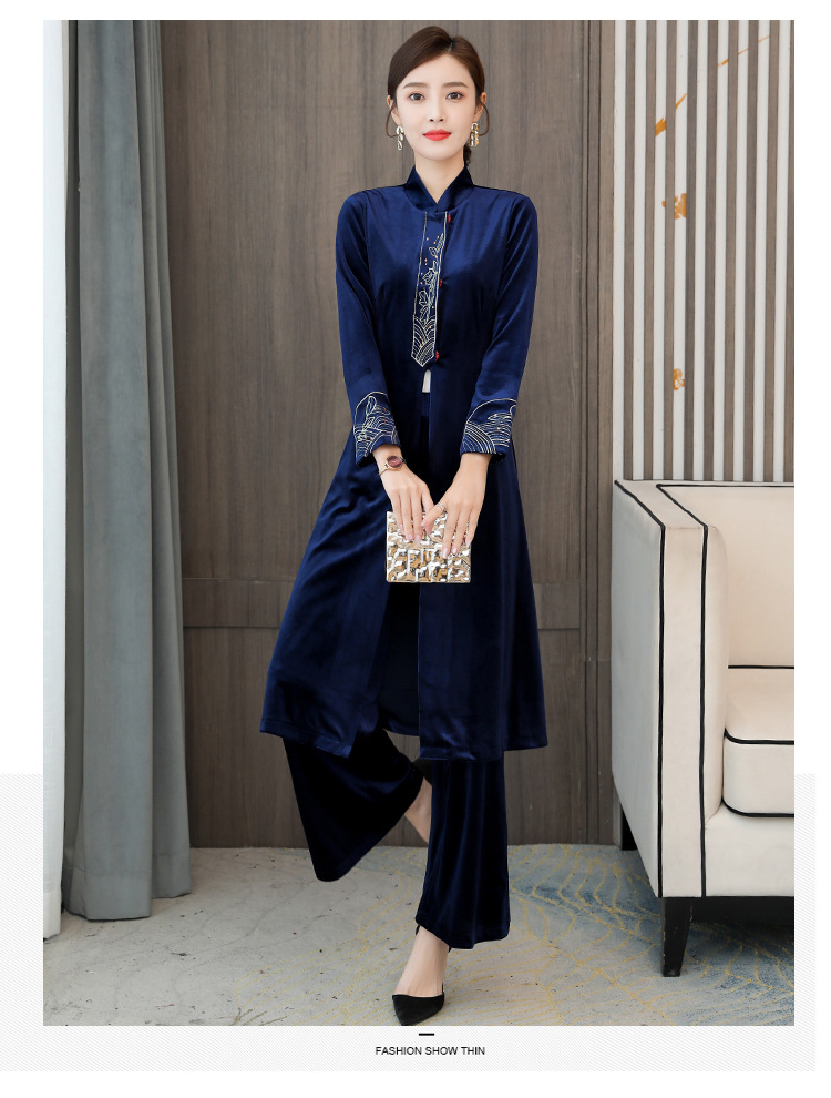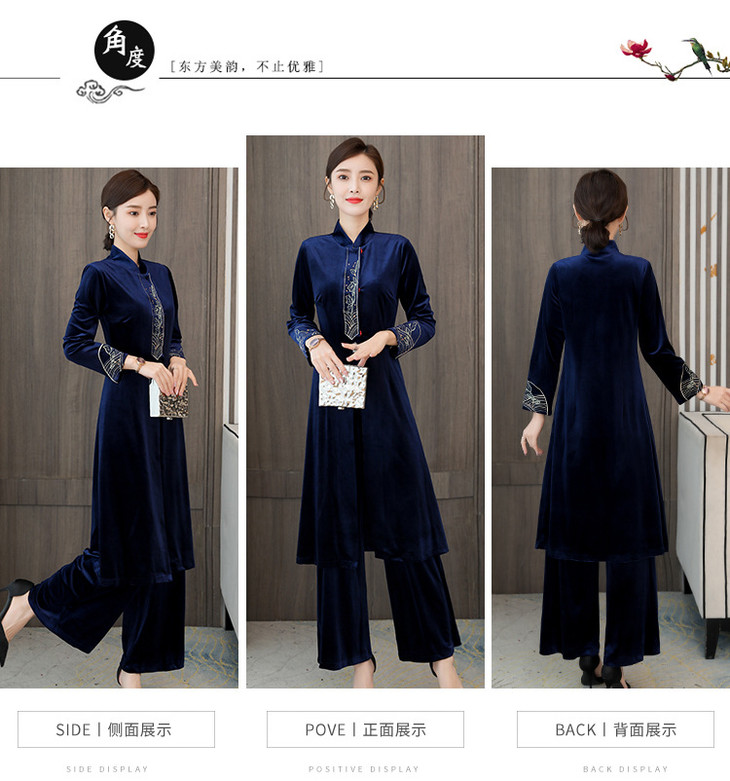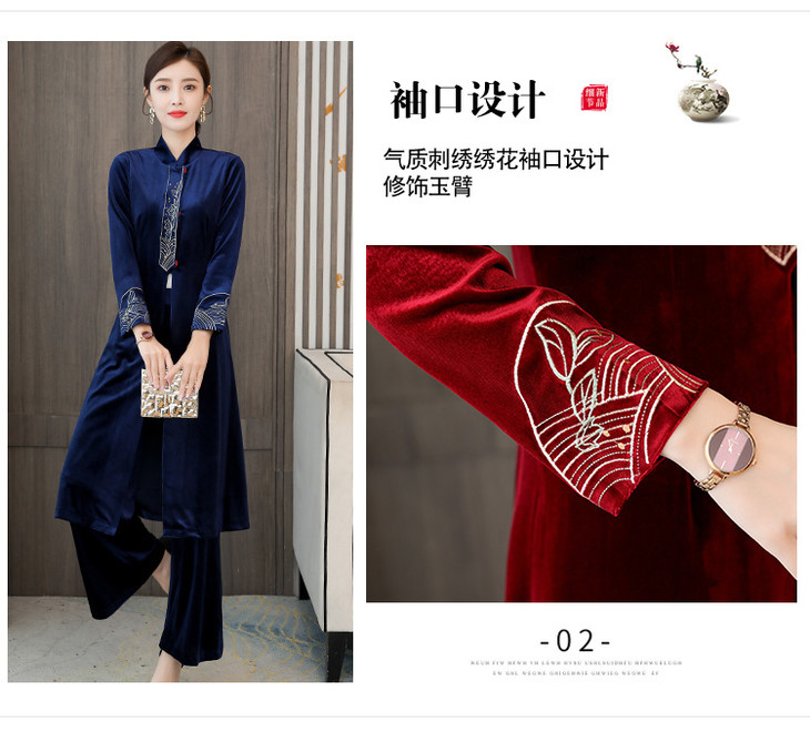 AHM-zne9329春秋新款优雅中式复古气质丝绒绣花两件套