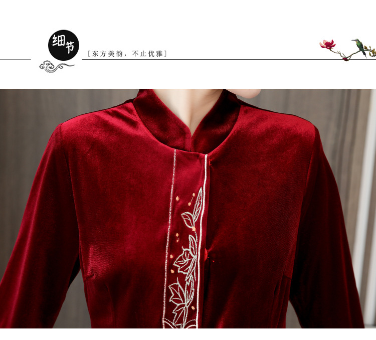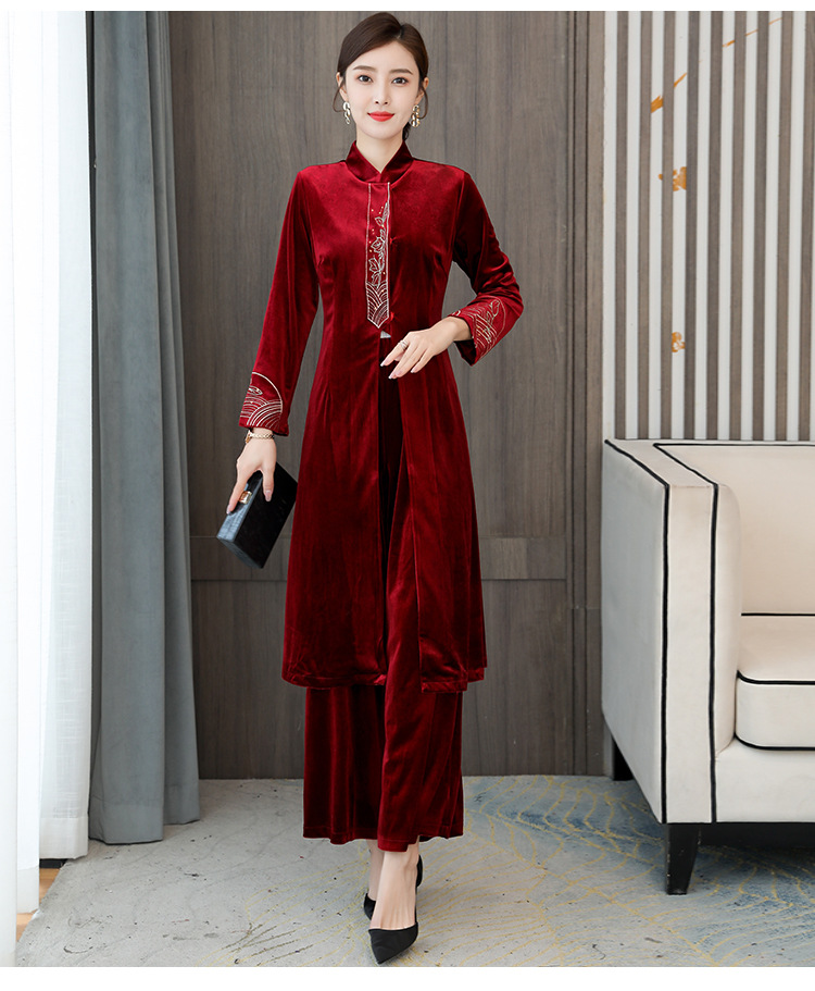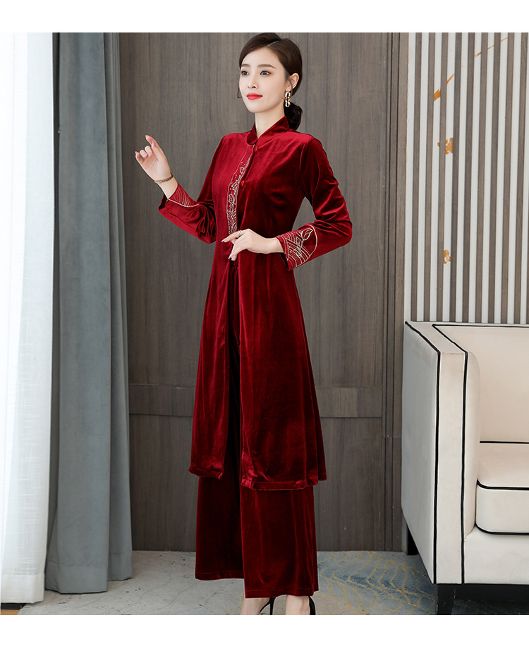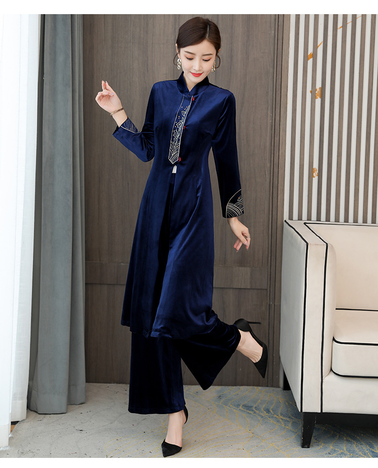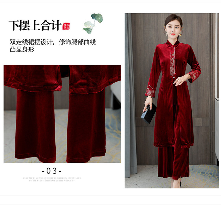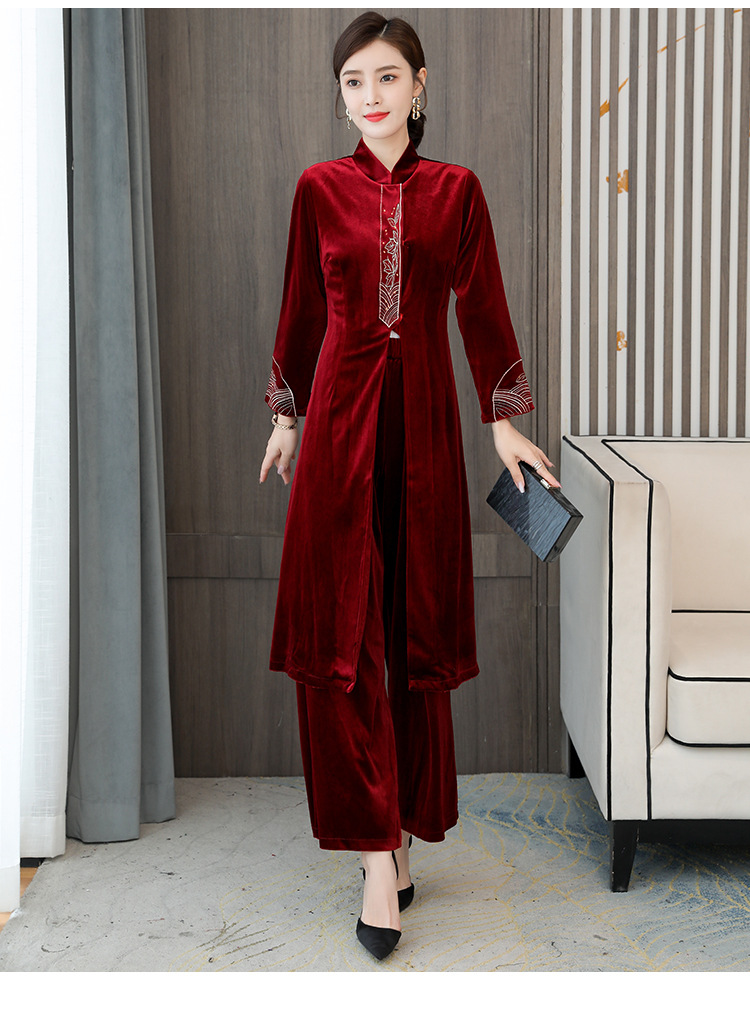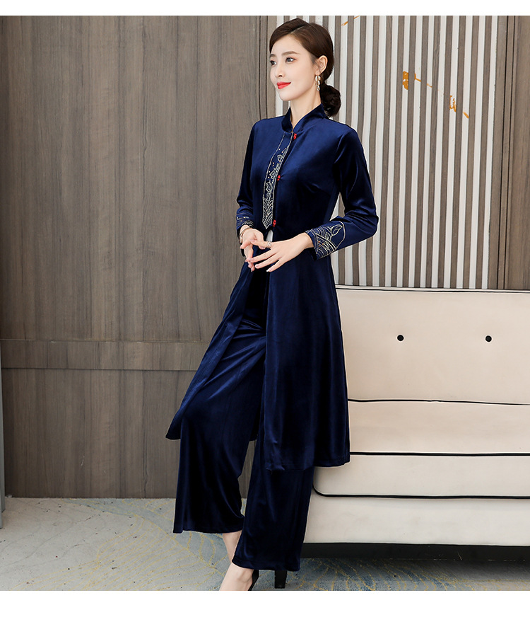 AHM-zne9329春秋新款优雅中式复古气质丝绒绣花两件套