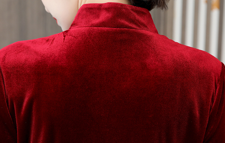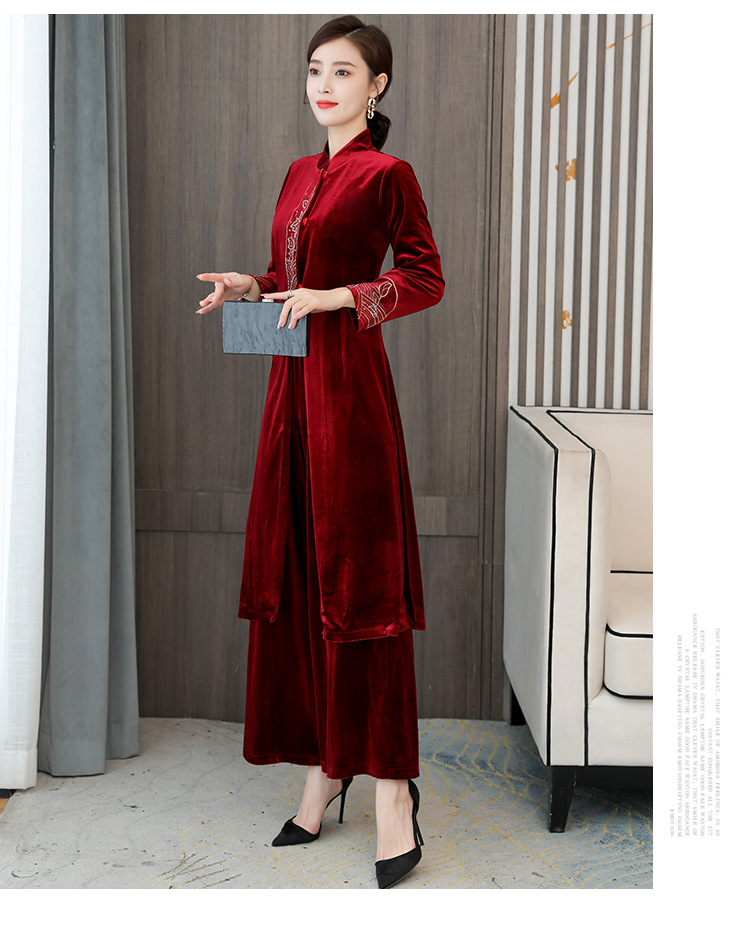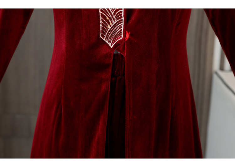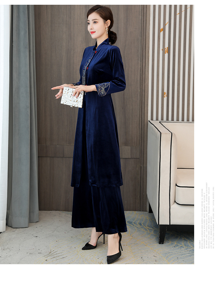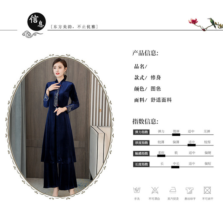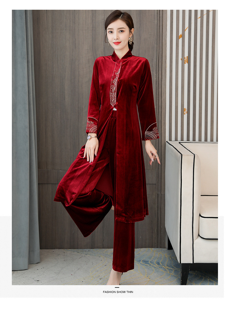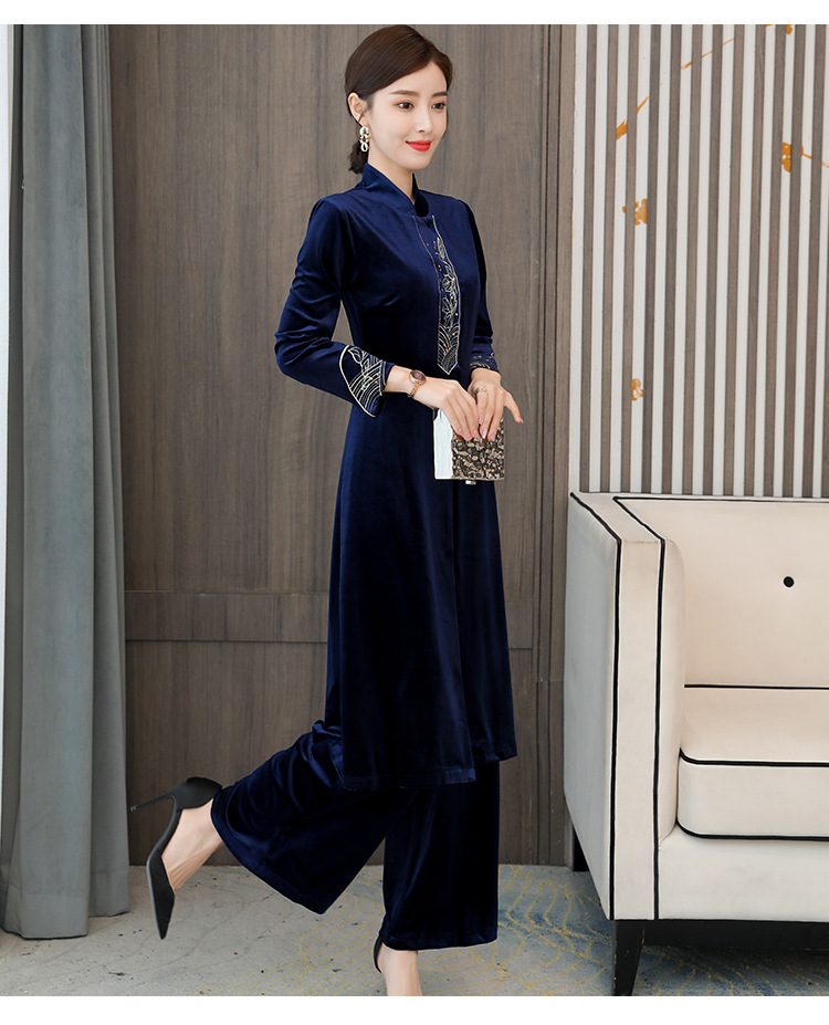 AHM-zne9329春秋新款优雅中式复古气质丝绒绣花两件套