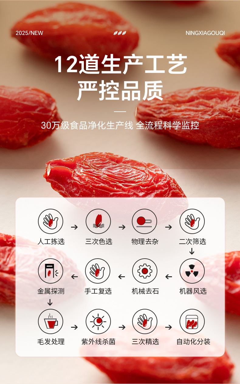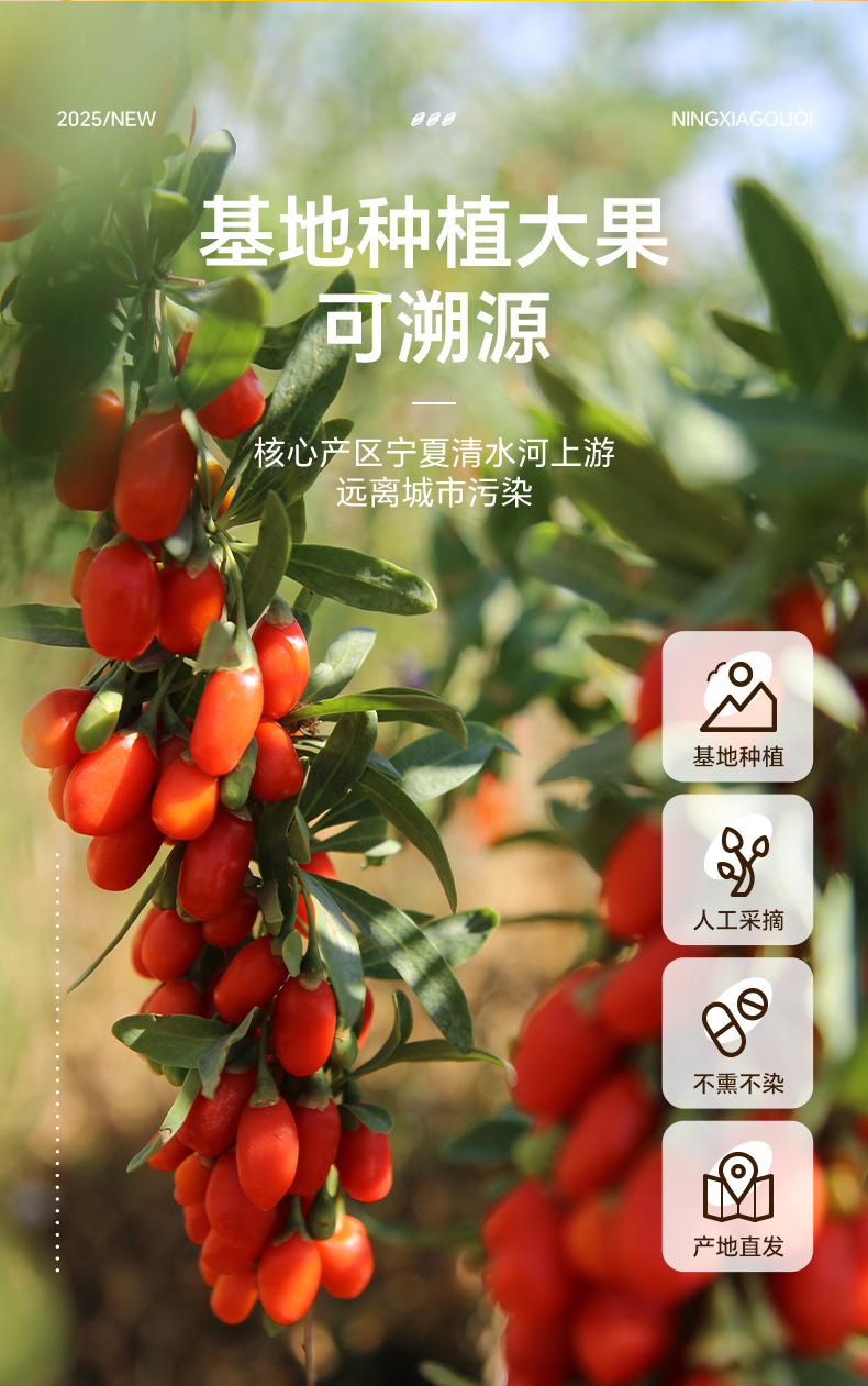 【颗粒饱满❗个大肉厚】宁夏枸杞特级头茬枸杞子无硫不染色250g免洗泡茶煲汤红枸杞干。rh