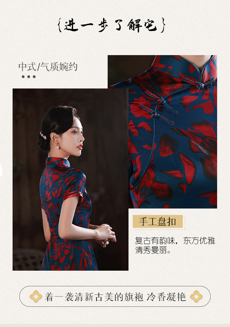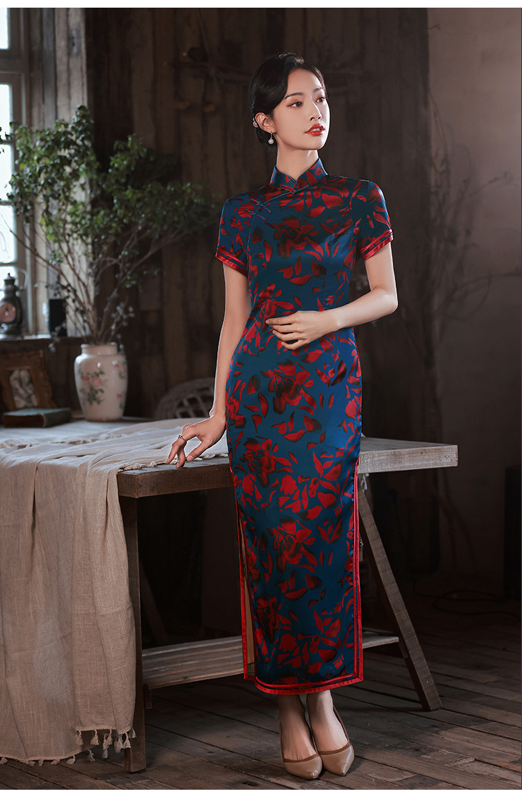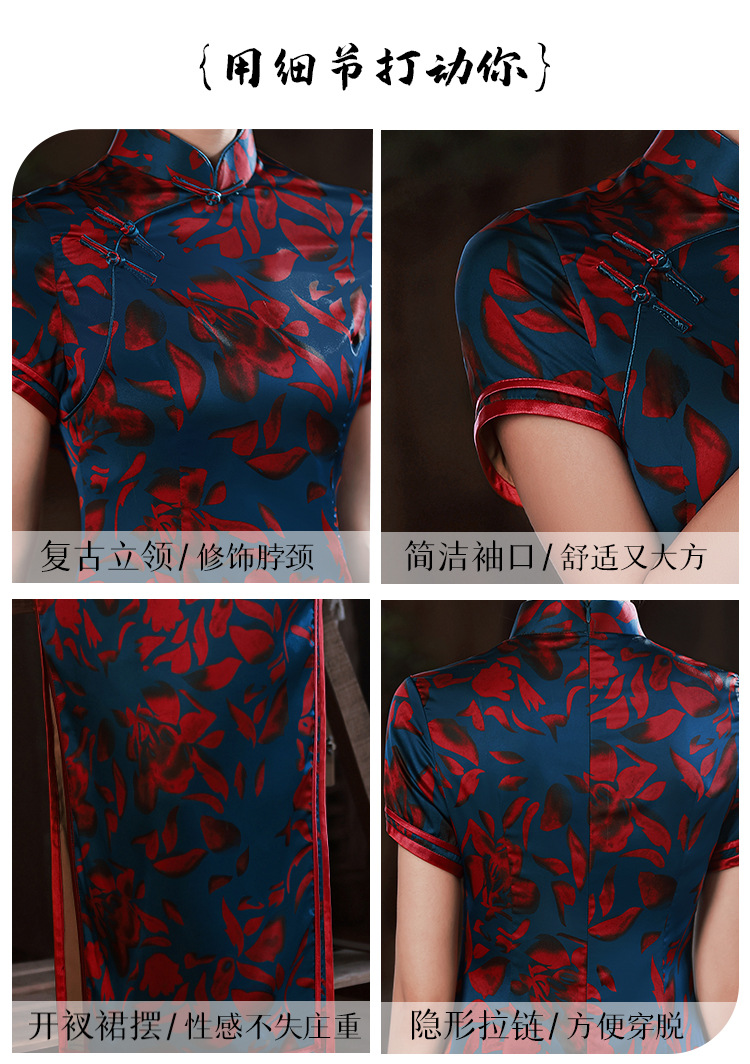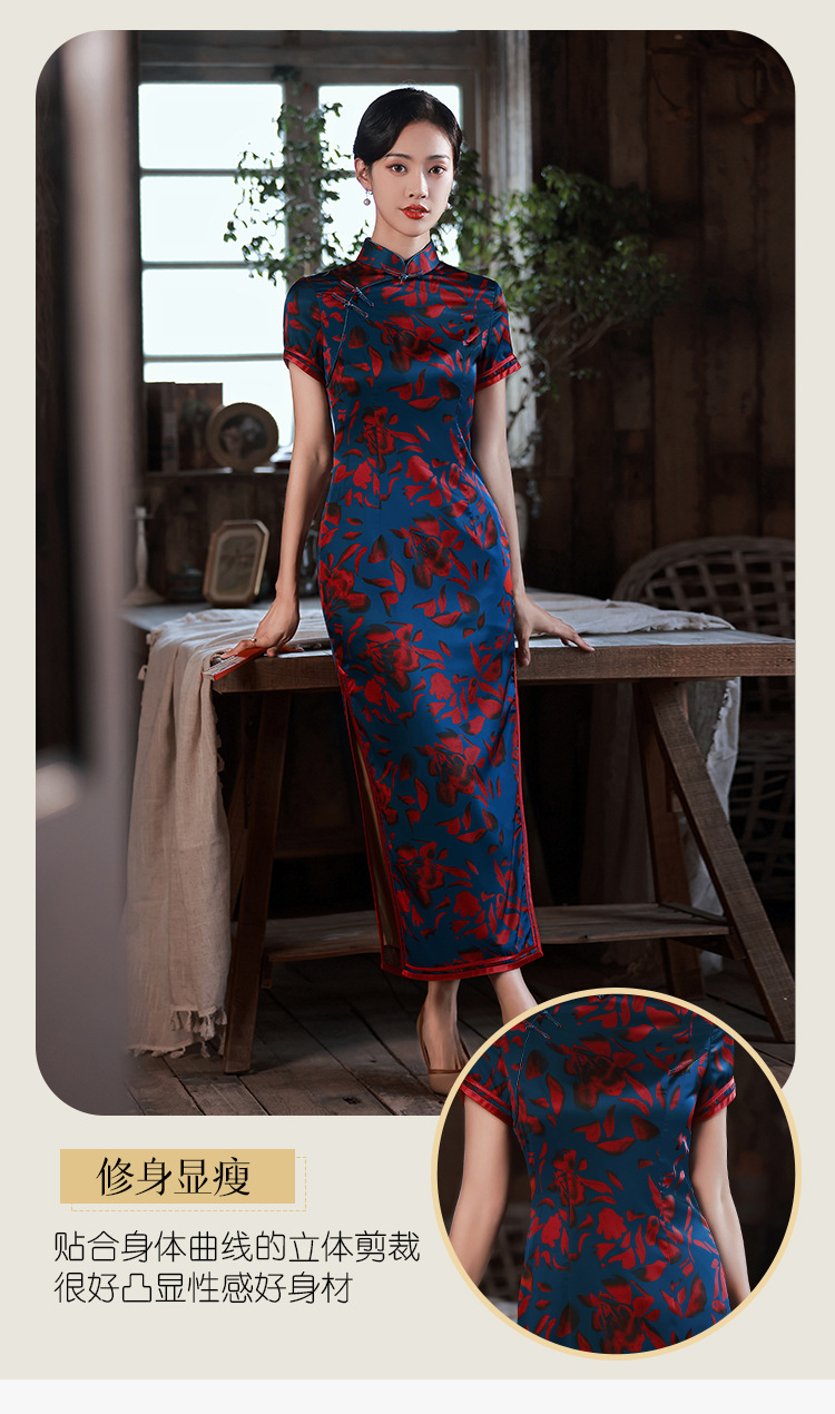 JD 22336 真丝高端桑蚕丝旗袍妈妈裙2023礼服订婚宴喜婆婆礼服装批发