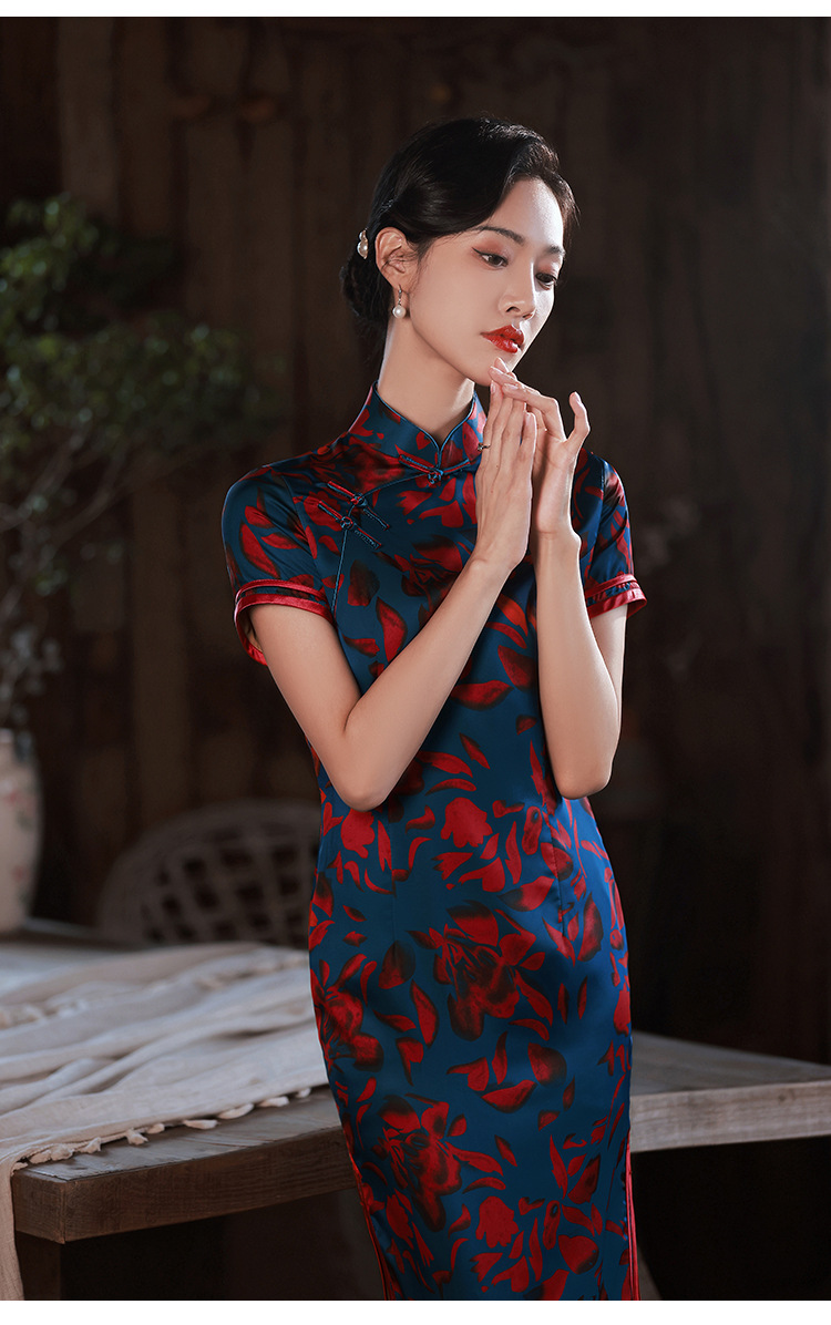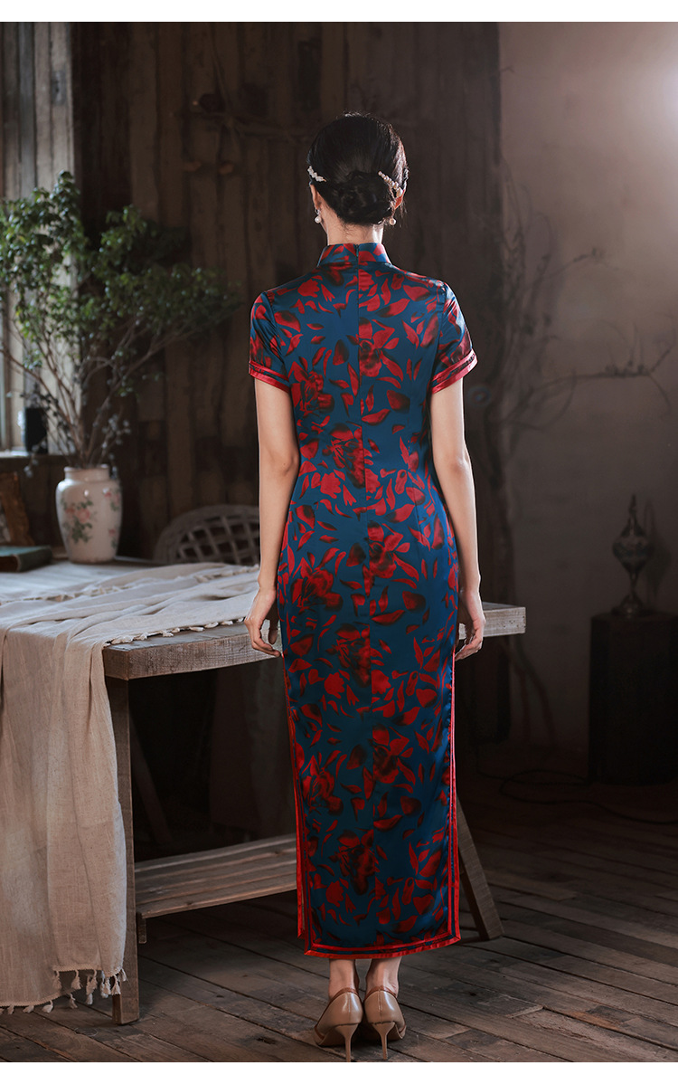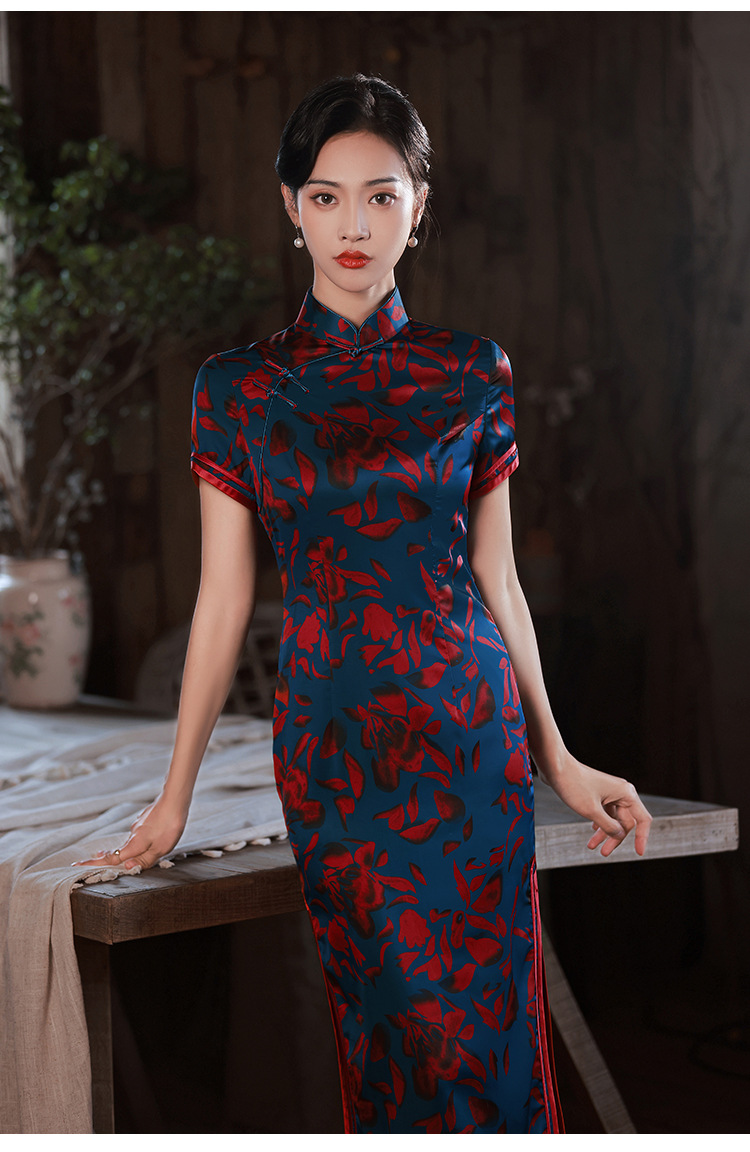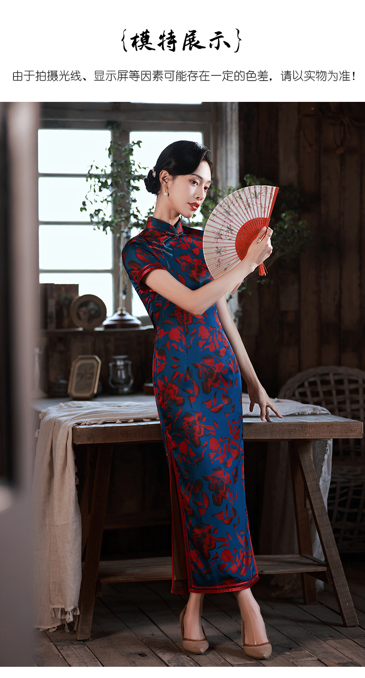 JD 22336 真丝高端桑蚕丝旗袍妈妈裙2023礼服订婚宴喜婆婆礼服装批发
