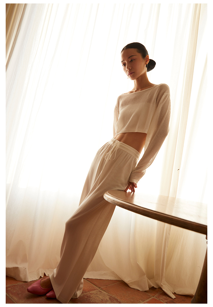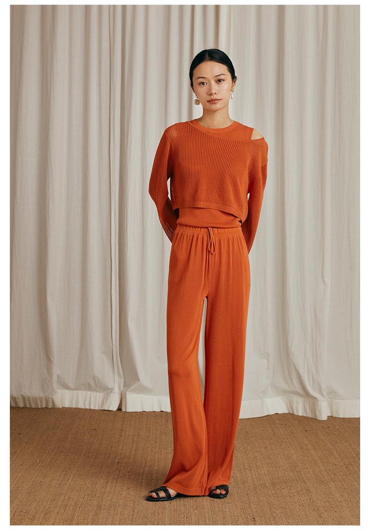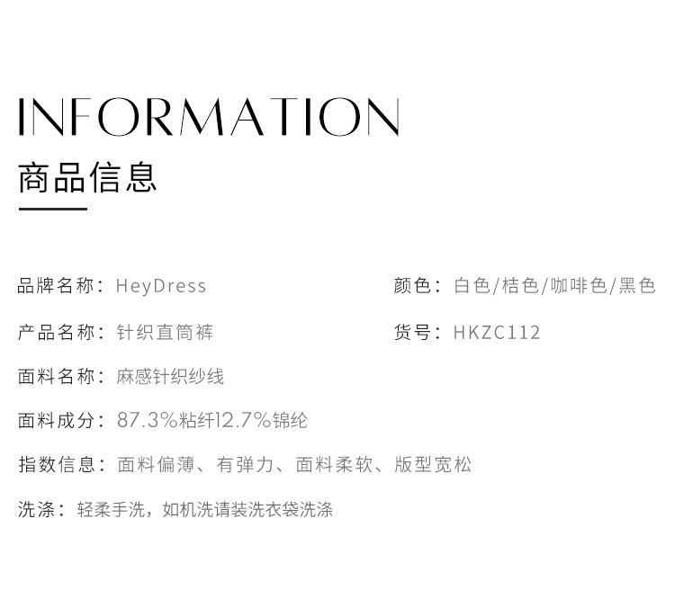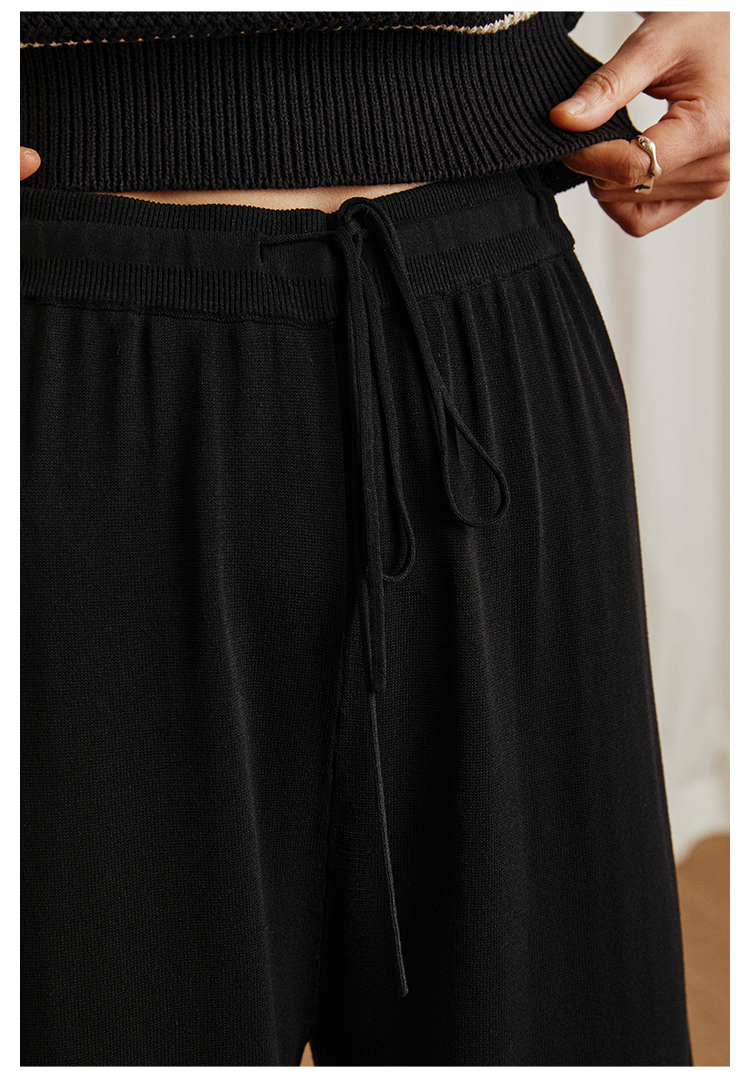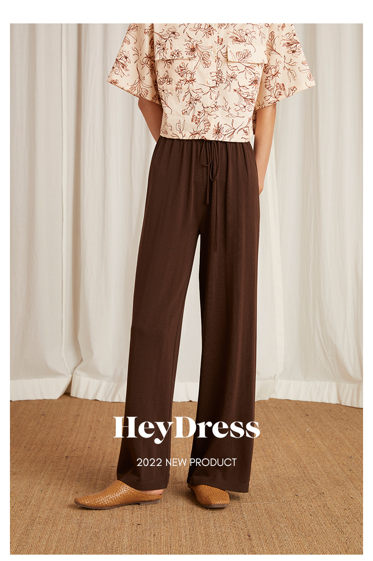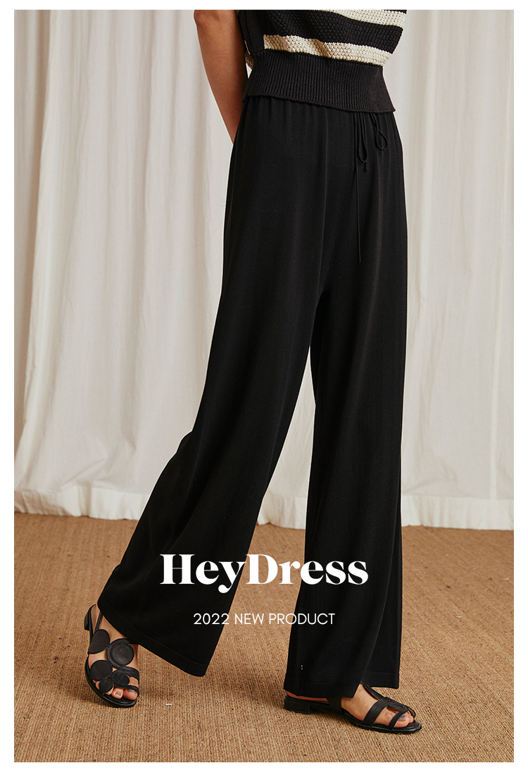 HeyDress针织休闲裤女高腰宽松直筒阔腿裤垂感百搭显瘦裤子