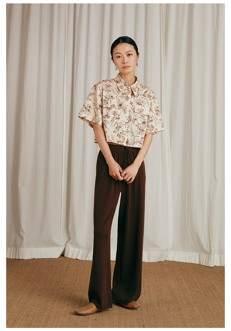 荷叶边翻领条纹衬衫