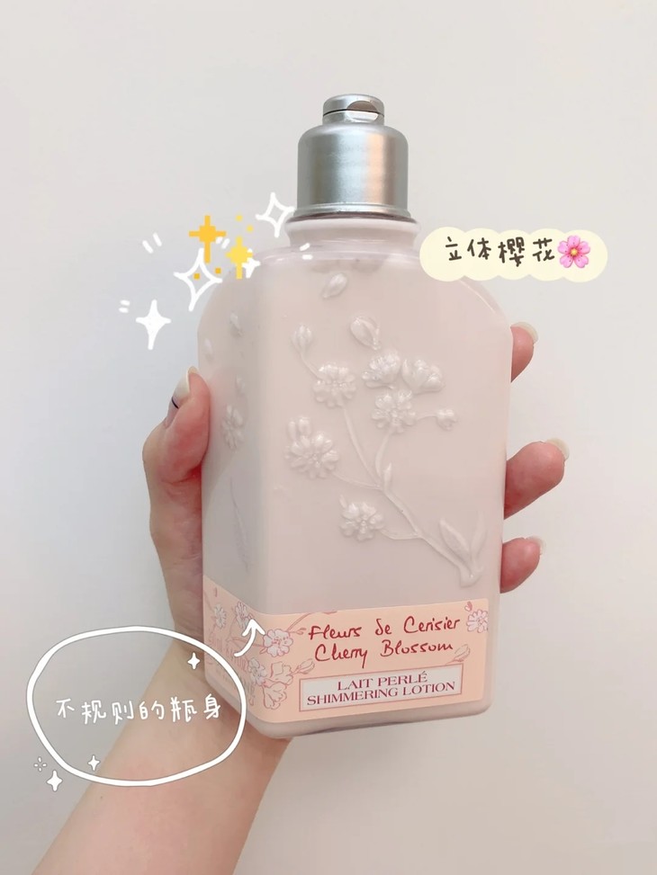 👑L'occitane欧舒丹樱花身体乳 👍欧舒丹樱花系列的身体乳 💕充满了樱花和牛奶的馥郁香气🍒 🌸非常滋润又不显油腻。 ✨涂上之后你会发现会有bling bling的金粉喔~