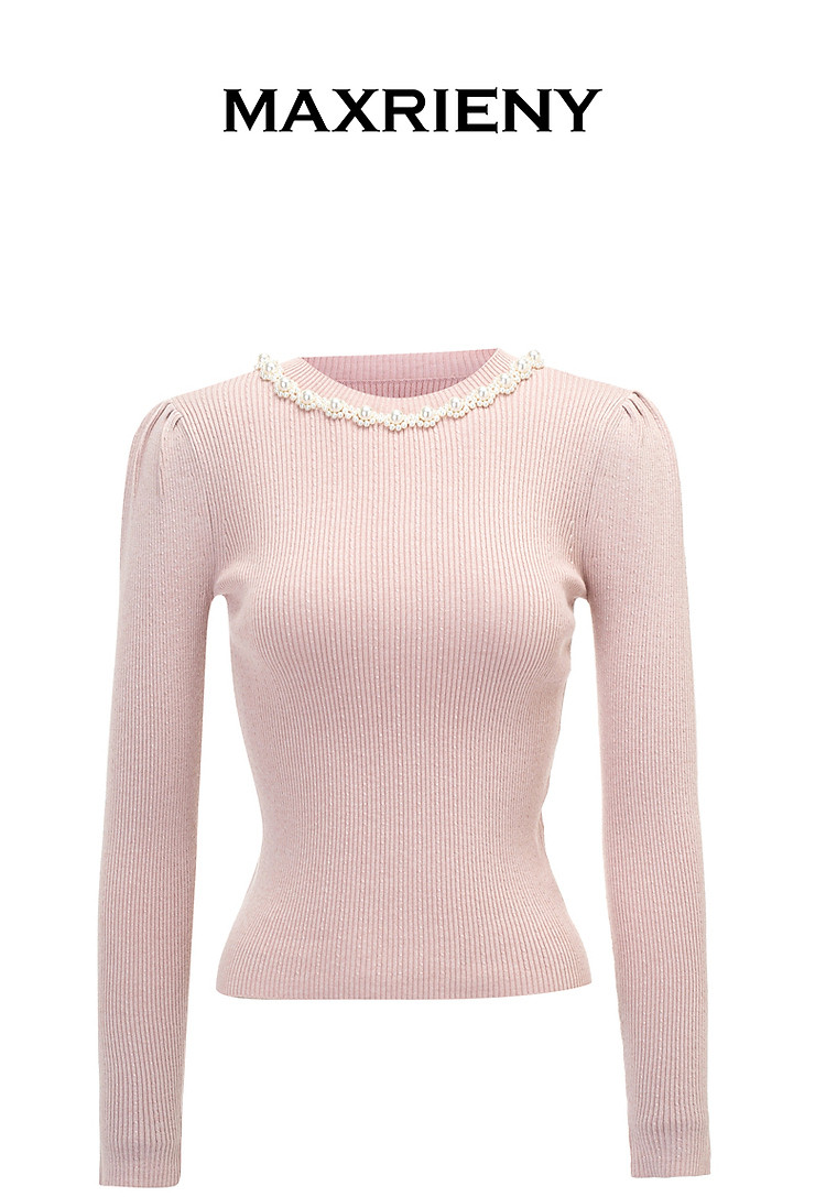 MAXRIENY复古圆领套头针织衫女内搭打底衫修身上衣MS85SW005R10