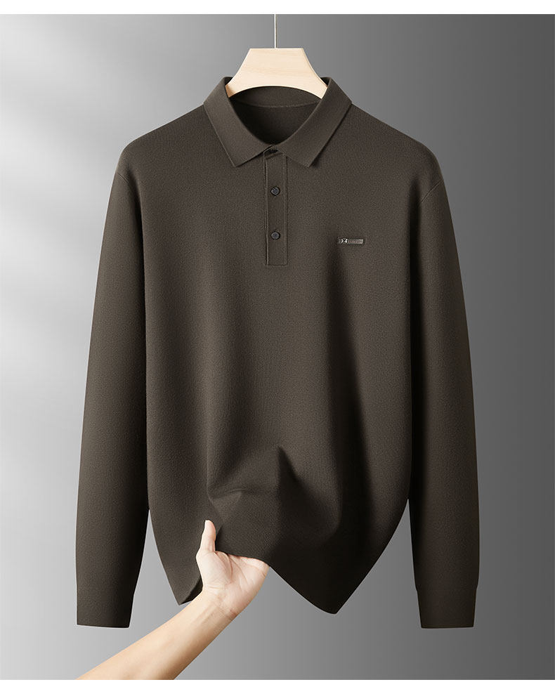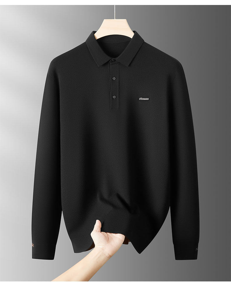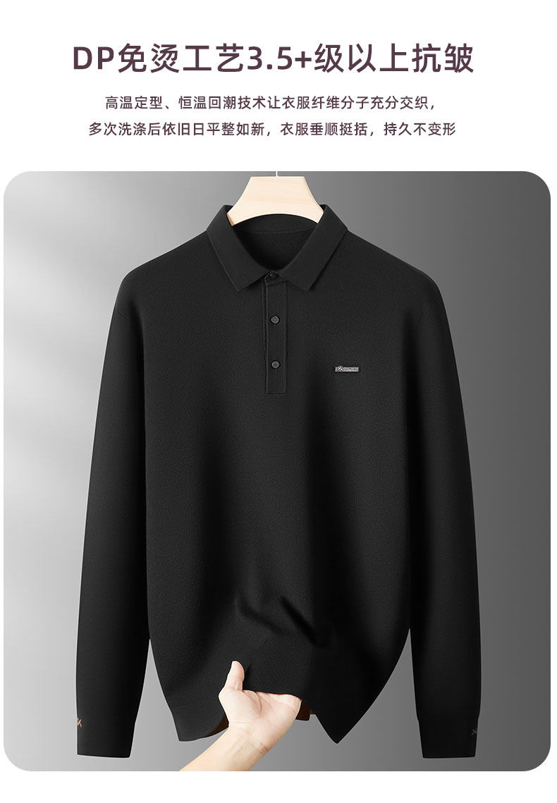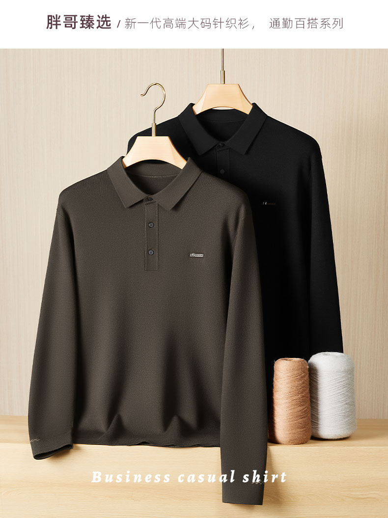 【DDS】大依优型大码男装翻领针织衫毛衣打底衫商务休闲宽松弹力长袖上衣男士加肥加大