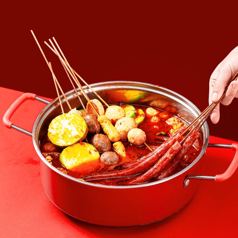 吃火锅怎么能少得了小甜肠,在滚烫沸腾的红汤中翻滚的绯红小甜肠,吸足了鲜美的汤汁,肉质不松不散,挂着油光,带着锅底的香辣,口口爆汁。