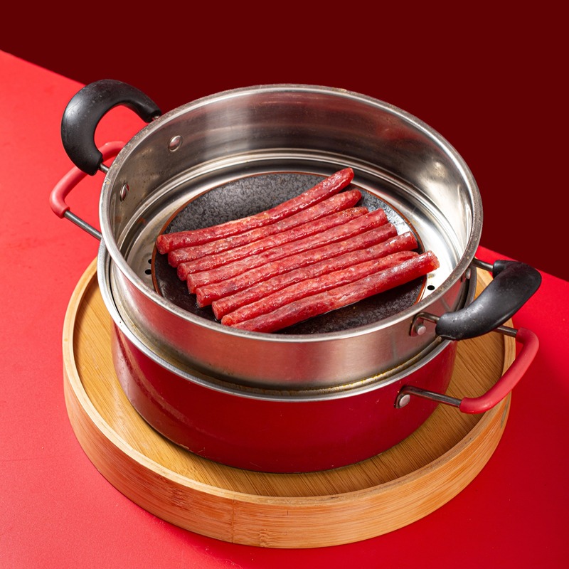 最简单的烹饪方法是整根上锅蒸,十分钟就能搞定,蒸好的小甜肠原汁原味,不油不腻,肉香浓郁。