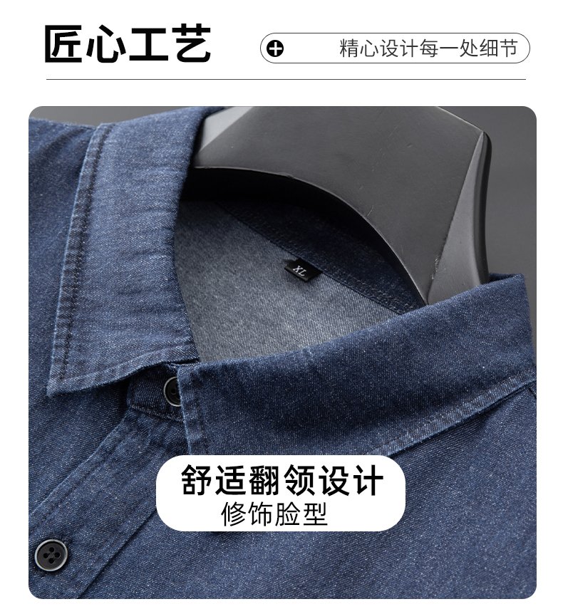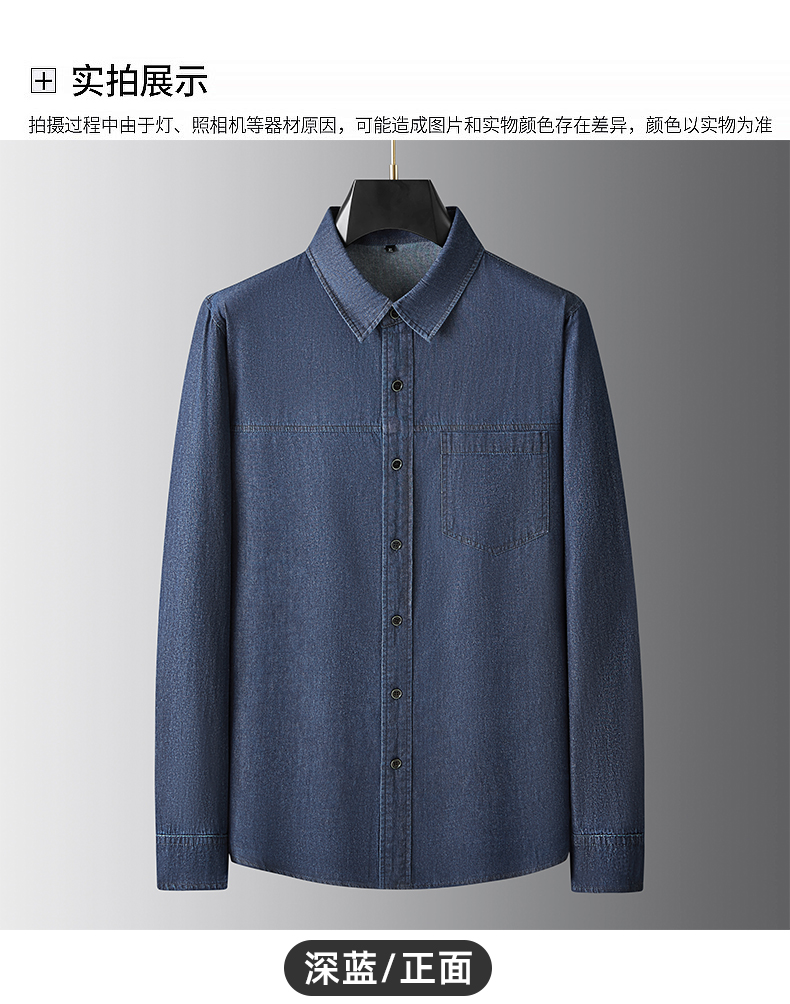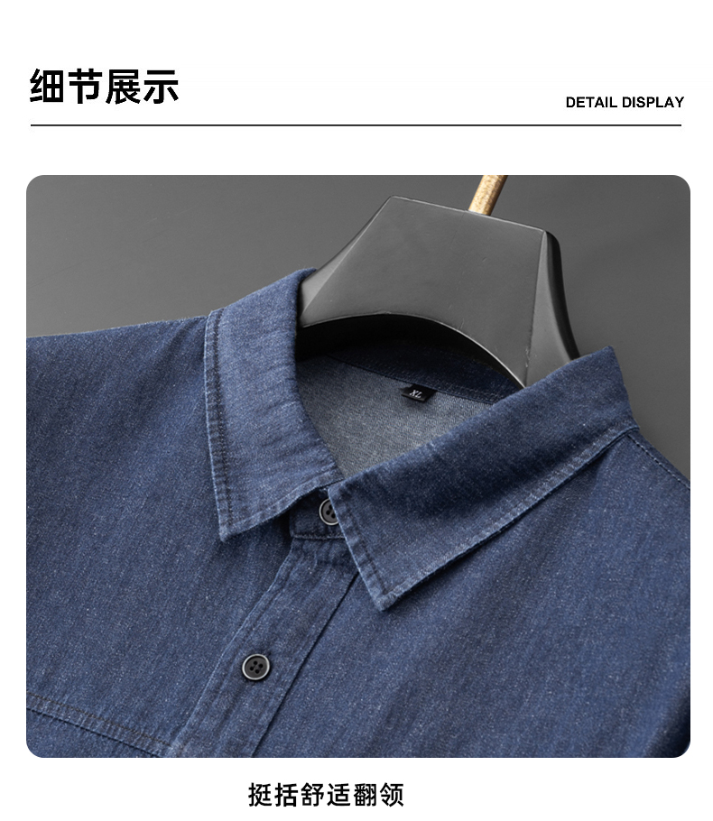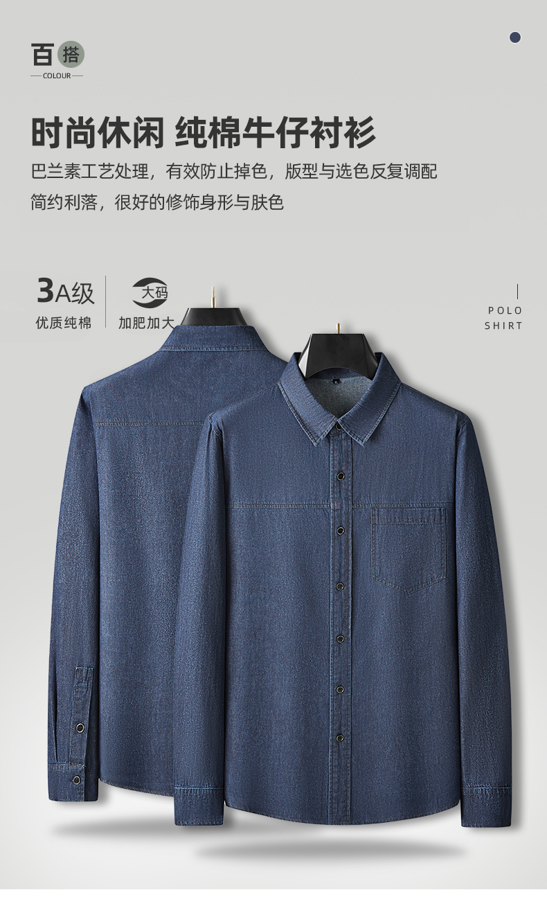 【100%棉】【新款DDA】大依优型大码牛仔长袖衬衫翻领加肥加大肥佬休闲商务宽松透气上衣