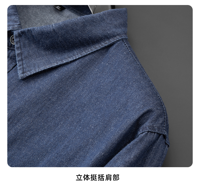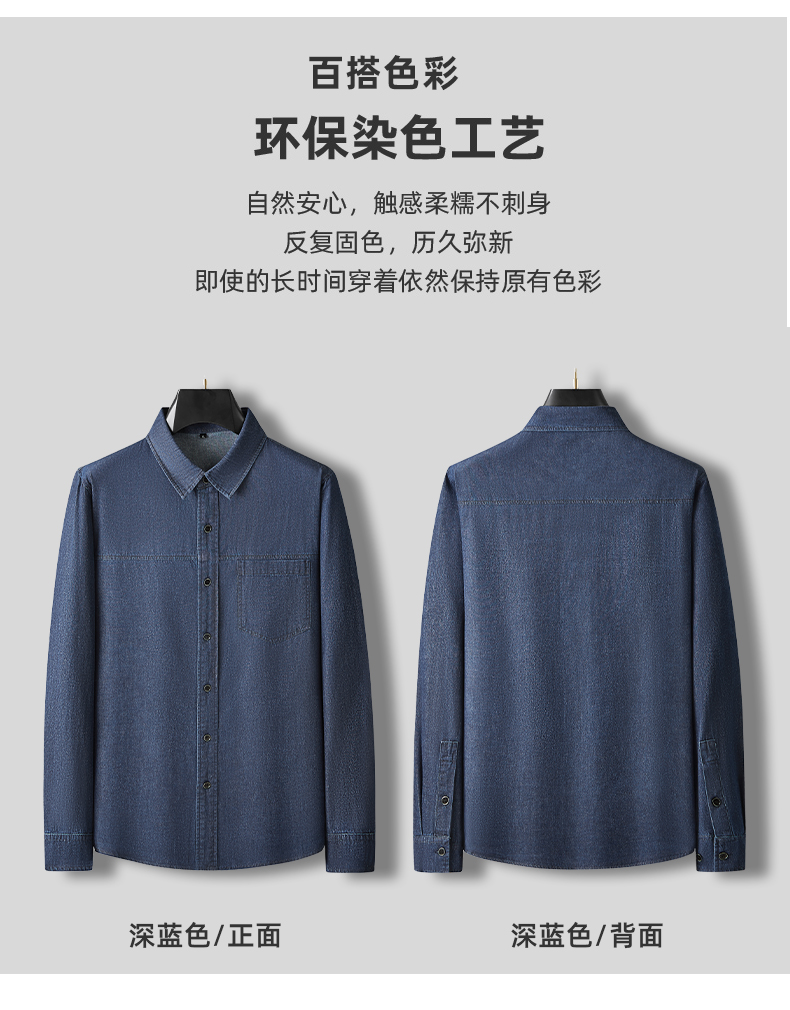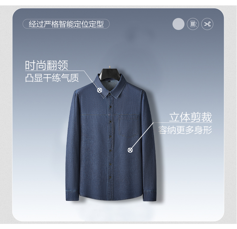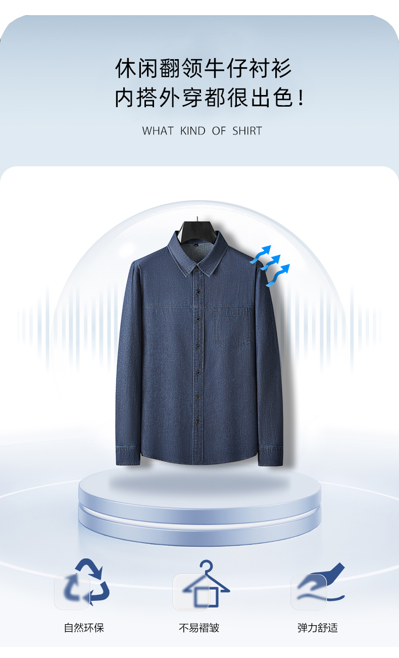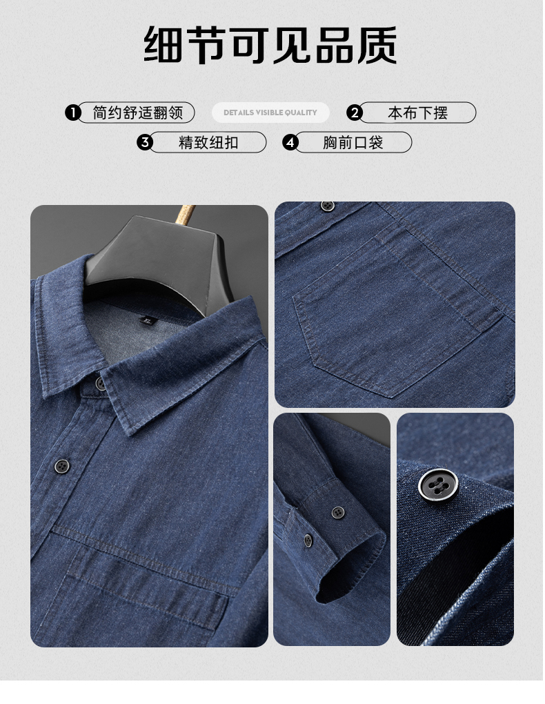 【100%棉】【新款DDA】大依优型大码牛仔长袖衬衫翻领加肥加大肥佬休闲商务宽松透气上衣