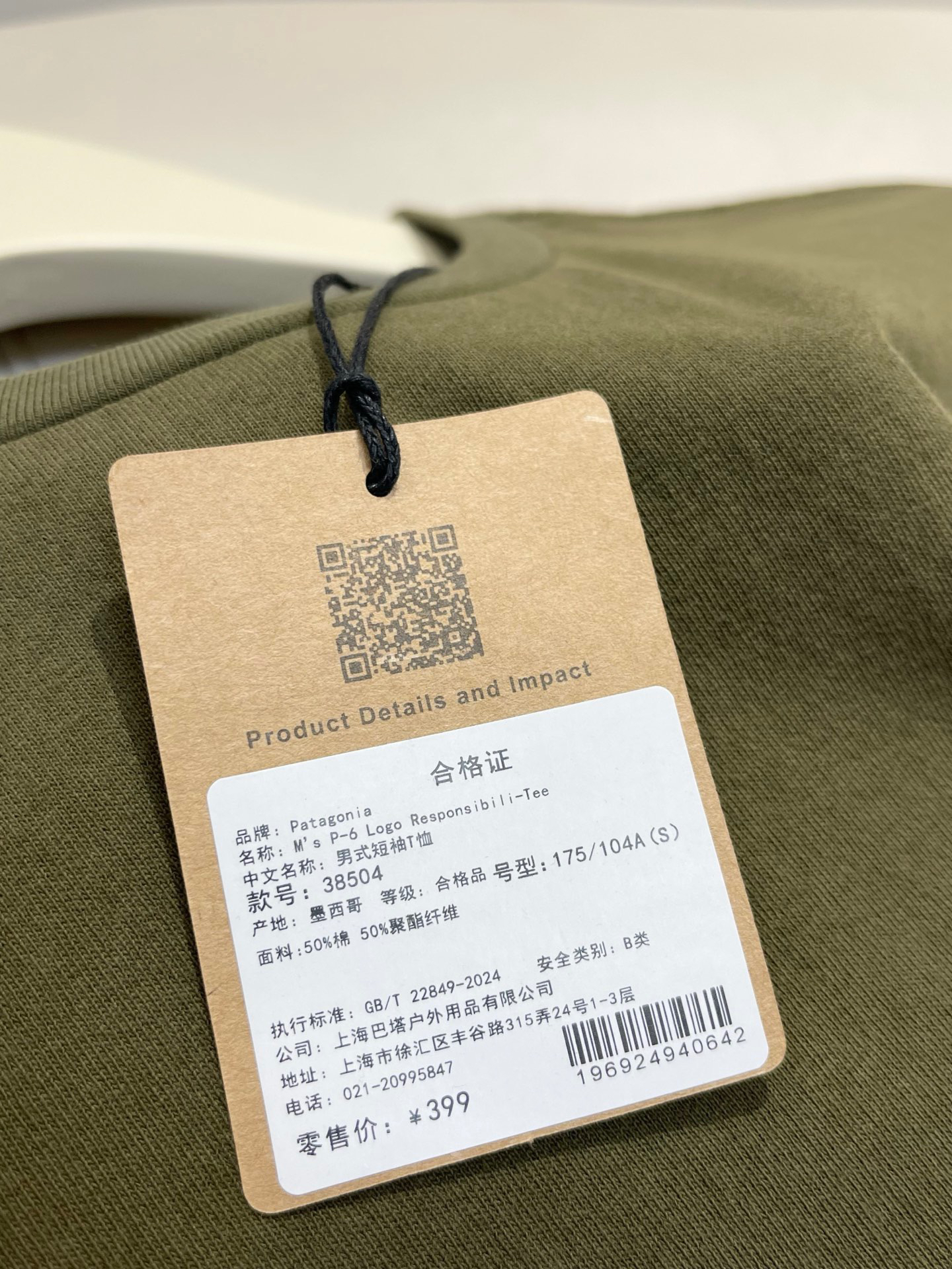 💰89顺丰包邮 越南纯原,独家现货供应!巴塔哥尼亚M‘s P-6 logo Responsibili-Tee,中性Fitz Roy Icon环保面料T恤,官网在售399,越南代工厂订单余裁 所有标牌齐全,自留款,可直接送人!量少 拼手速!