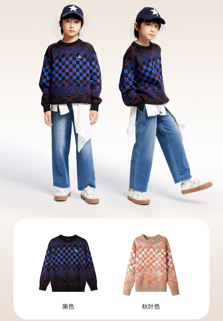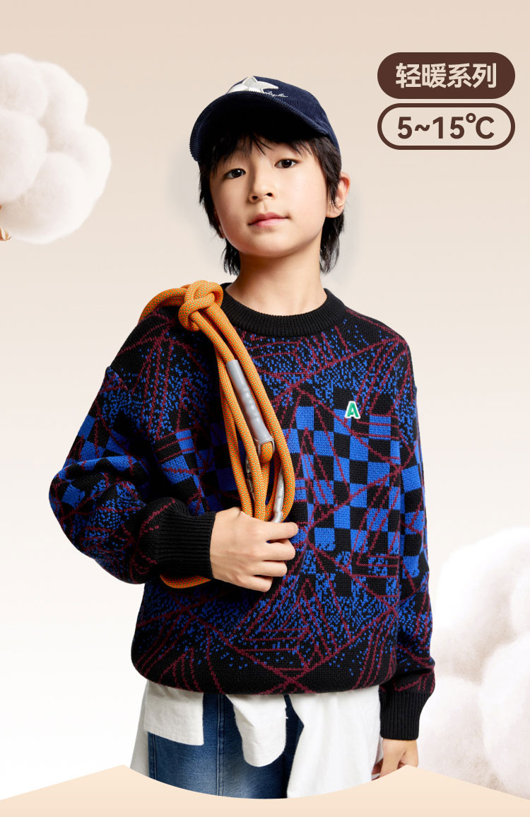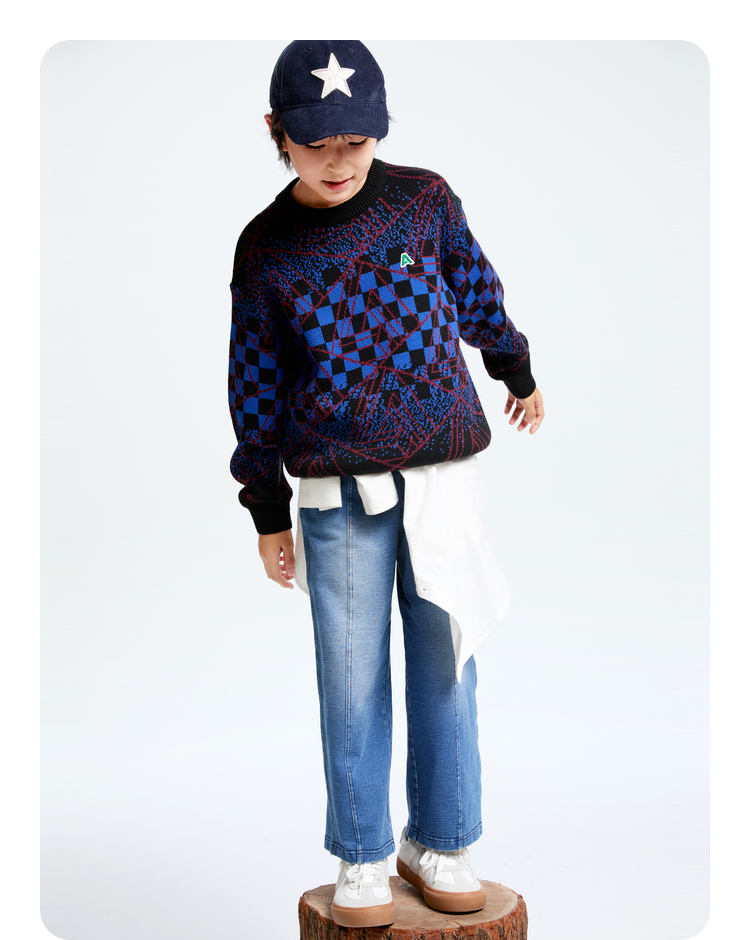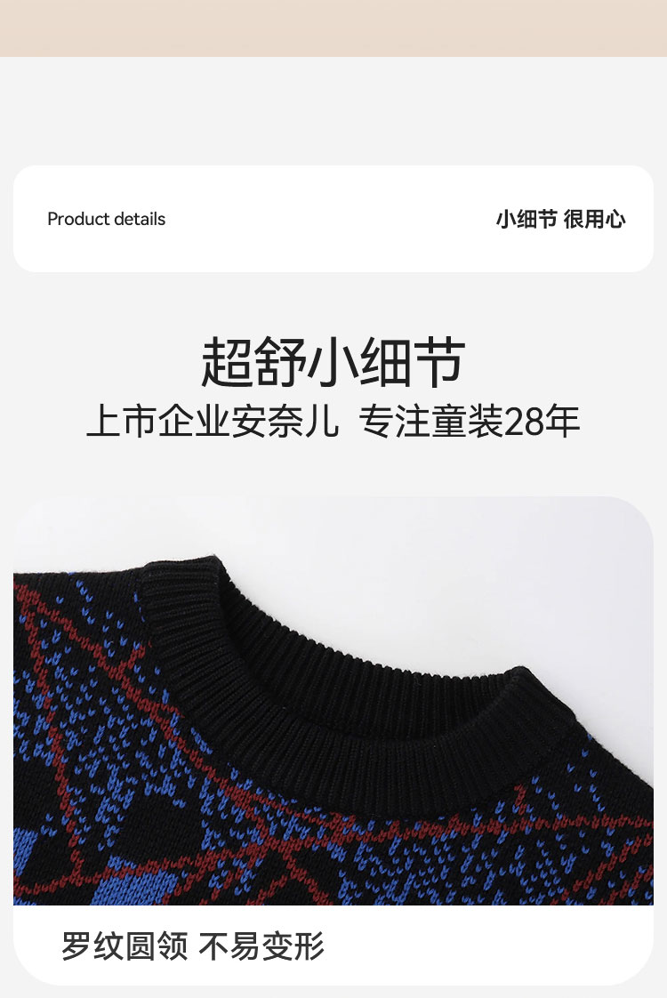 男童圆领长袖针织衫冬季新款安奈儿童装EB444607