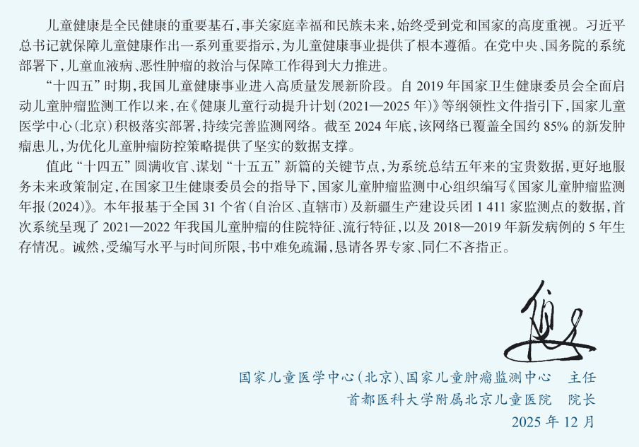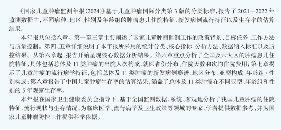 写,是对我国“十四五”期间儿童肿瘤监测工作的里程