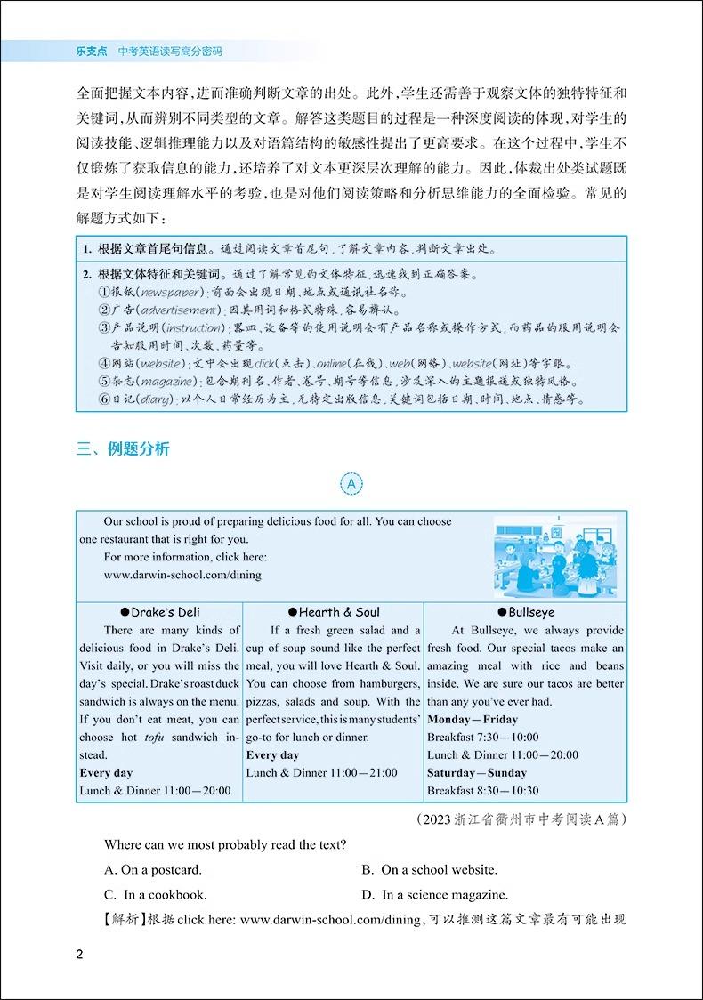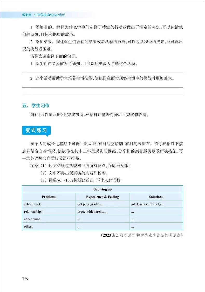 乐支点中考英语读写高分密码全2册浙江省中考统考适用版本通用