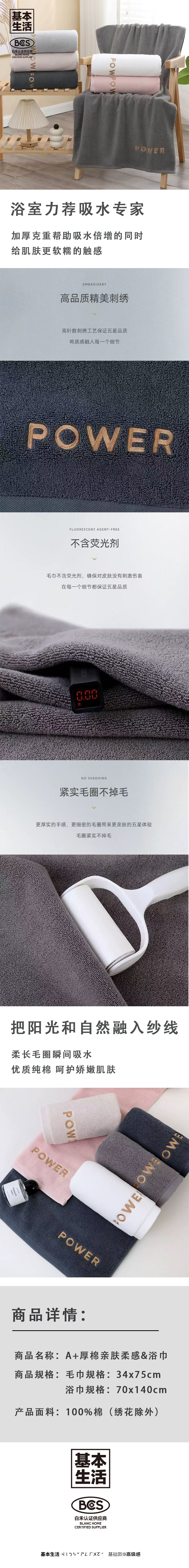 【白禾】A厚棉亲肤柔感毛浴巾