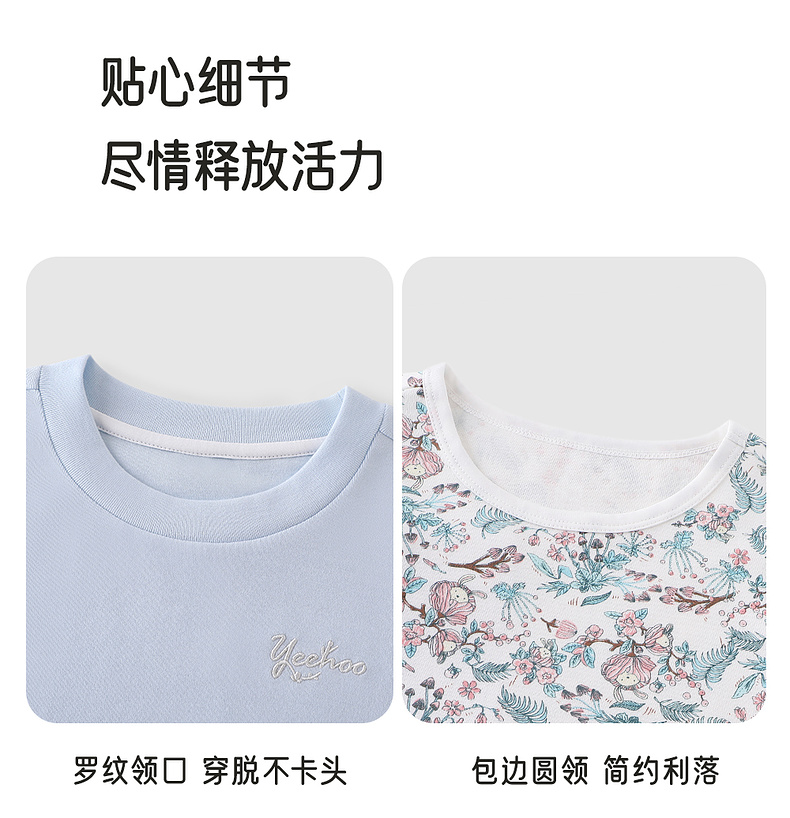 英氏儿童居家服套装长袖长裤套组女童睡衣内衣套装女童舒适亲肤
