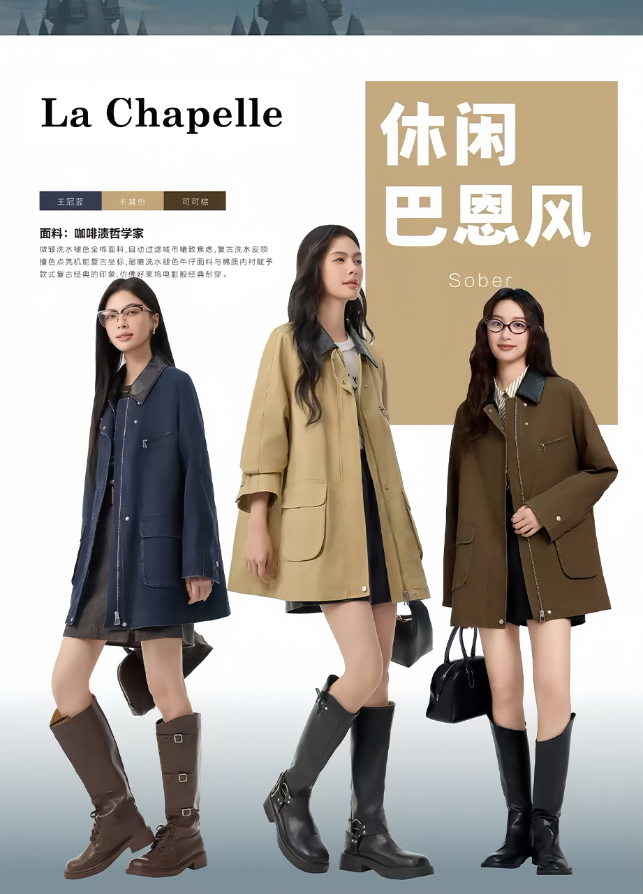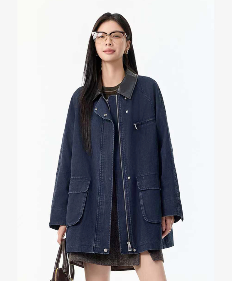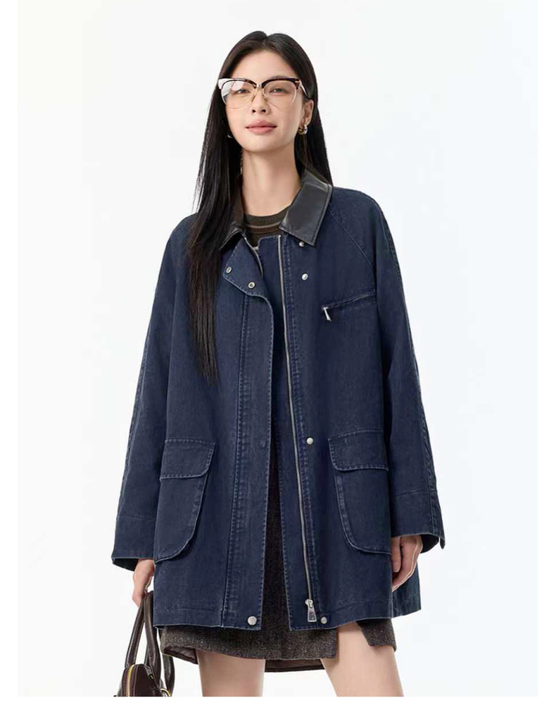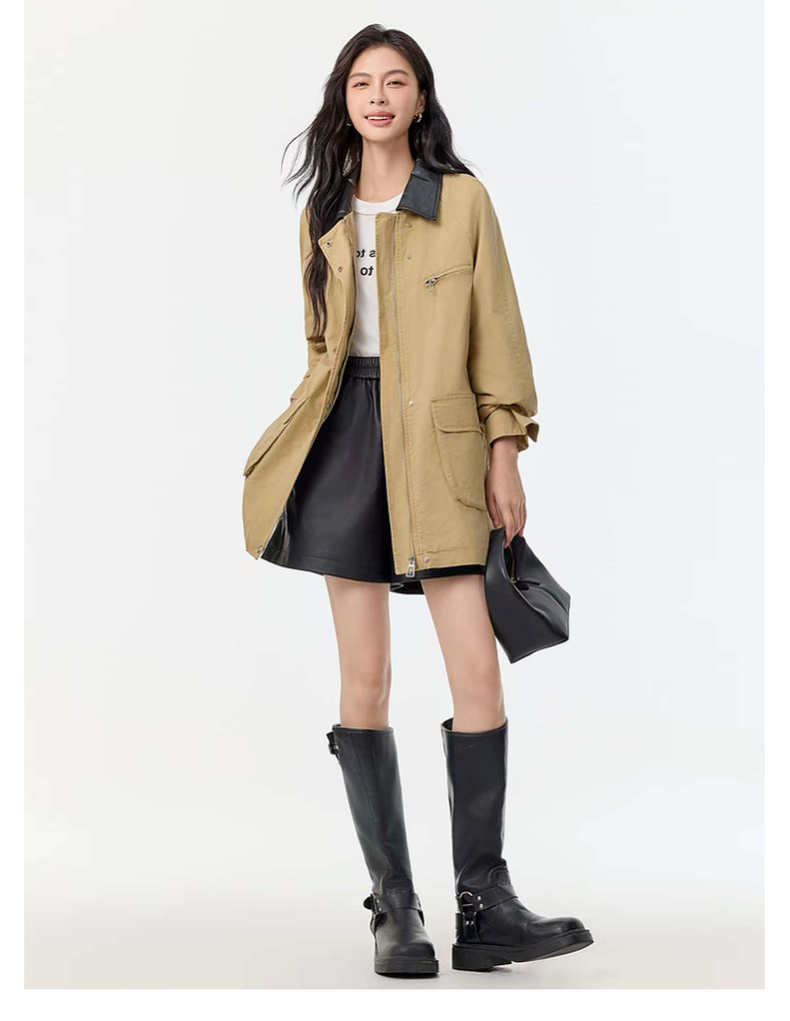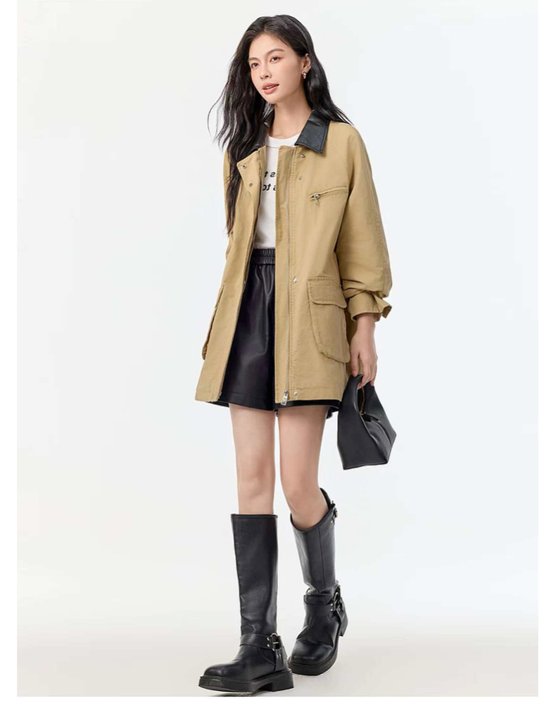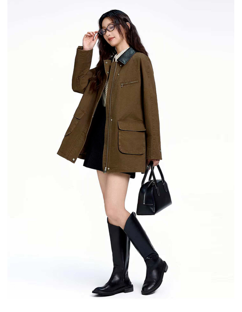天猫同步【官网1k+高端品质 非常重磅】拉拉夏贝尔/La Chapelle皮领工装夹克宽松多口袋美式复古廓形外套
