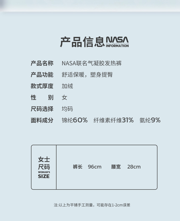【两件立减20】NASA联名铜纤维热力裤 气凝胶发热裤 保暖舒适高弹不紧绷 塑身提臀 完美提拉腿部线条