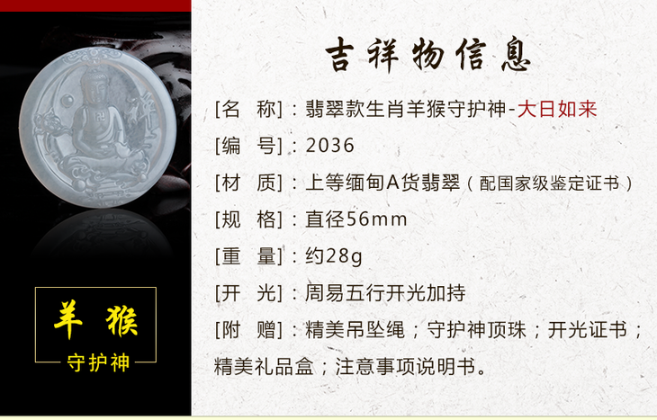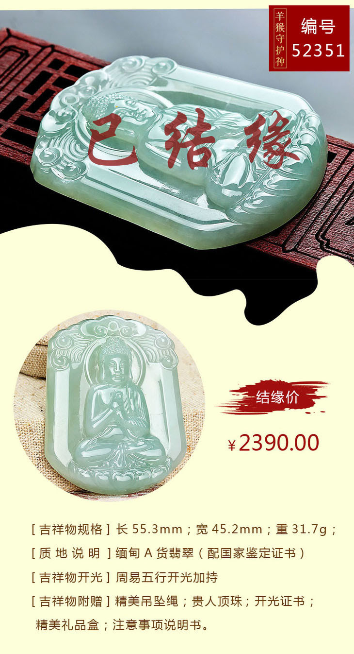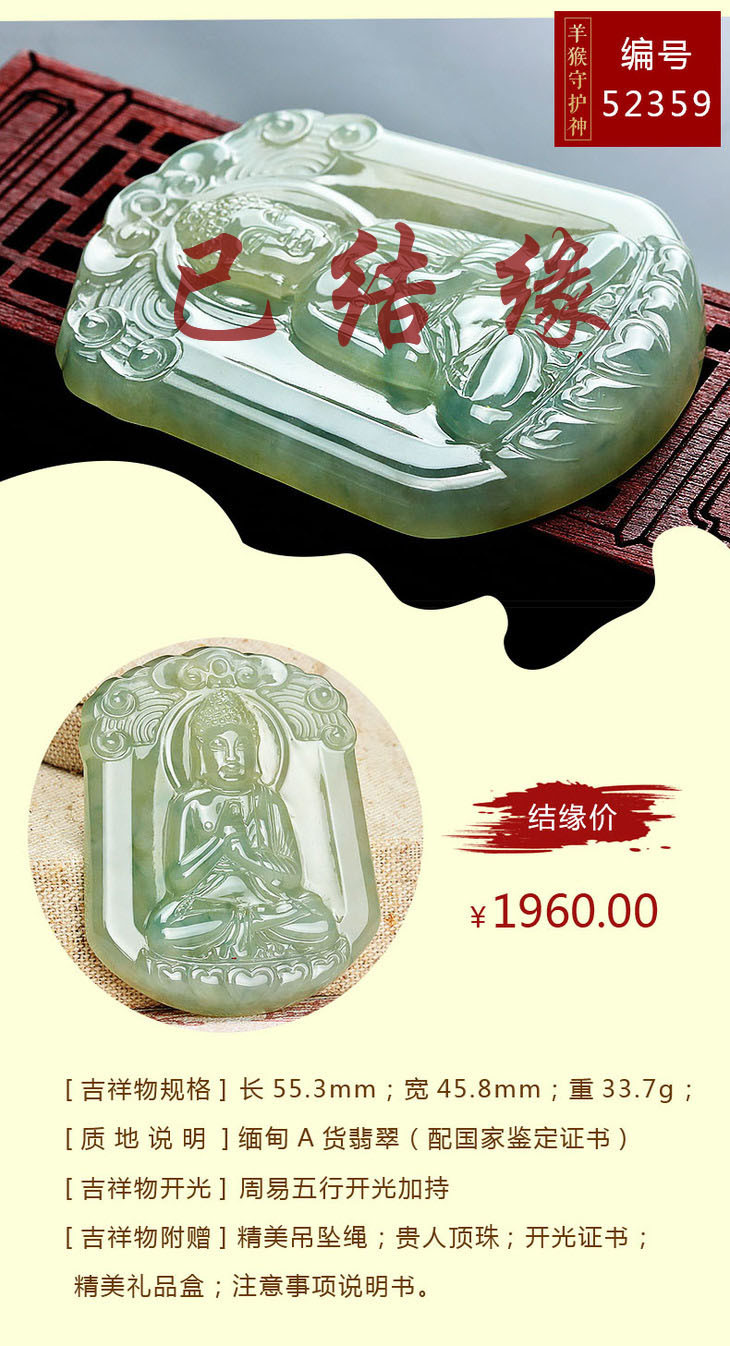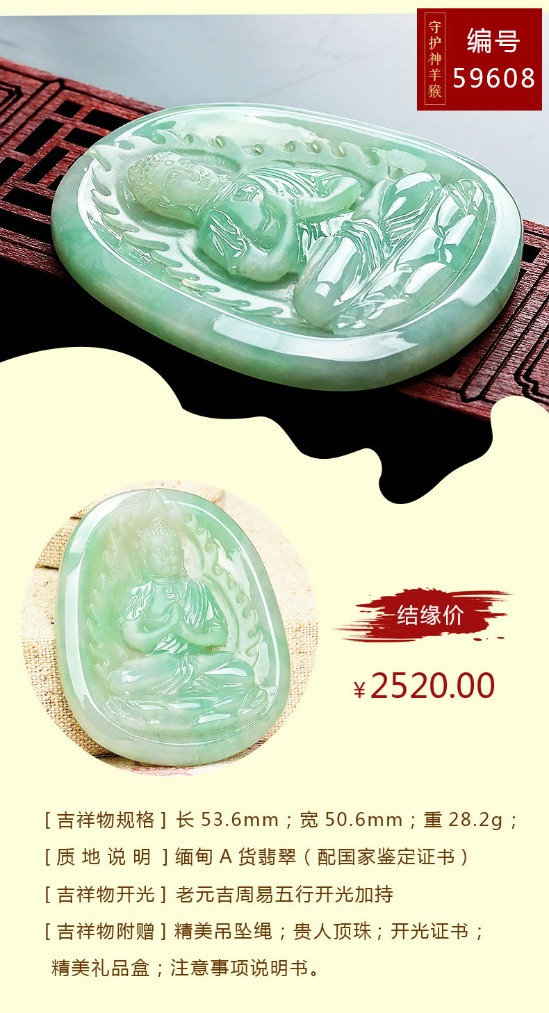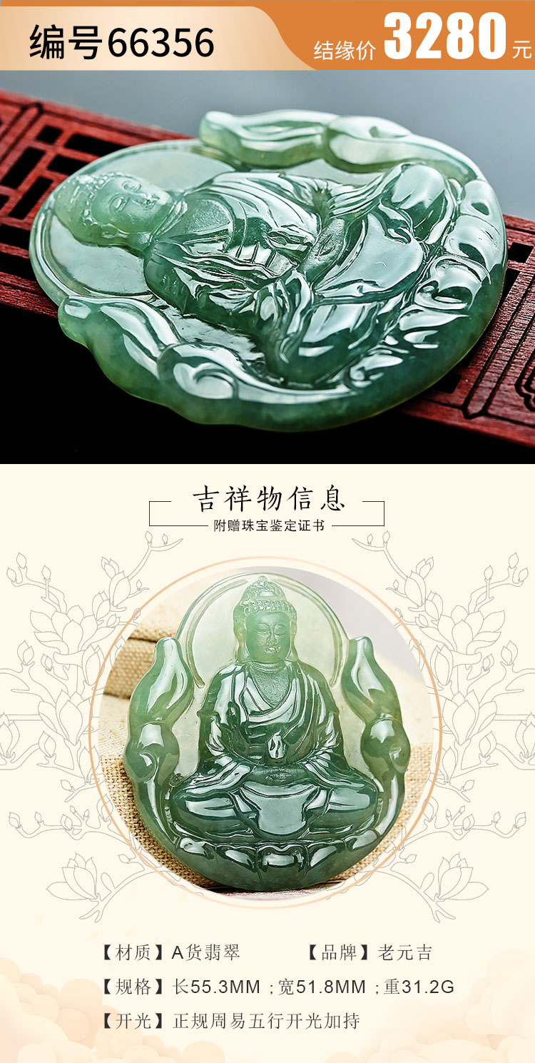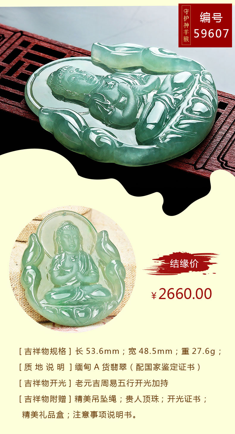 老元吉A货翡翠 羊猴本命佛【大日如来吊坠】男女款挂件玉石吊坠