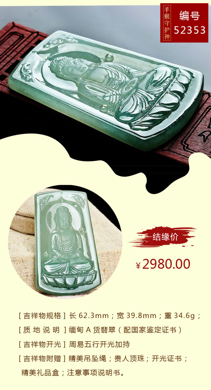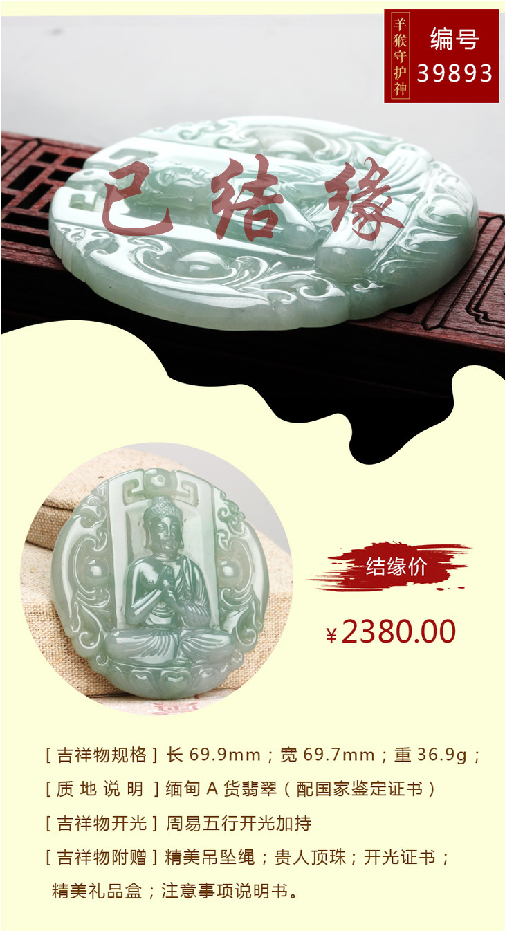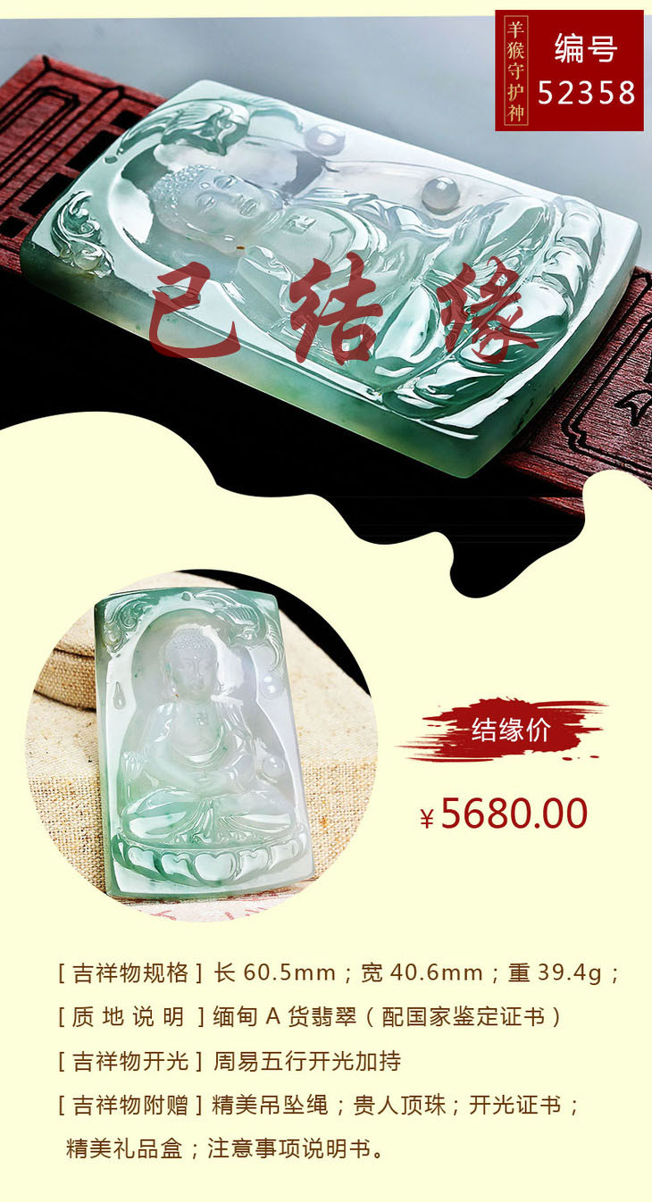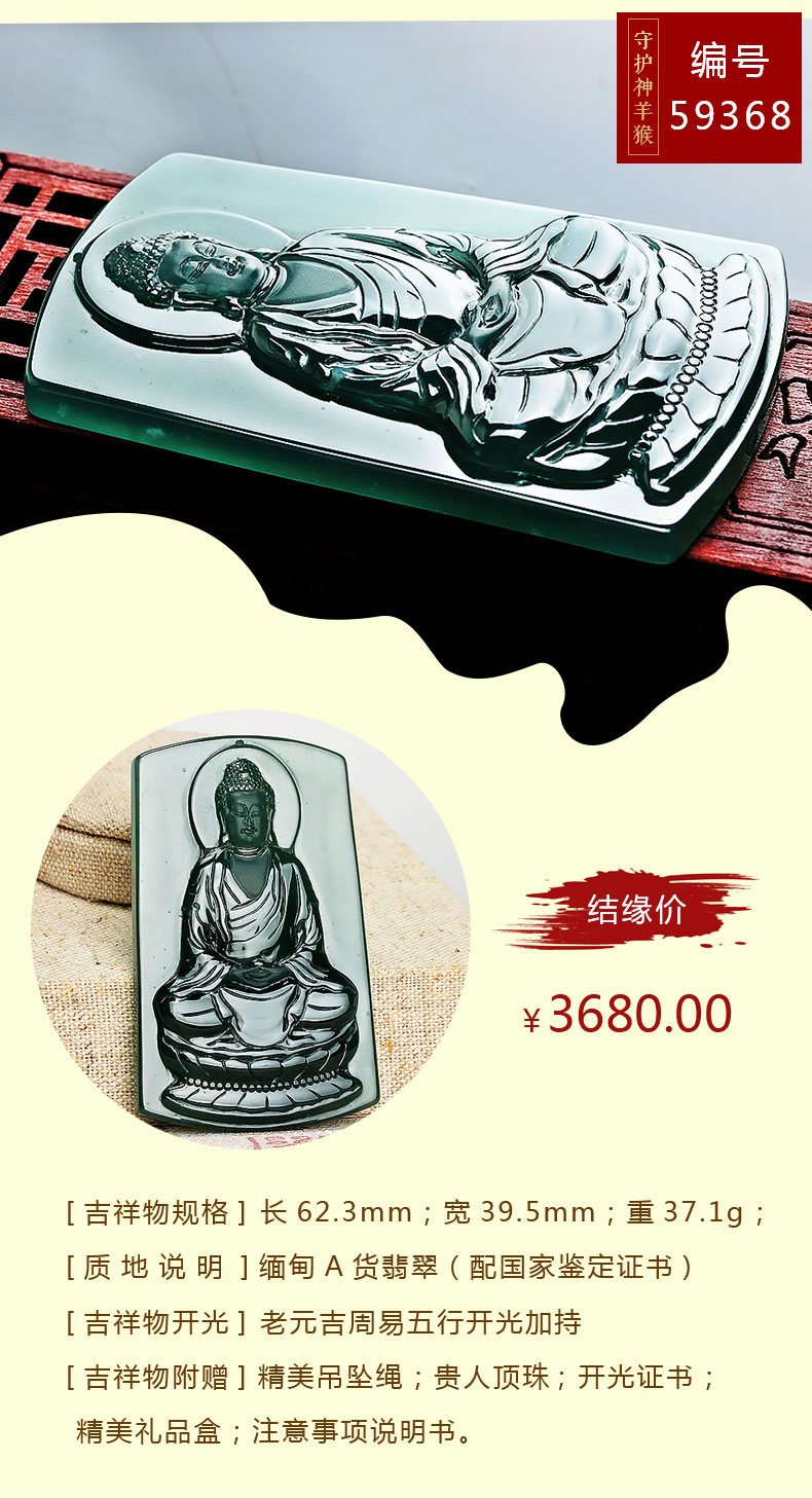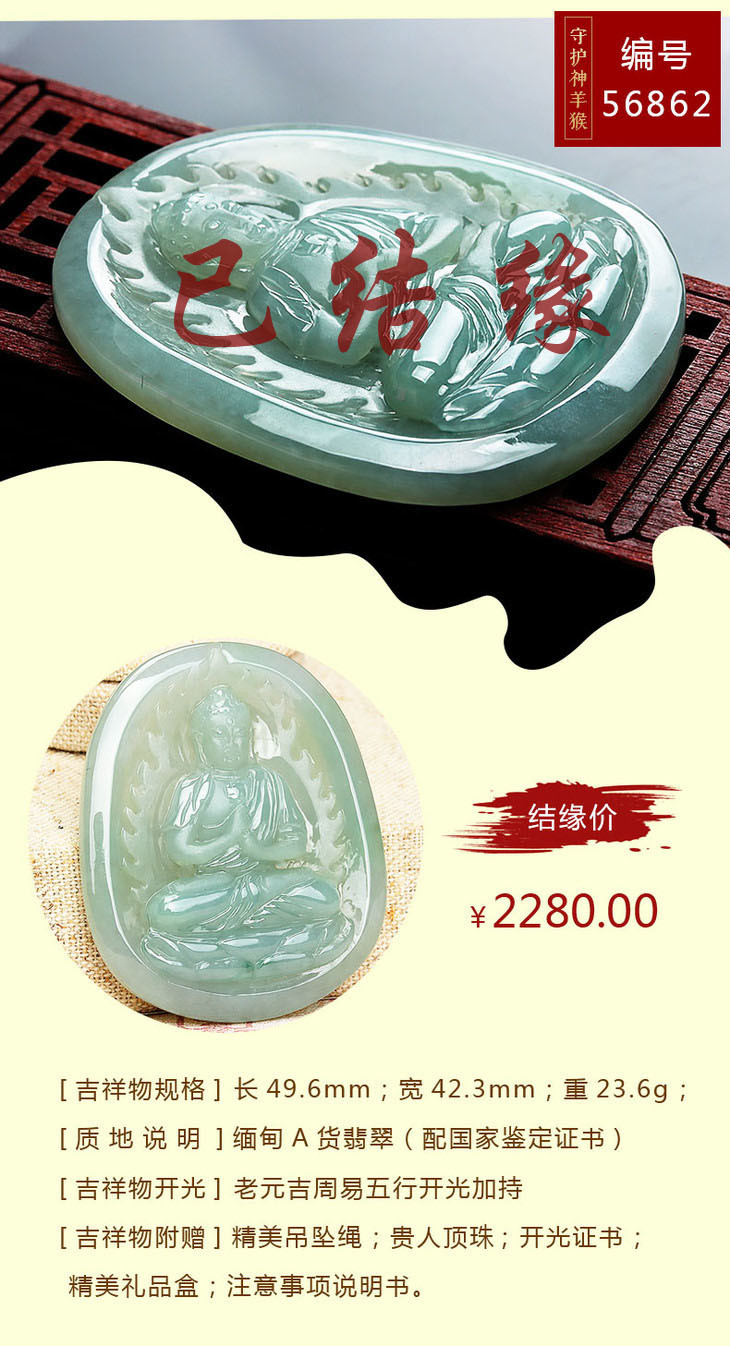 老元吉A货翡翠 羊猴本命佛【大日如来吊坠】男女款挂件玉石吊坠