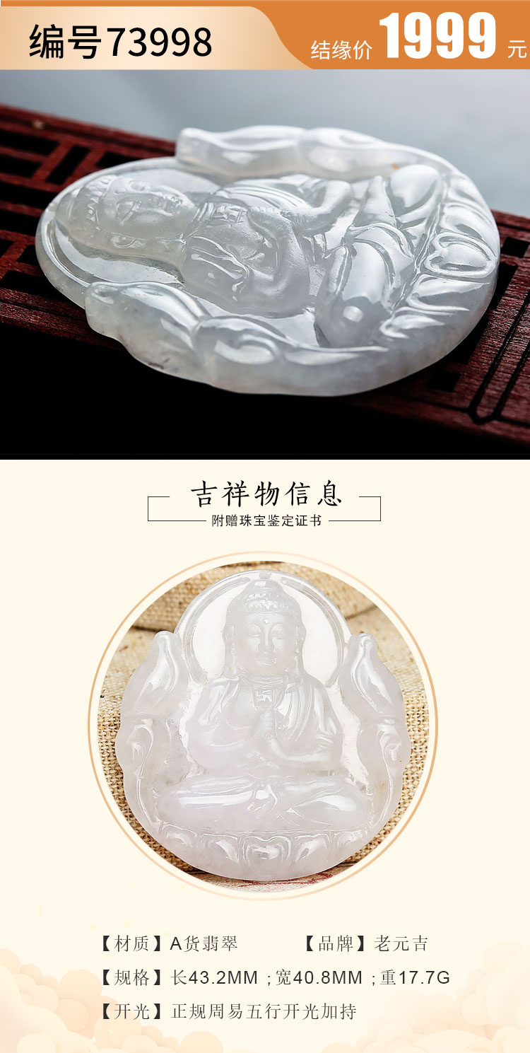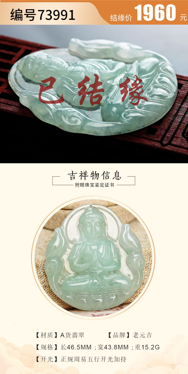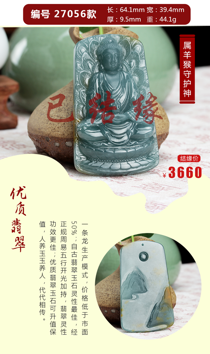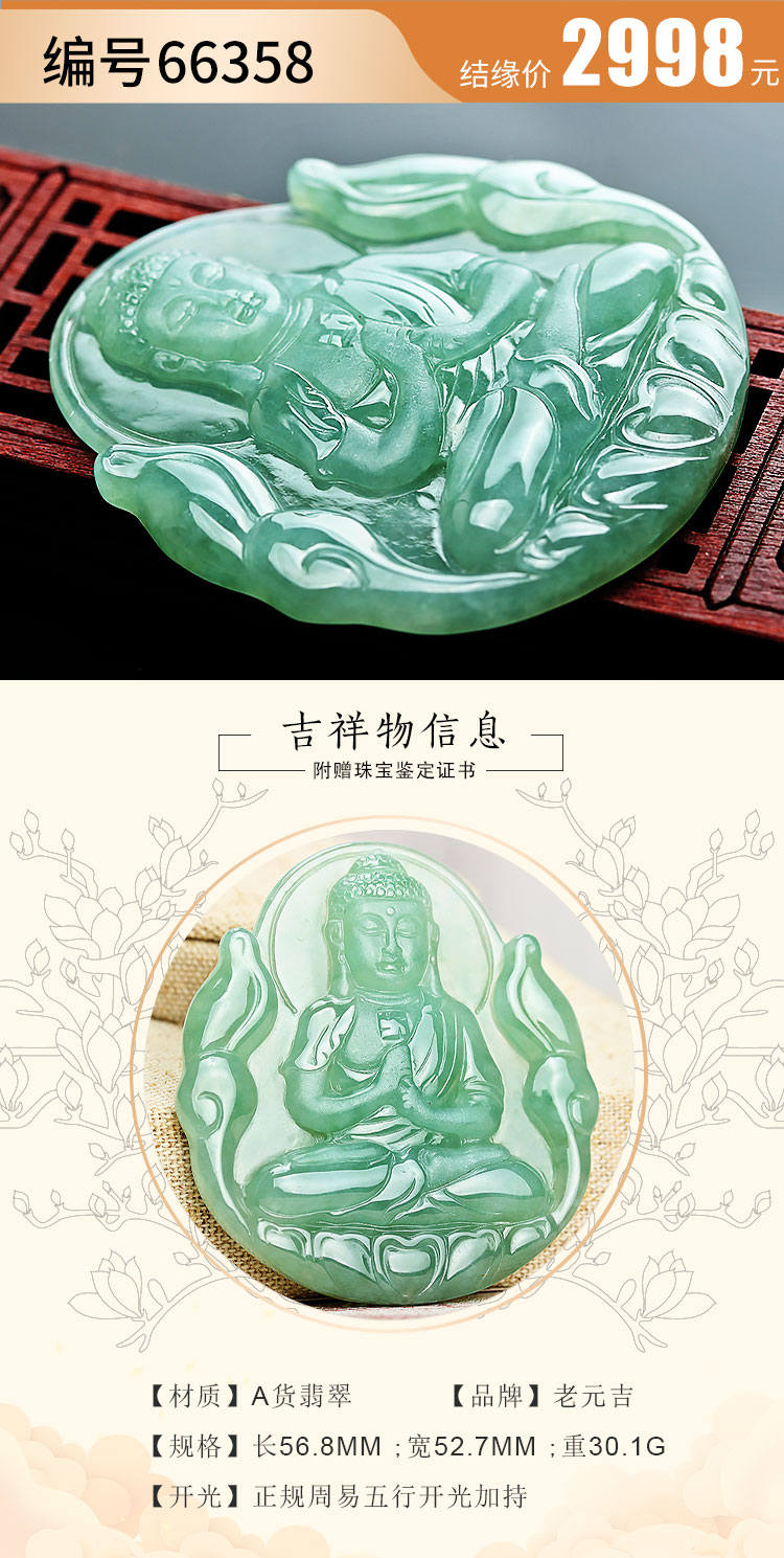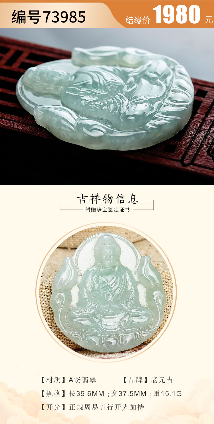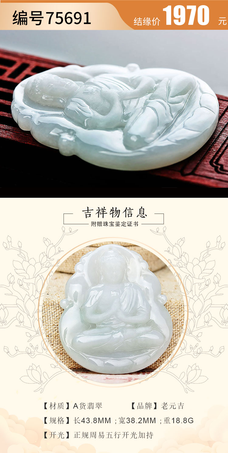 老元吉A货翡翠 羊猴本命佛【大日如来吊坠】男女款挂件玉石吊坠