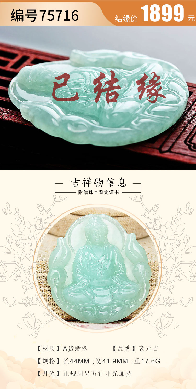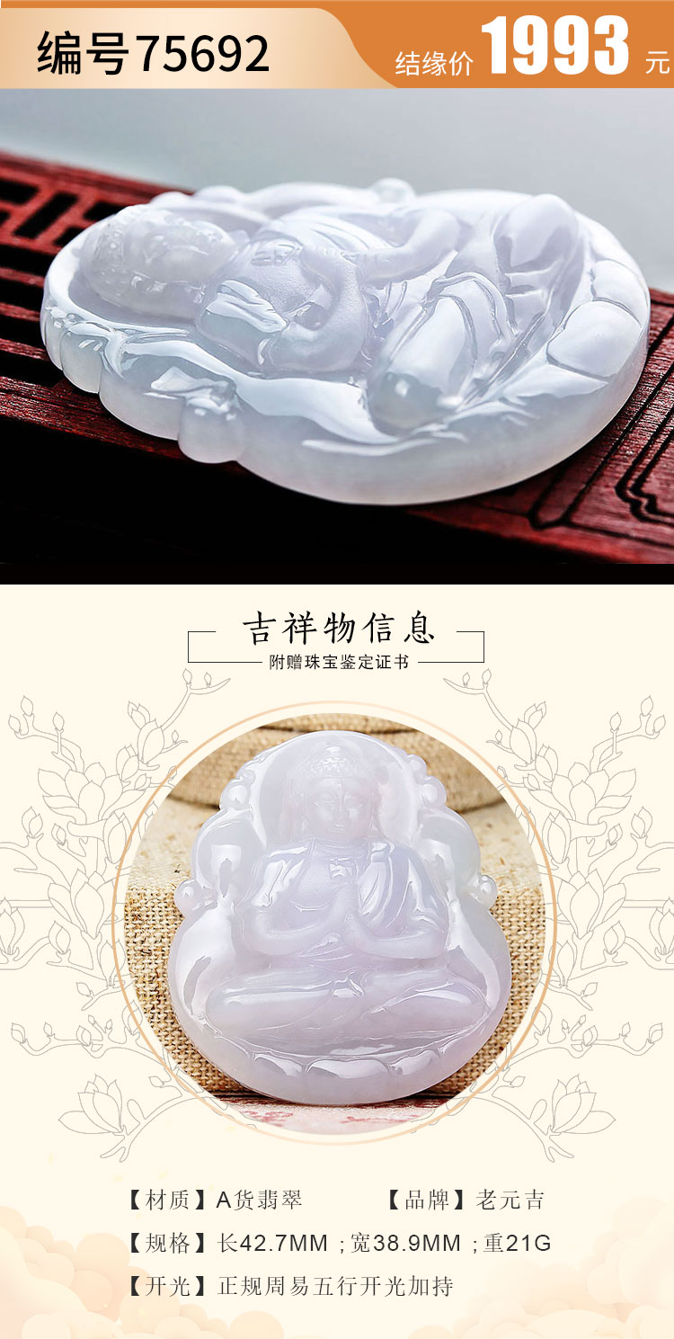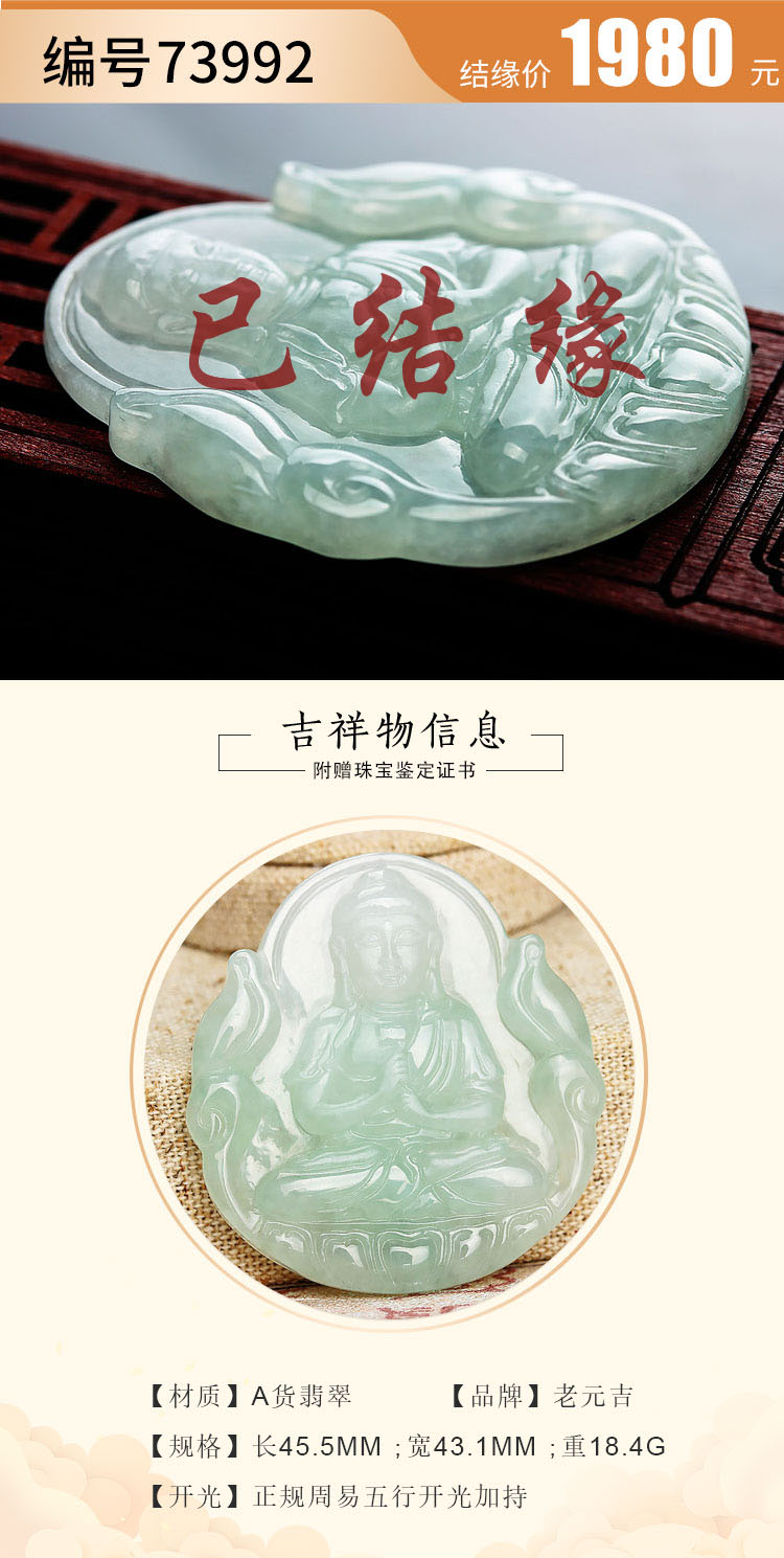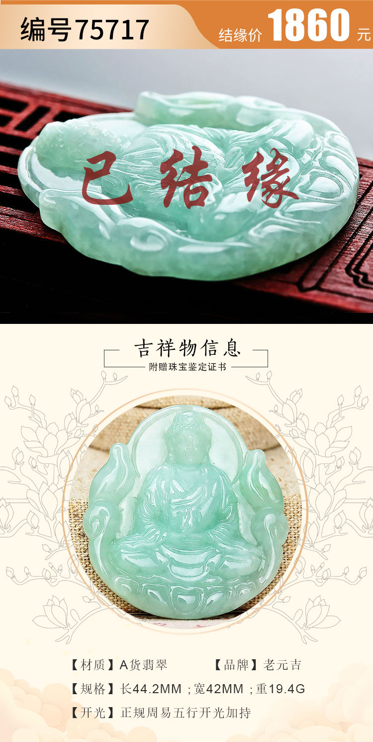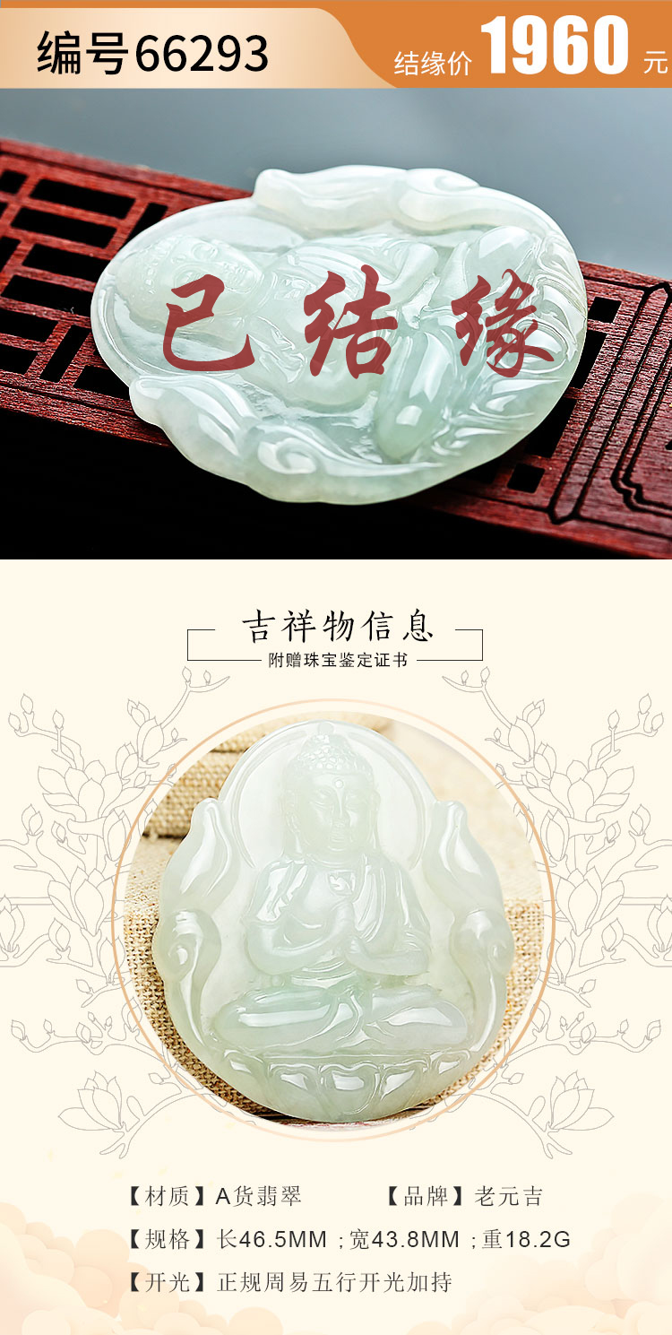 老元吉A货翡翠 羊猴本命佛【大日如来吊坠】男女款挂件玉石吊坠