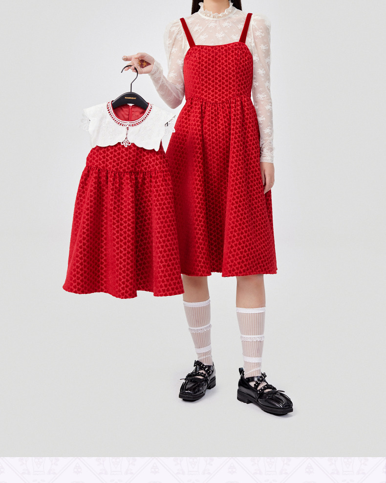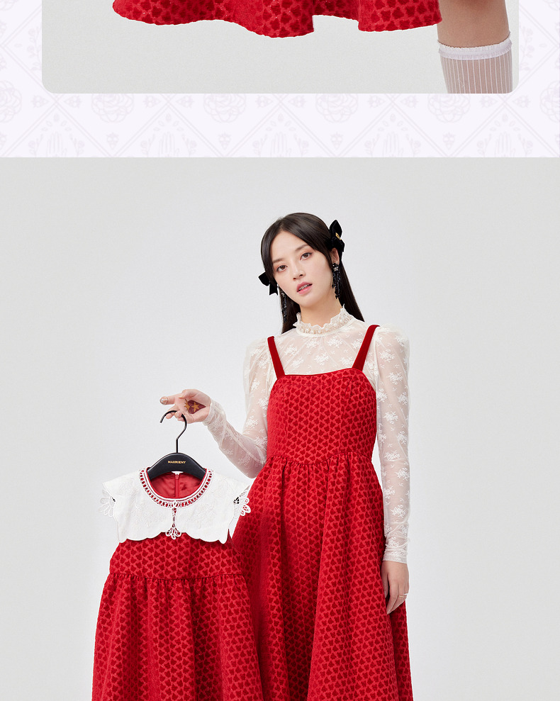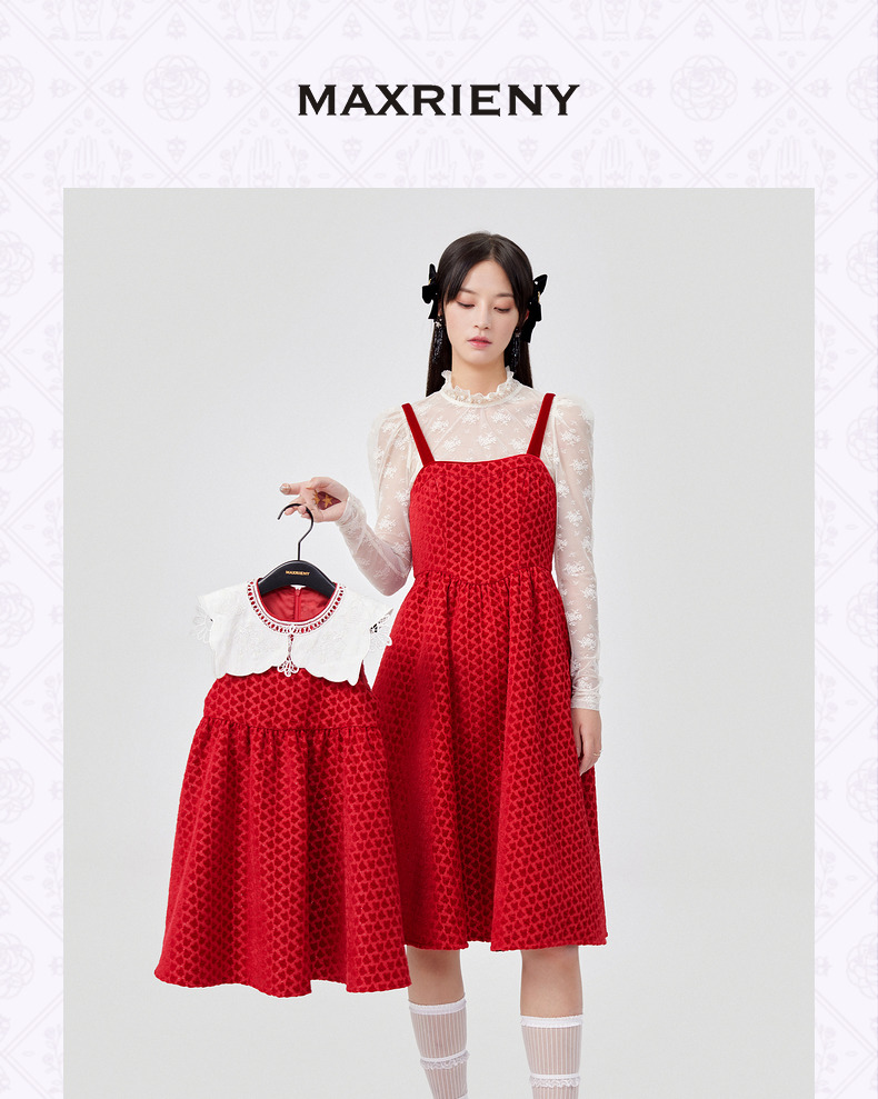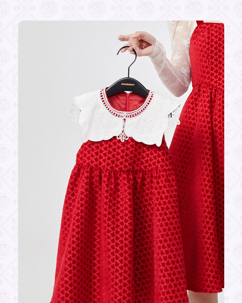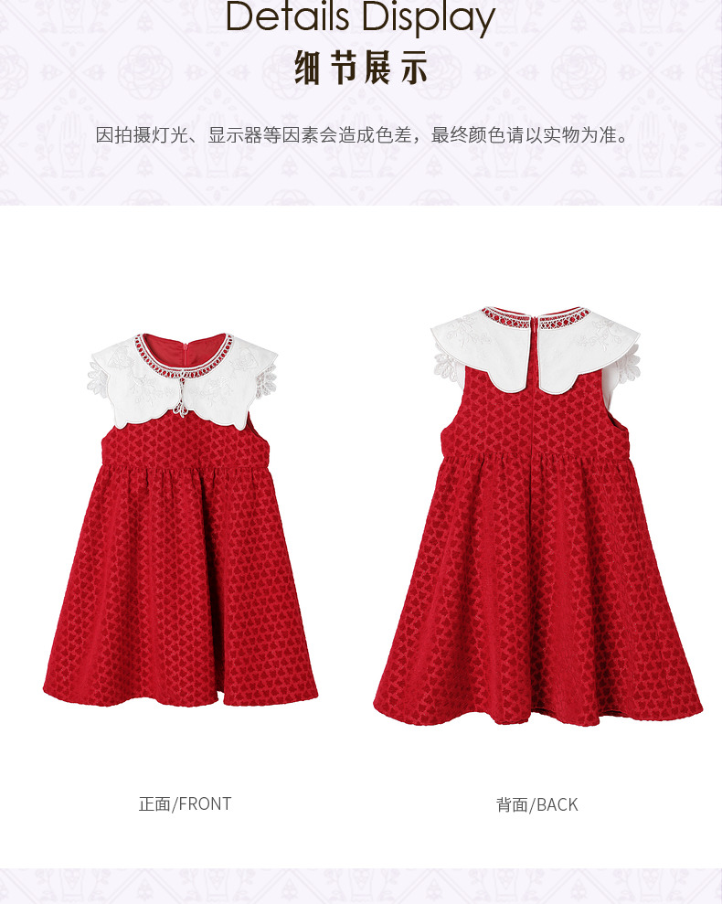 MAXRIENY女童装春款新年红无袖连衣裙翻领娃娃裙(货号:MK87DR001)