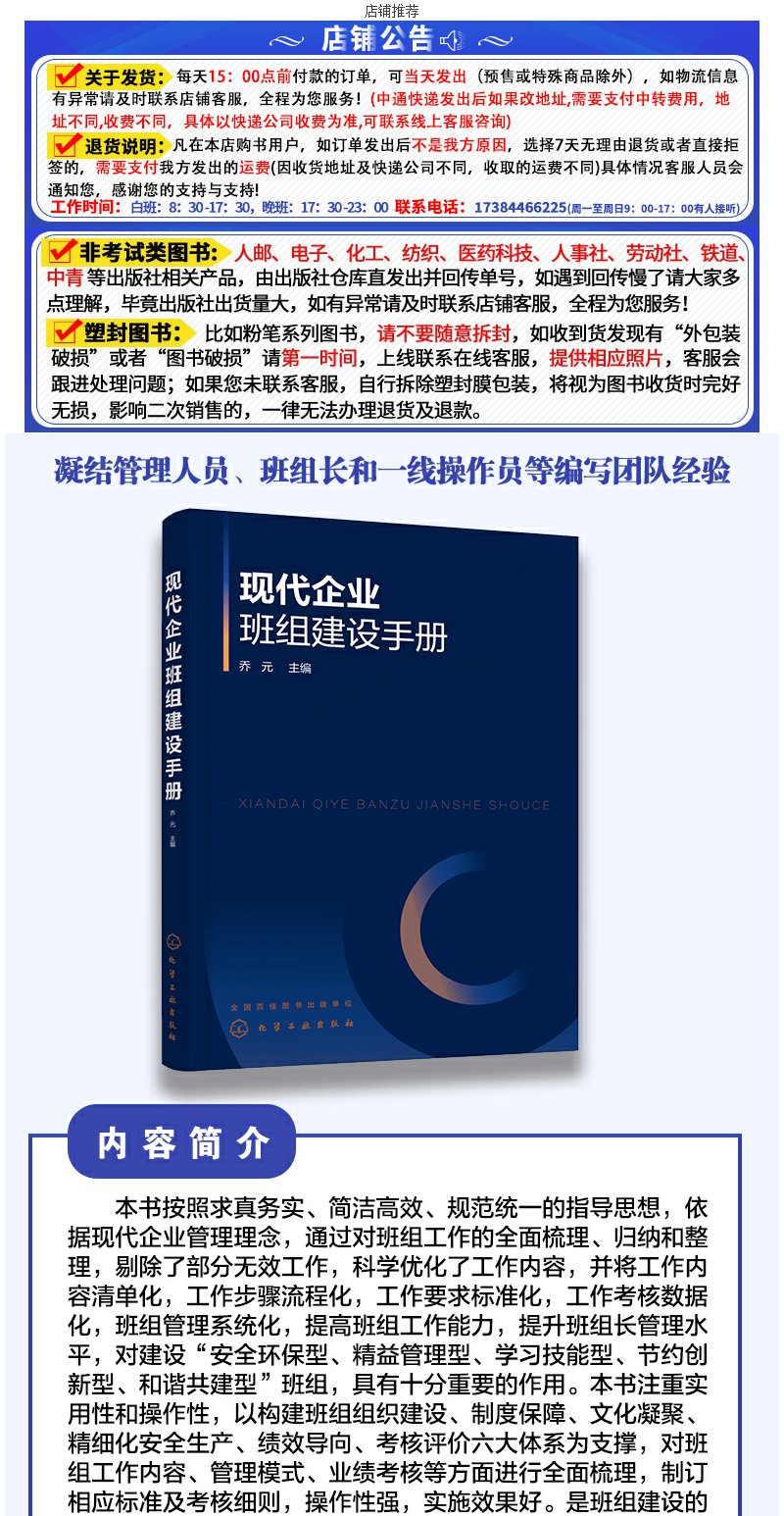 现代企业班组建设手册 国家能源集团企业建设手册系列 打造现代化先进工作团队应用书籍 煤化工 石油化工等企业员工培训参考书籍 化学工业出版社 9787122402370