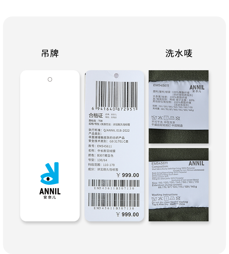 【羽绒填充/内里加绒双重暖】男女童中长款羽绒服冬季新款安奈儿童装EM545611