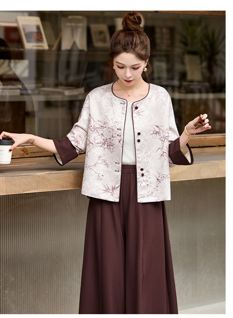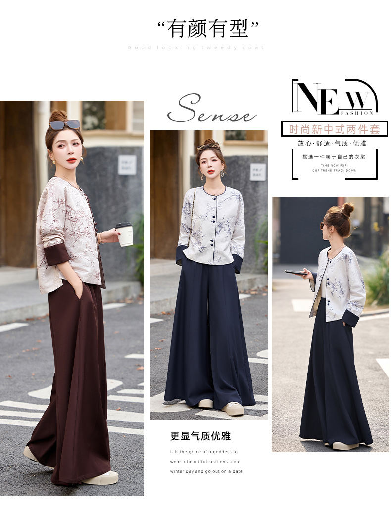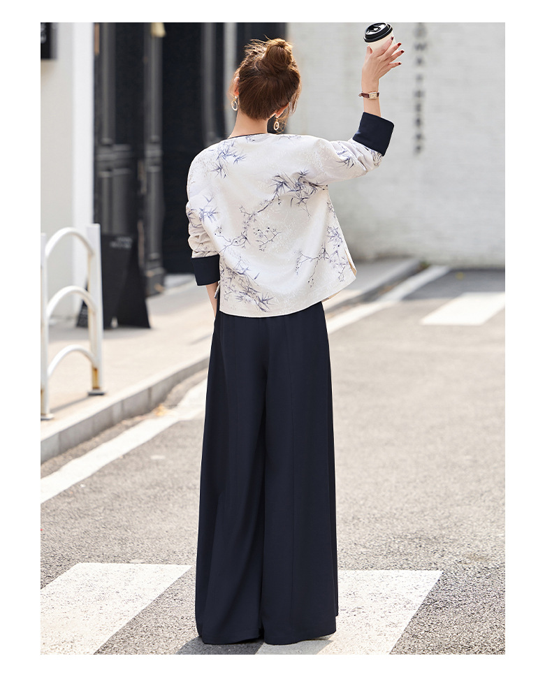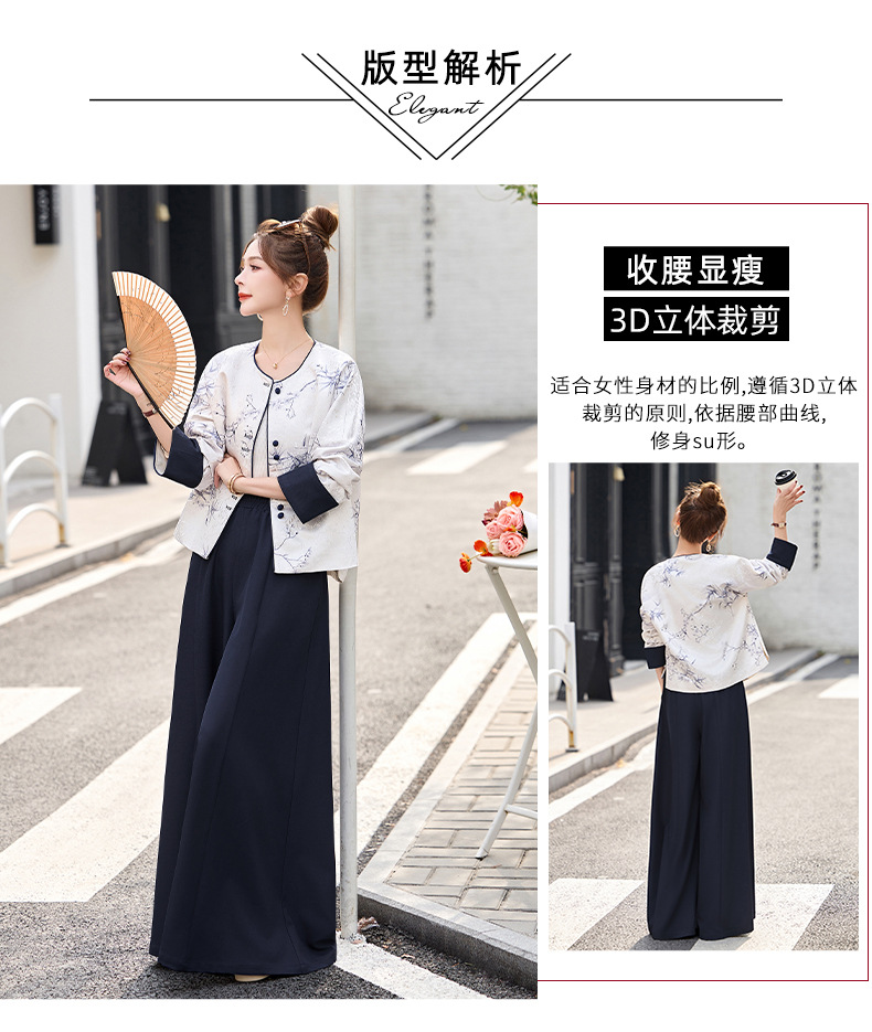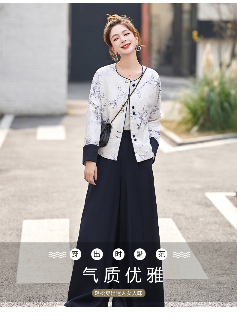 丁摩 时尚休闲新中式国风套装女春秋短外套阔腿裤两件套5ZF-2511