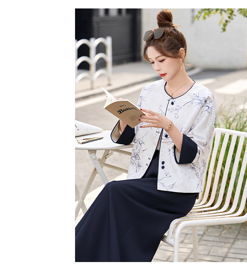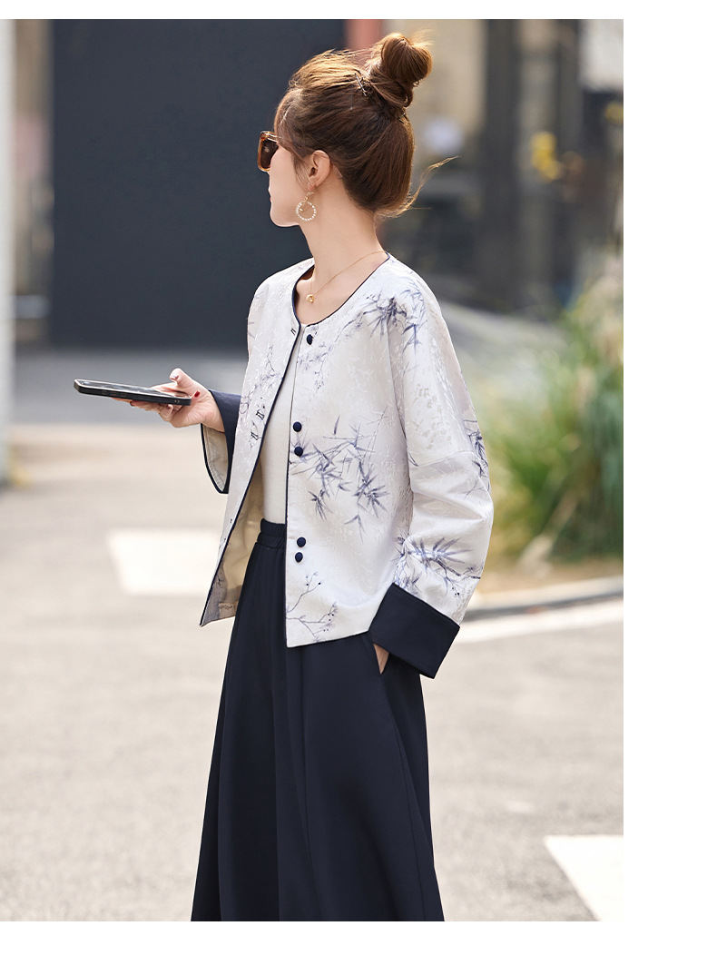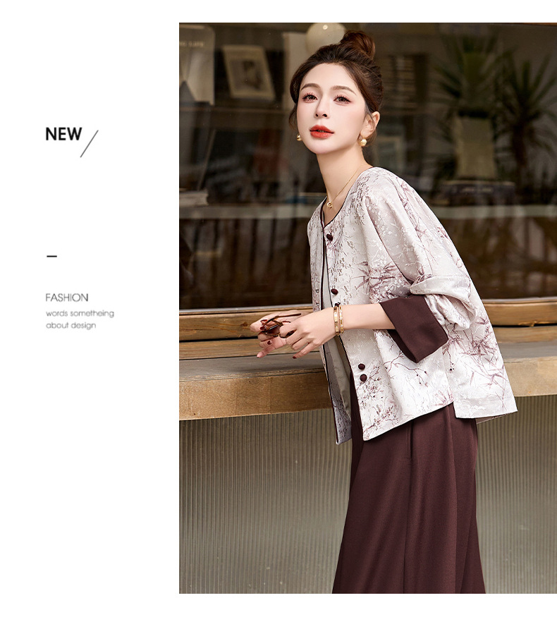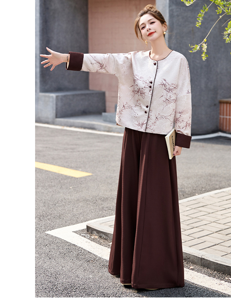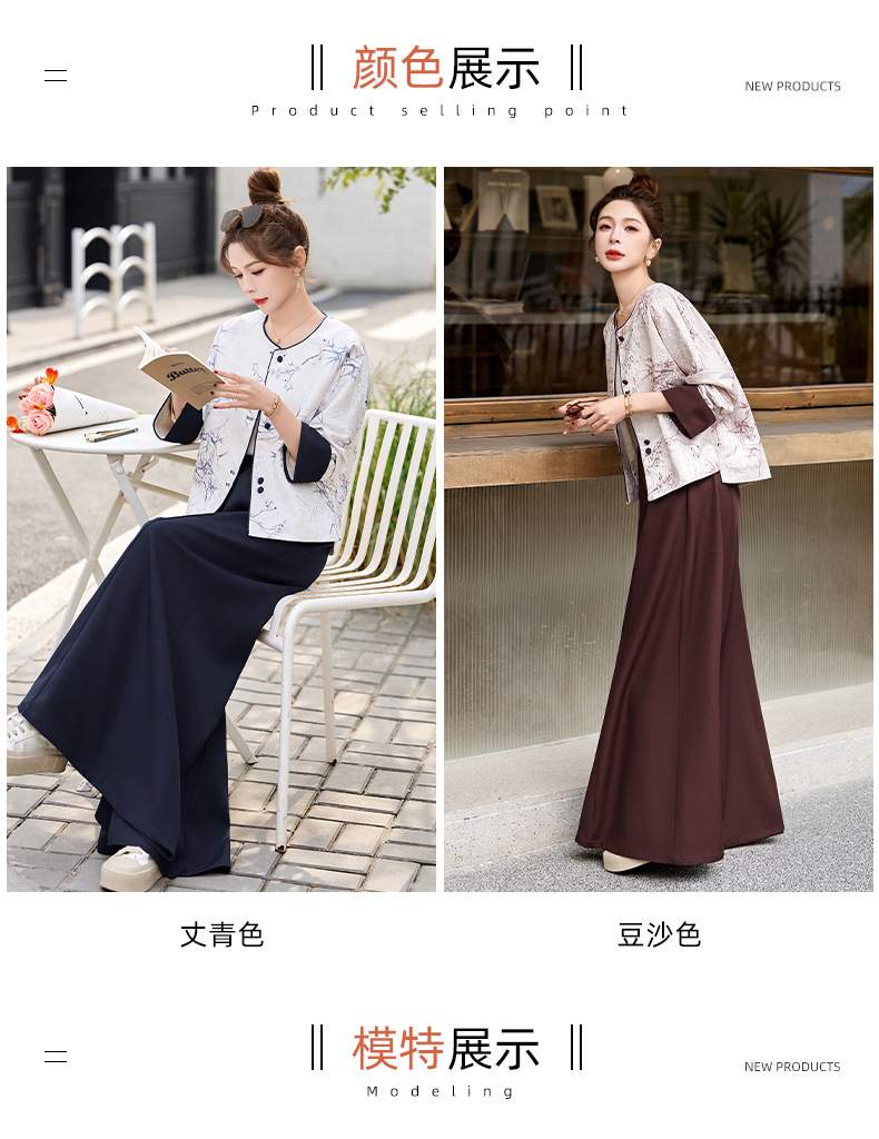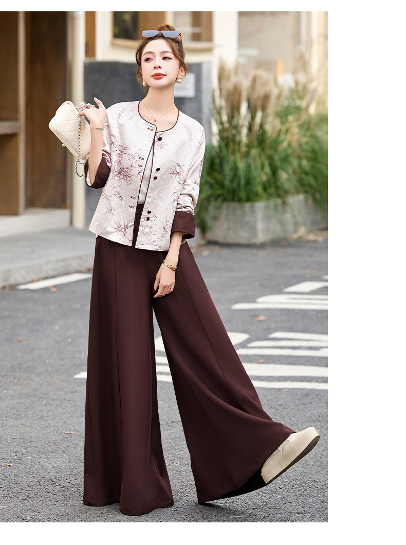 丁摩 时尚休闲新中式国风套装女春秋短外套阔腿裤两件套5ZF-2511