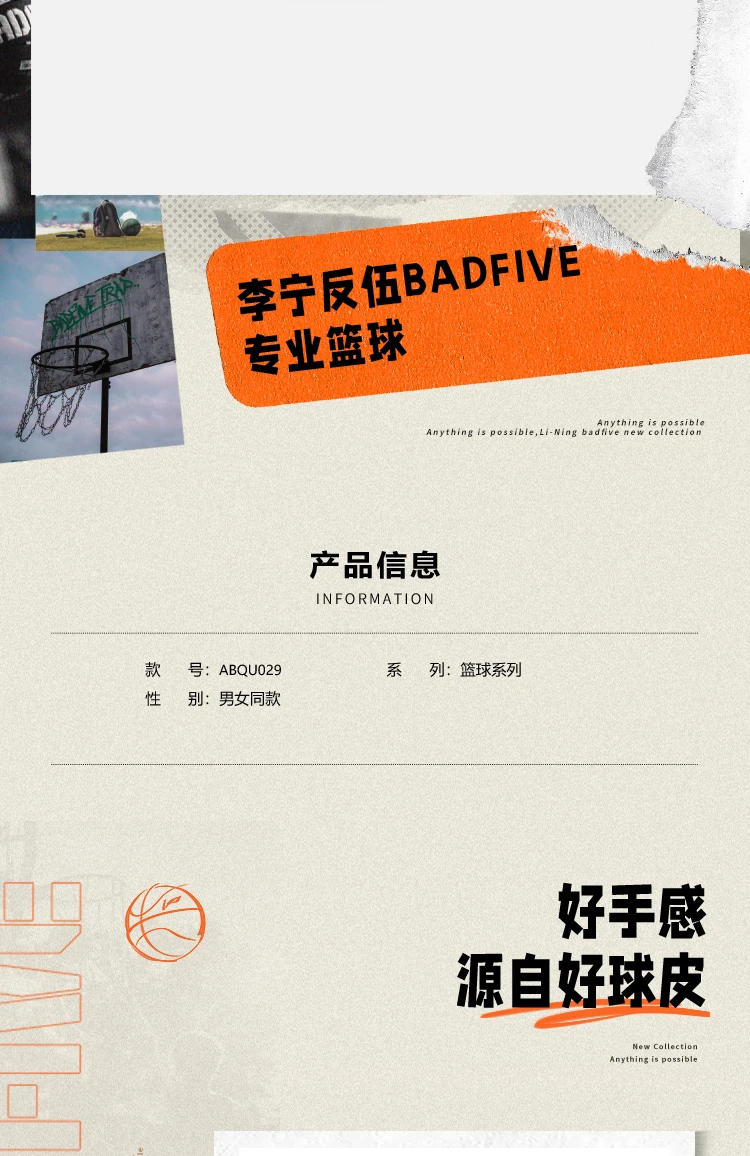 李宁反伍BADFIVE B0000精英时尚篮球7号球ABQU029