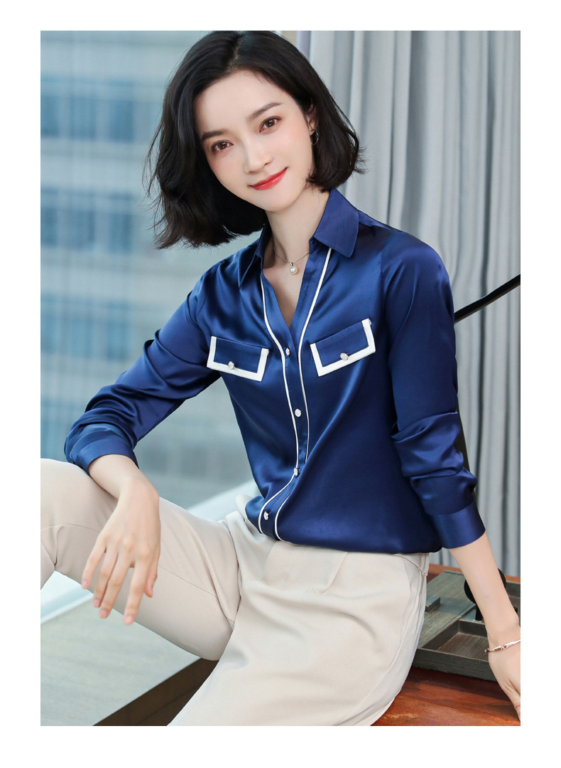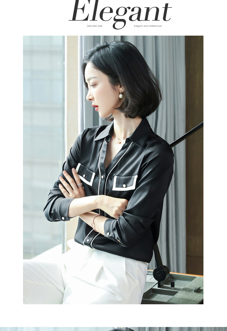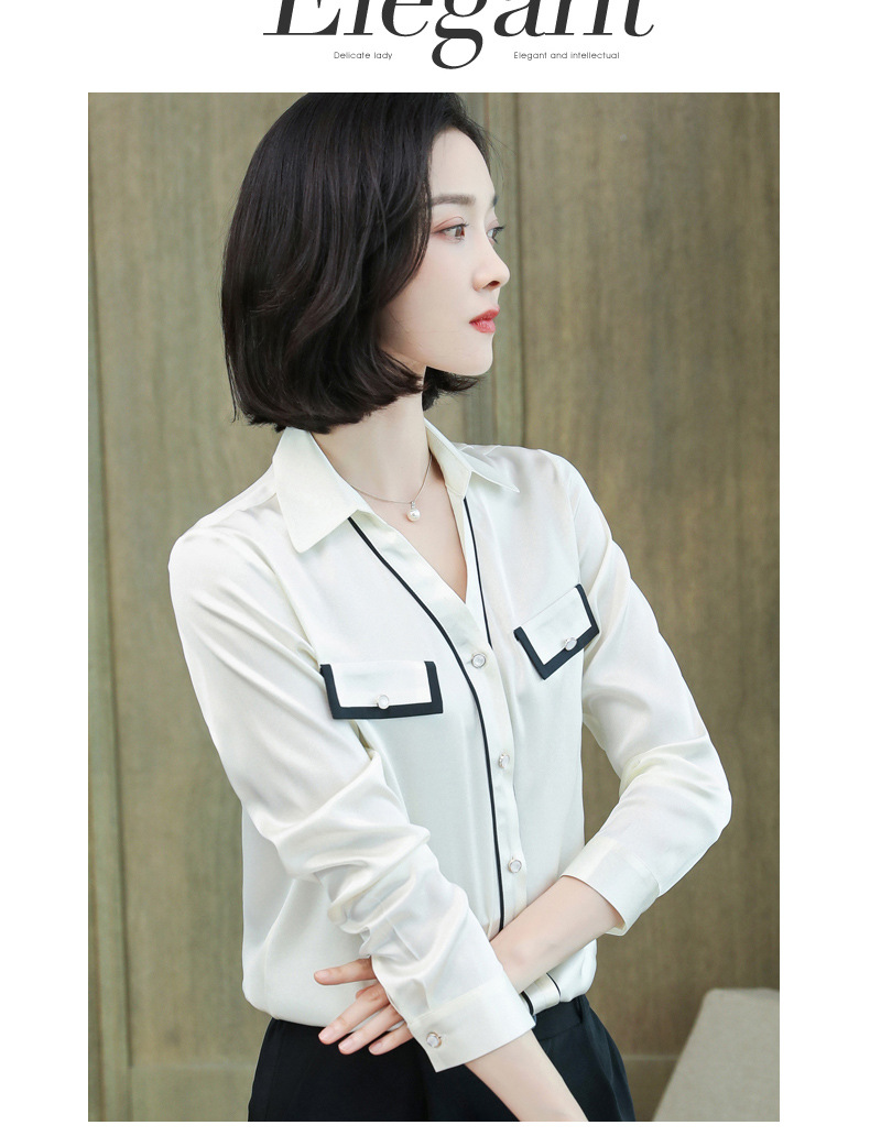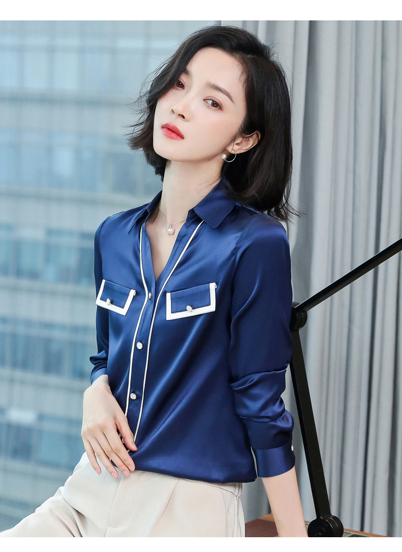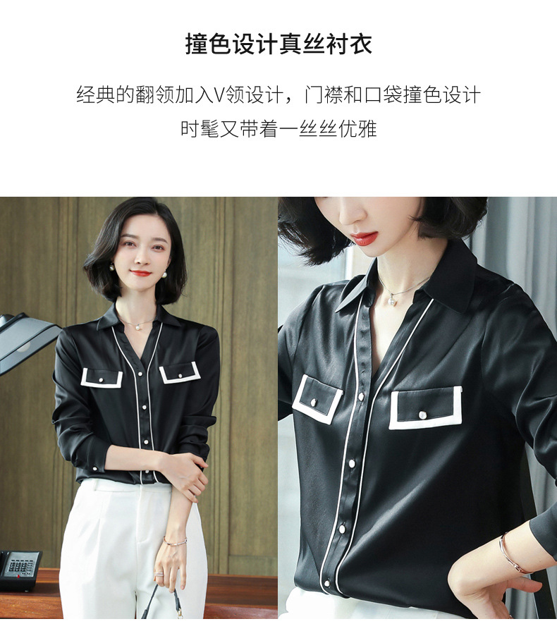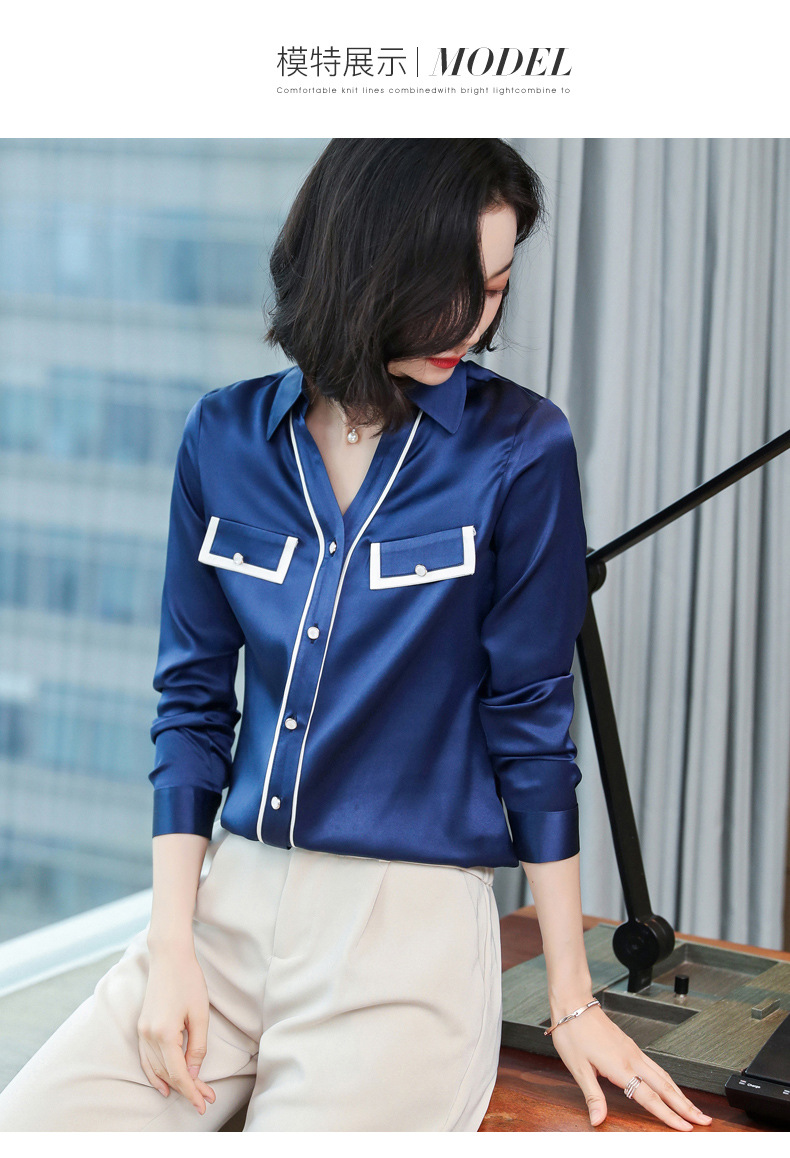 上海旗袍厂ASE-9012单排扣小型V领时尚真丝衬衫