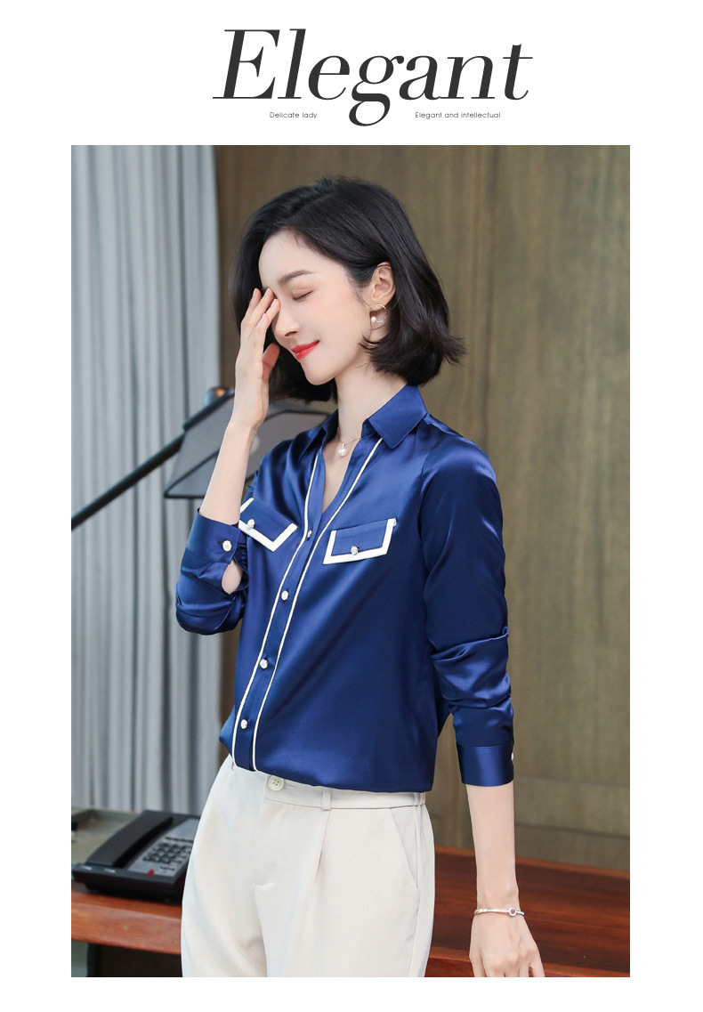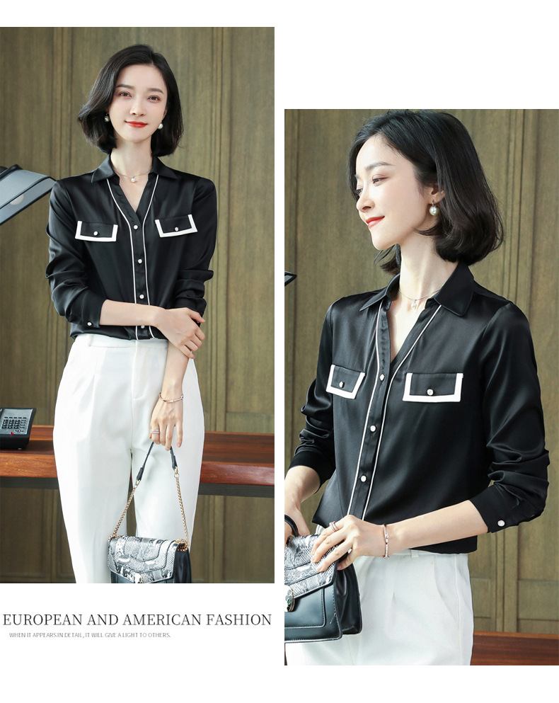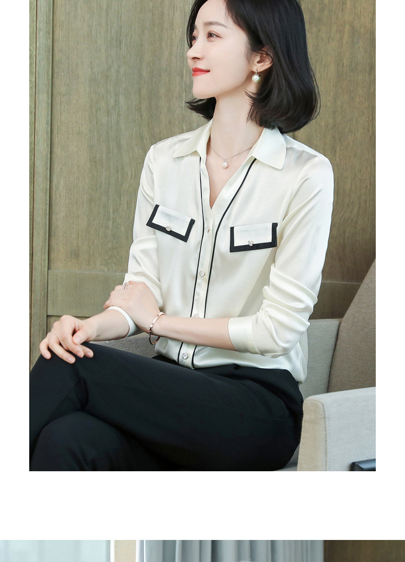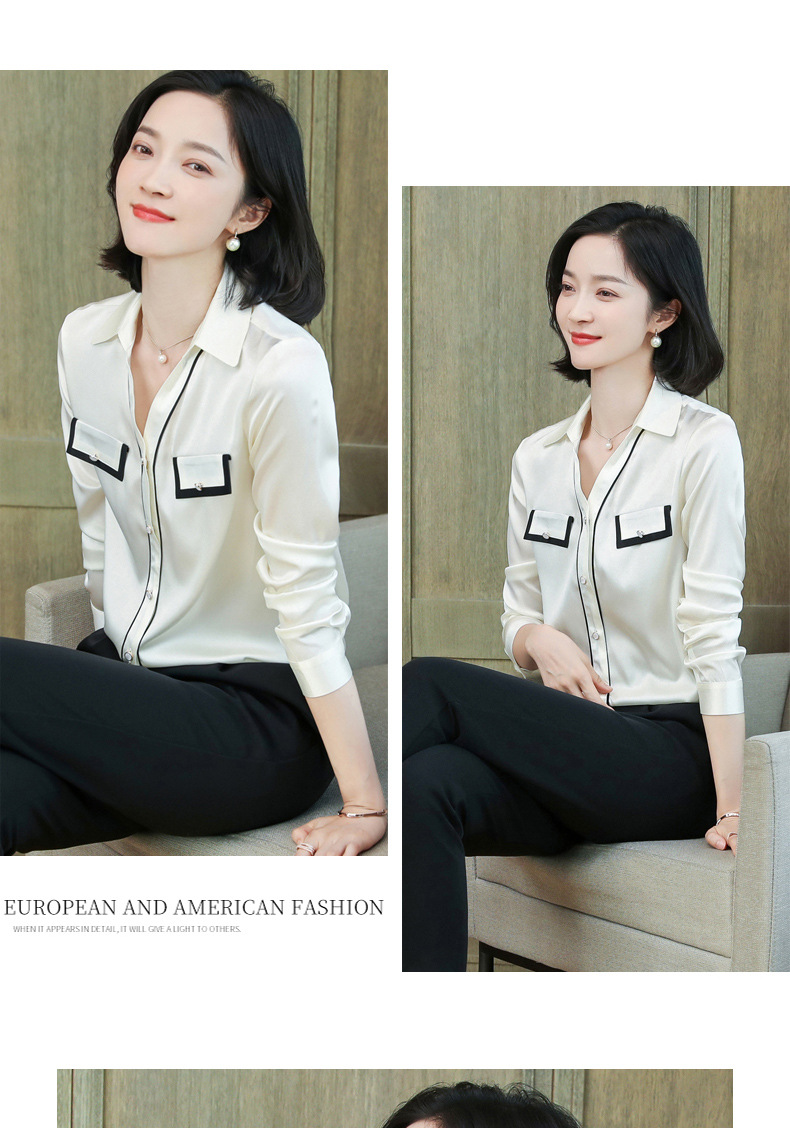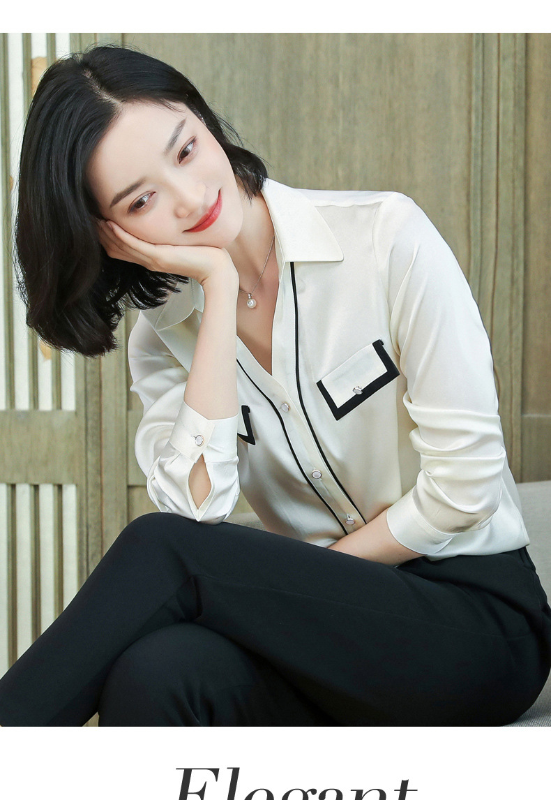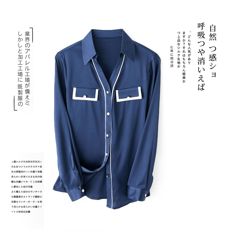 上海旗袍厂ASE-9012单排扣小型V领时尚真丝衬衫