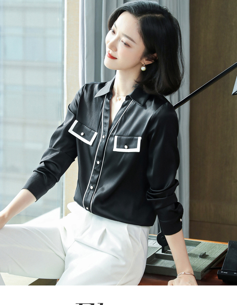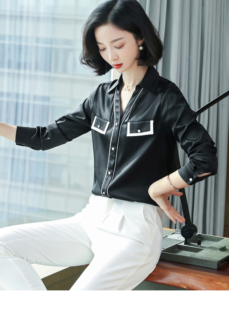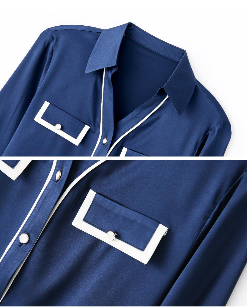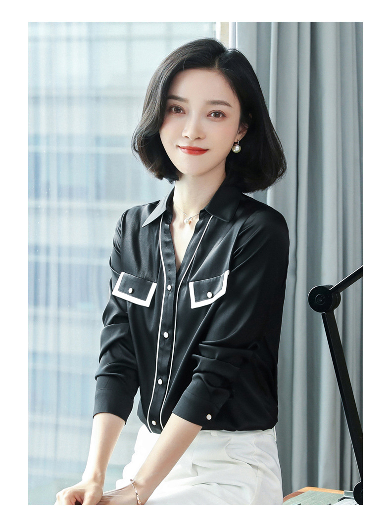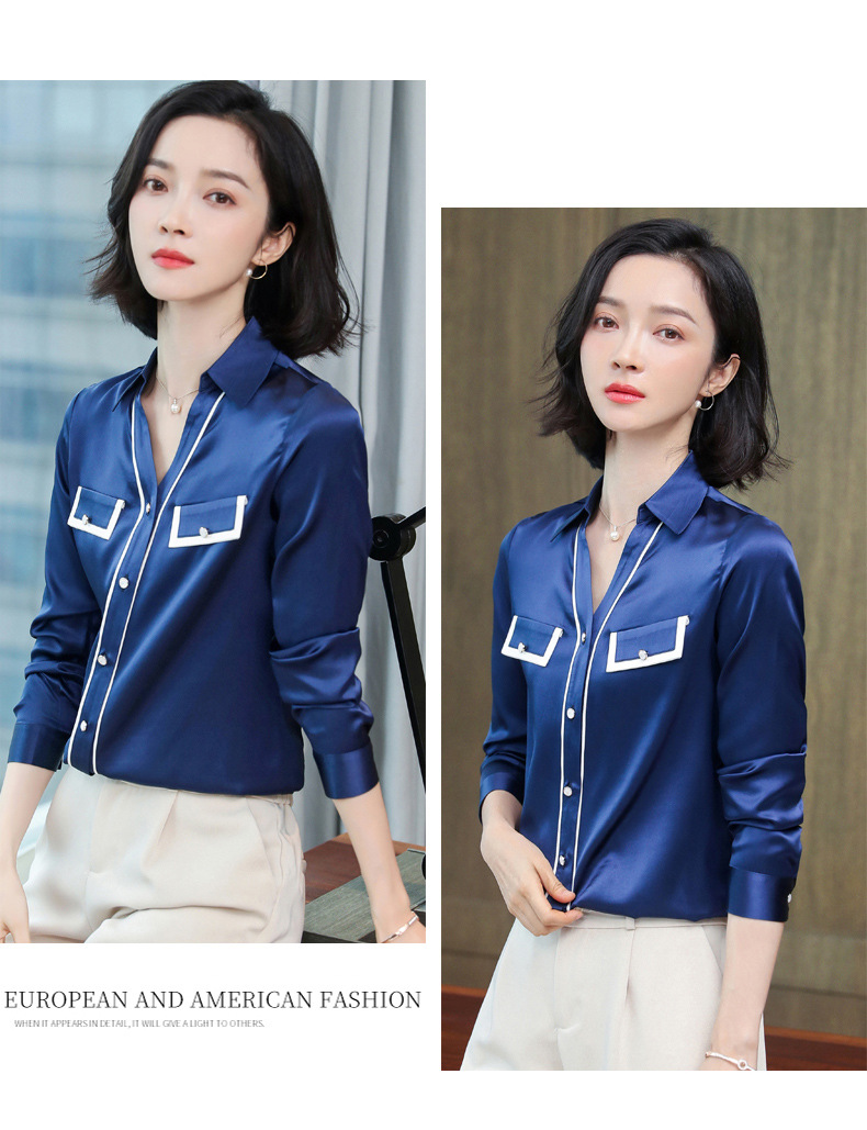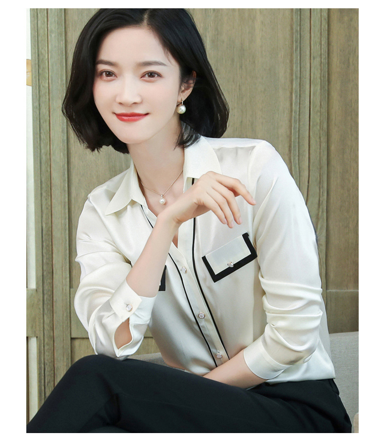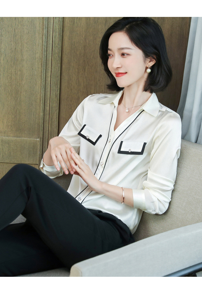 上海旗袍厂ASE-9012单排扣小型V领时尚真丝衬衫
