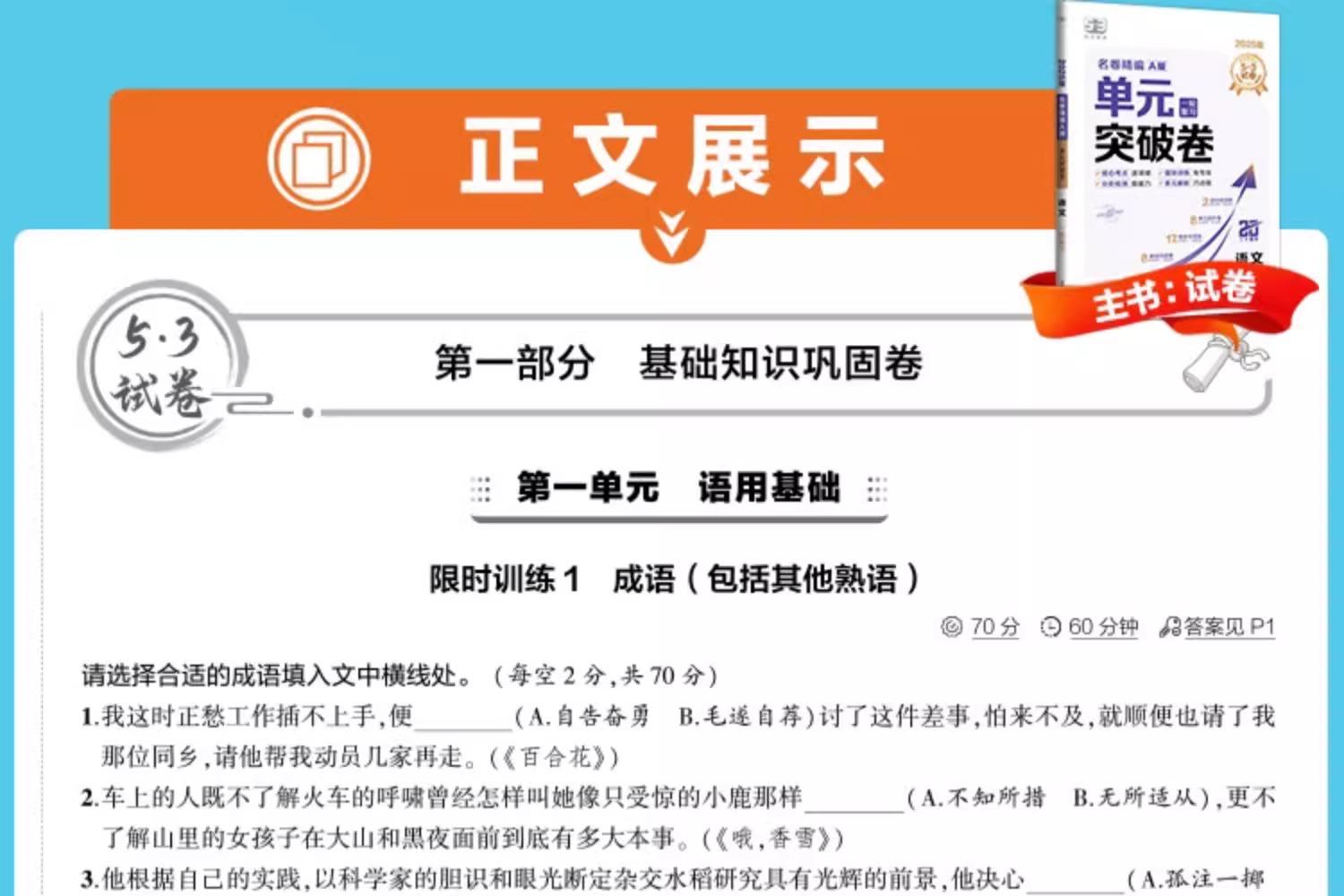 2025曲一线53名卷精编A版单元突破卷高考一轮复习全国通用