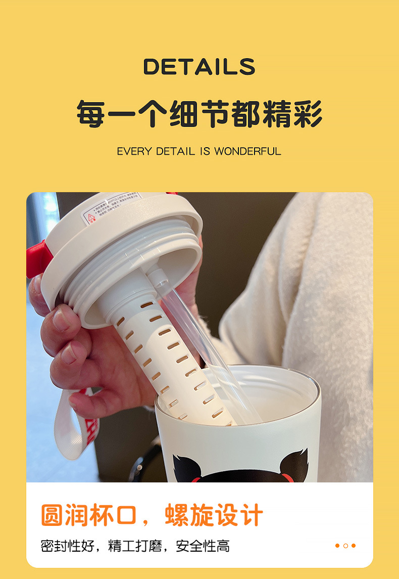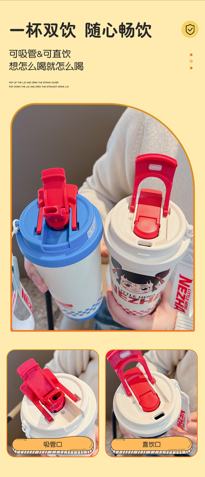 【哪吒咖啡杯,颜值入坑,一杯双饮~】哪吒之魔童闹海保温杯 316不锈钢陶瓷内胆 大容量吸管杯 车载咖啡杯-QQ