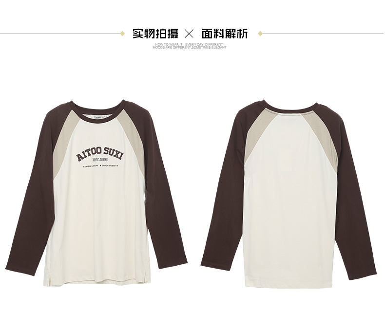 复古腔调拉满!撞色插肩袖字母印花长袖 T 恤 个性又百搭
